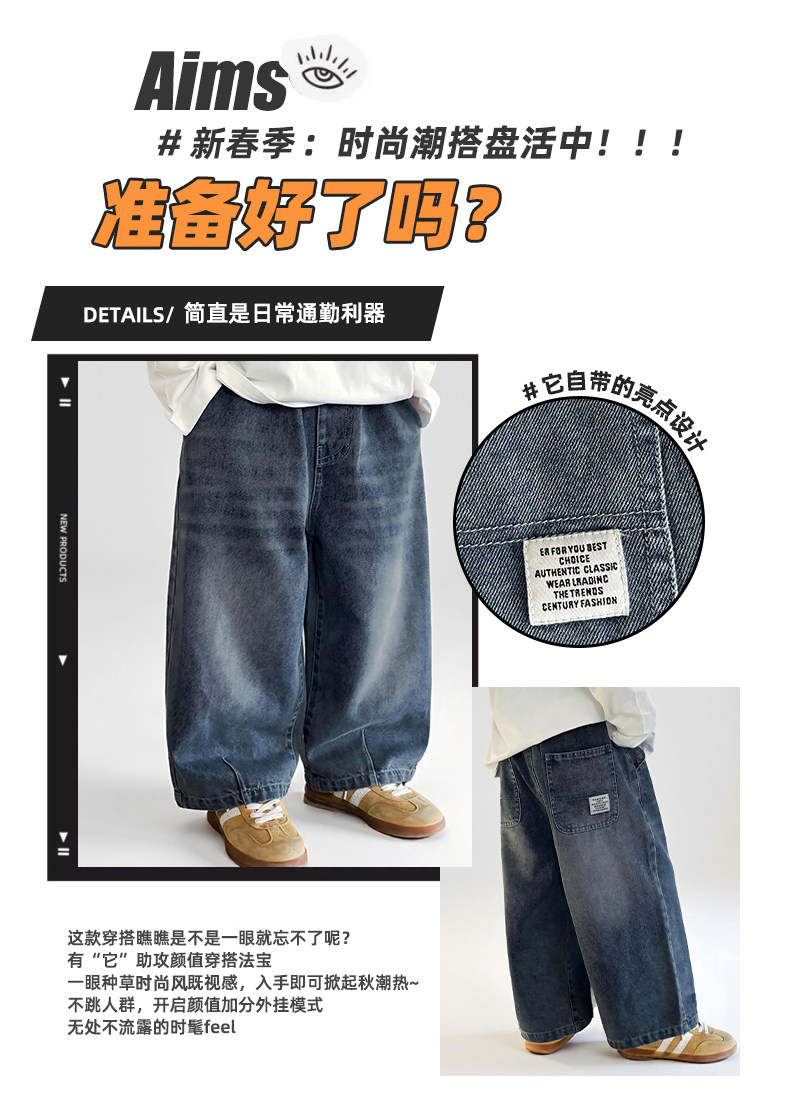 Boys' Jeans Children's Spring Pants 2026 New Stylish Boys' Spring Outfit Loose Casual Straight-Leg Pants
