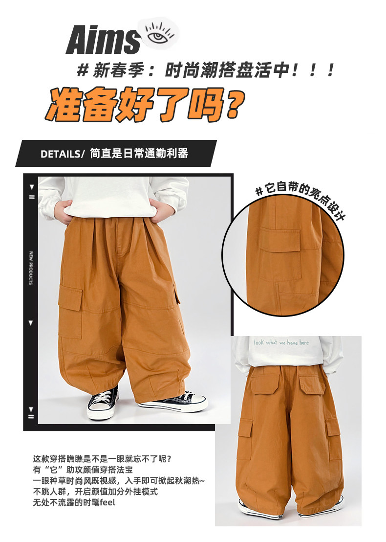 Boys' Spring Cargo Pants 2026 New Style Cool and Stylish Straight-Leg Pants for Little Boys Spring and Autumn Children's Casual Pants