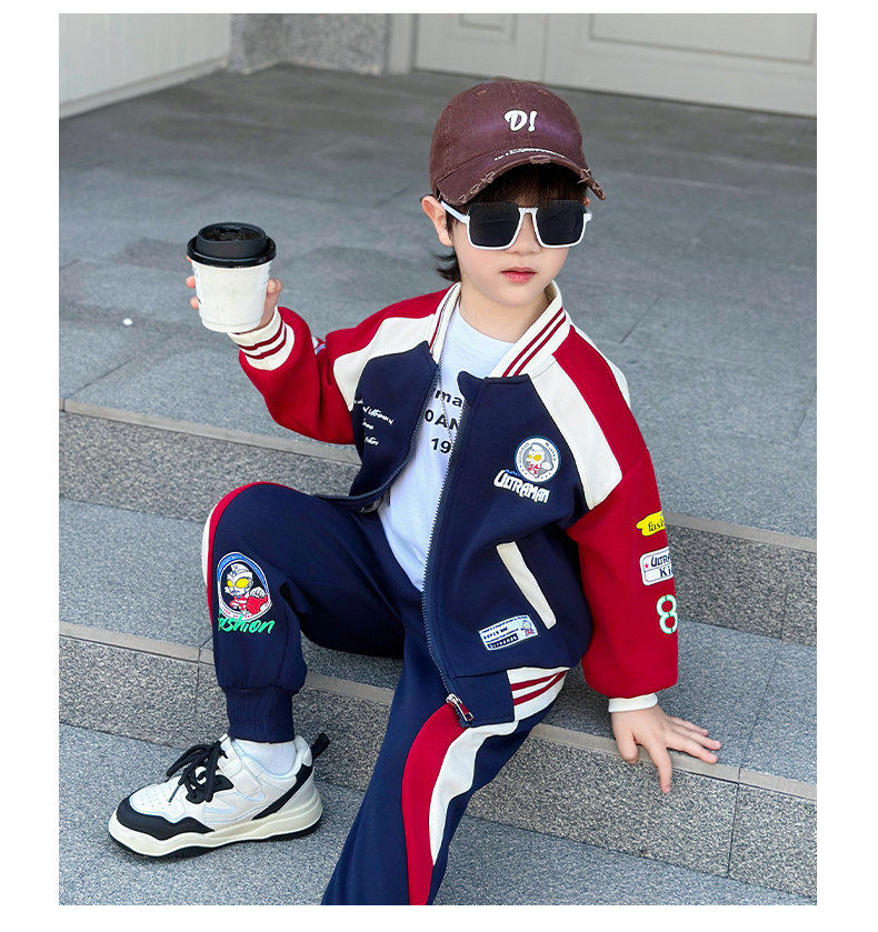 French Boys' Ultraman Clothing Baseball Uniform Set Children's Jacket Boys' Spring Outfit Two-Piece Set 2026 New Model