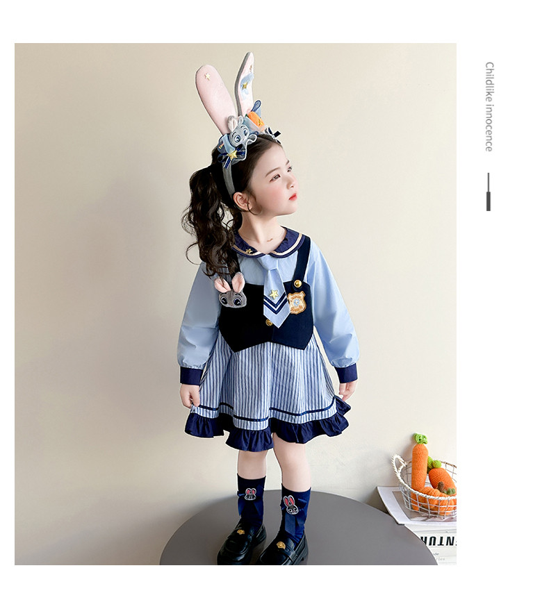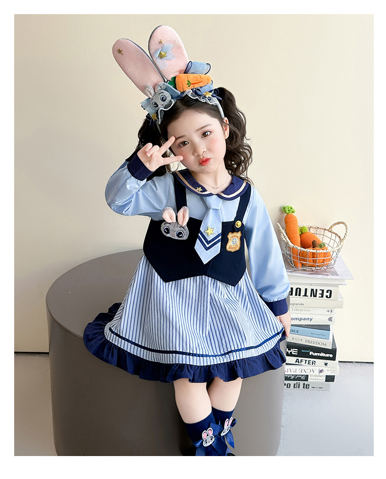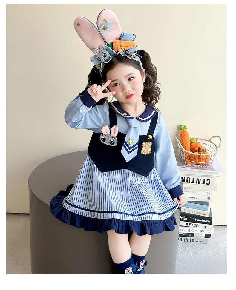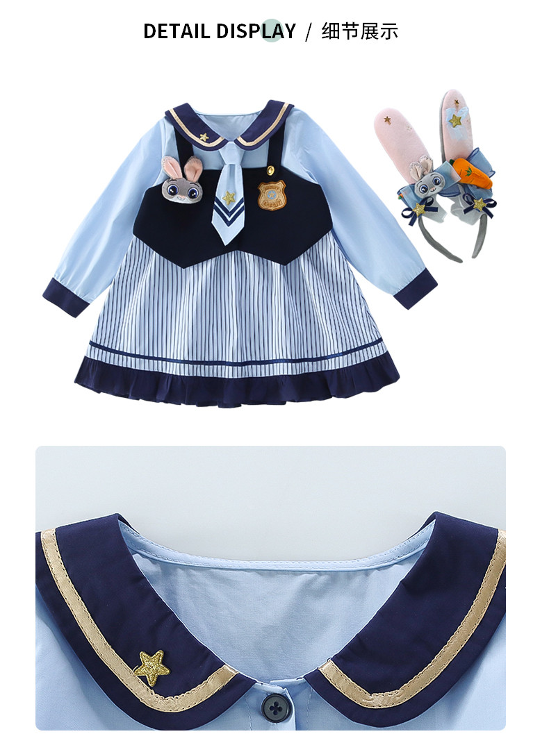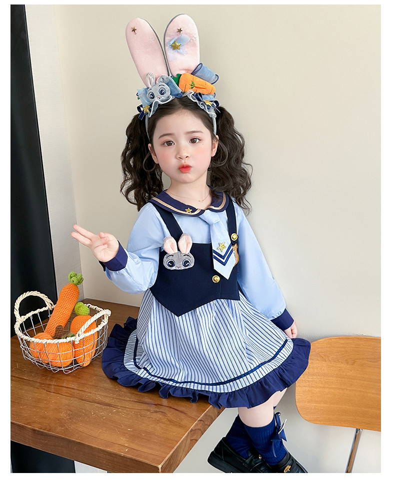 Girls' Rabbit Police Officer Dress Spring and Autumn Children's Judy Princess Dress 2026 New Style Baby Girl Spring Cartoon Dress