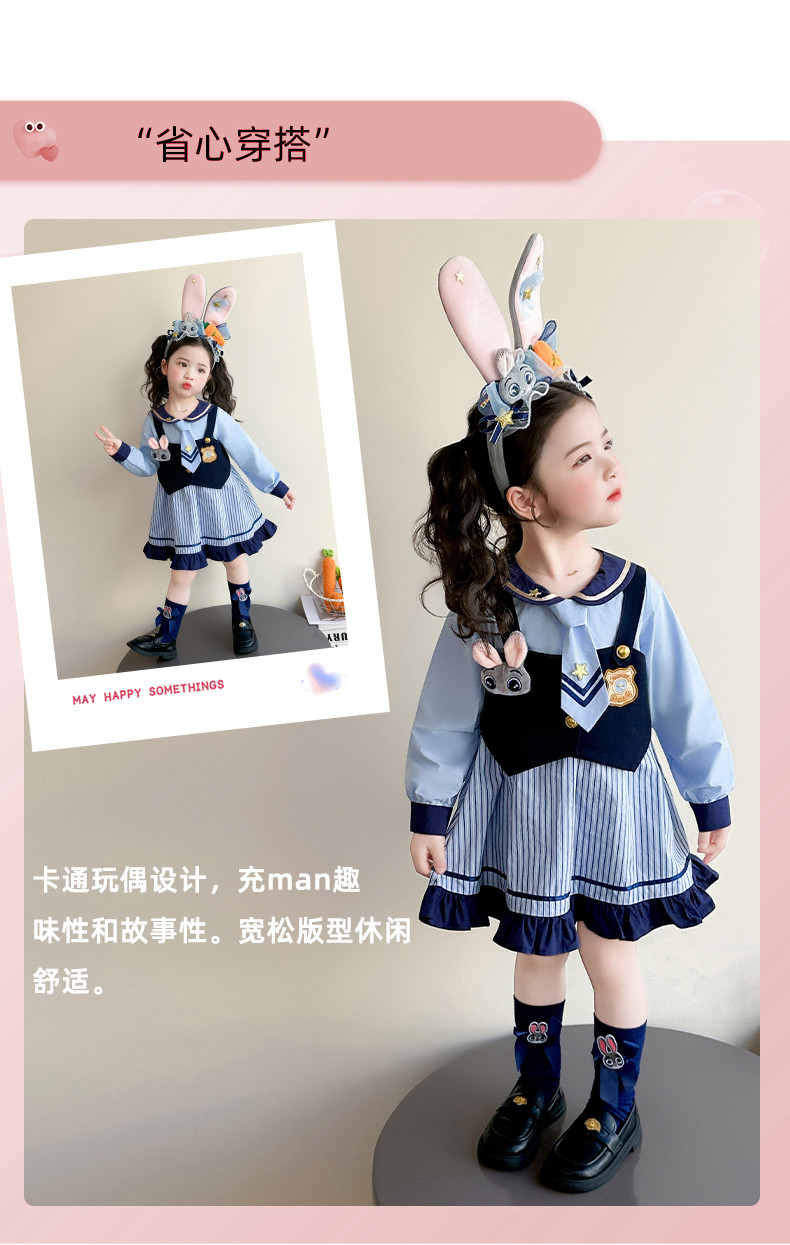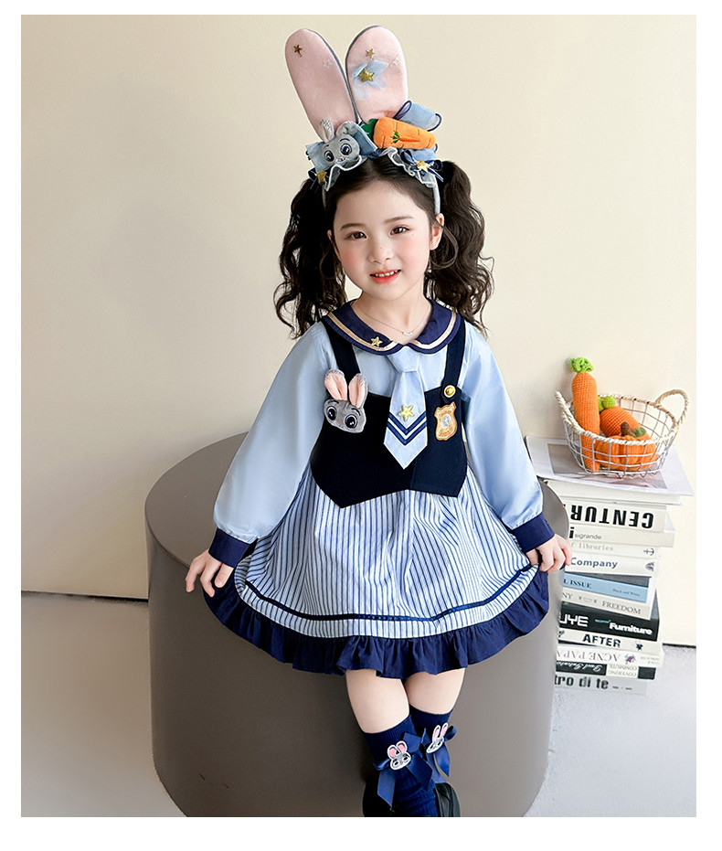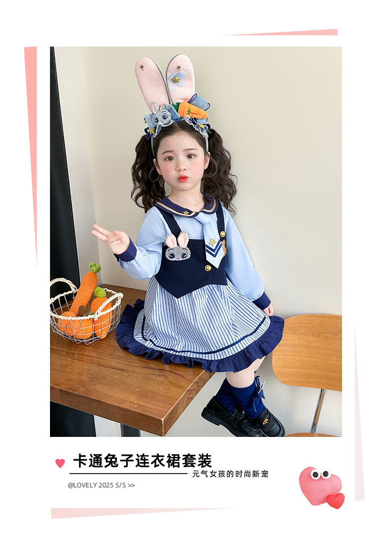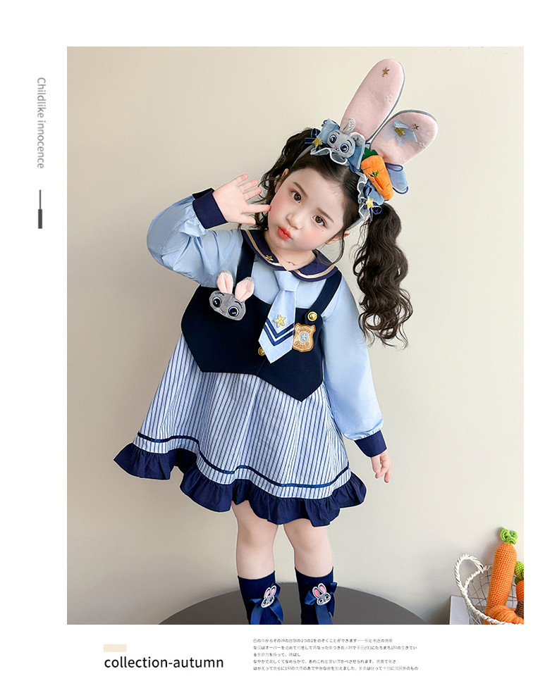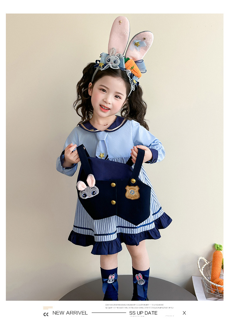 Girls' Rabbit Police Officer Dress Spring and Autumn Children's Judy Princess Dress 2026 New Style Baby Girl Spring Cartoon Dress