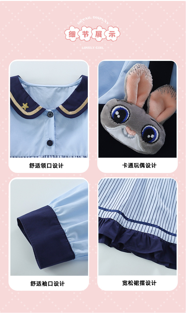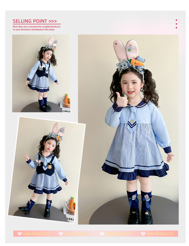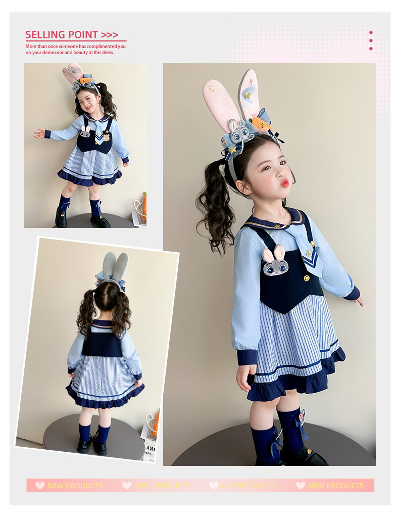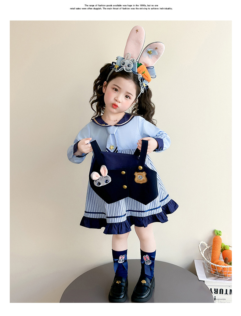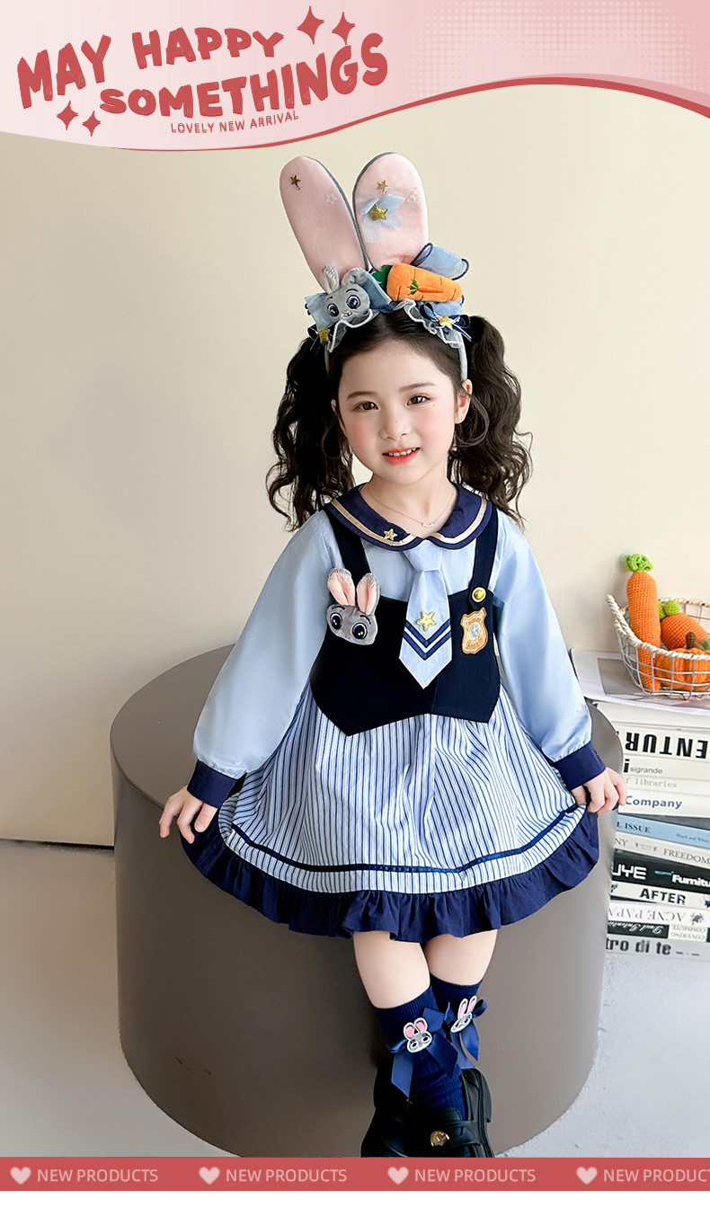 Girls' Rabbit Police Officer Dress Spring and Autumn Children's Judy Princess Dress 2026 New Style Baby Girl Spring Cartoon Dress