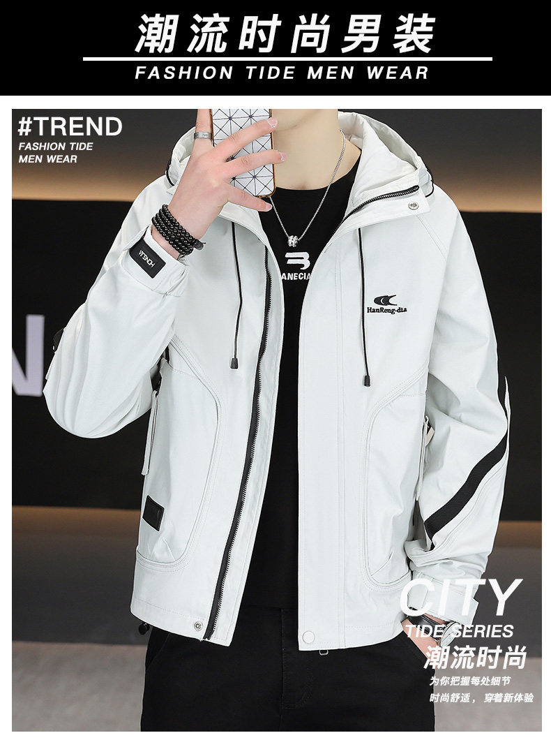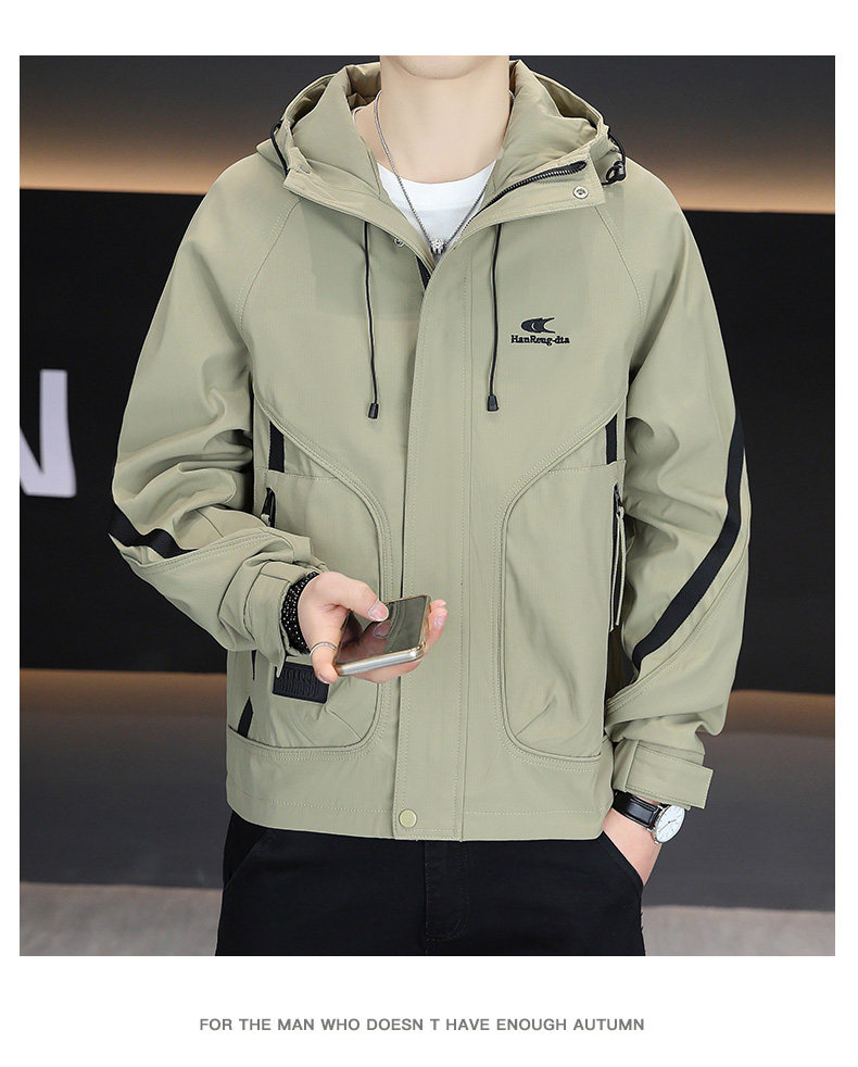 Men's Jacket for Spring and Autumn 2026 New Style Hooded Workwear Jacket Loose Casual Trendy Brand High-End Men's Clothing