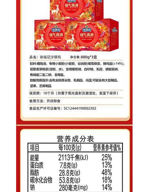 Hsu Fuji Shaqima Gift Box Egg Crisp Flavor 880g*3 boxes New Year's Day gifts Renhui Premium S