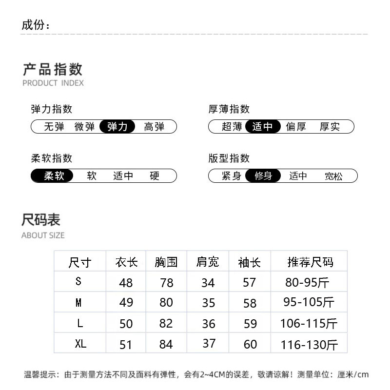 Personalized Star Embroidery Button-Down Round Neck Black Ribbed T-Shirt for Women, New Spring Korean Style Slim-Fit Base Shirt for Commuting