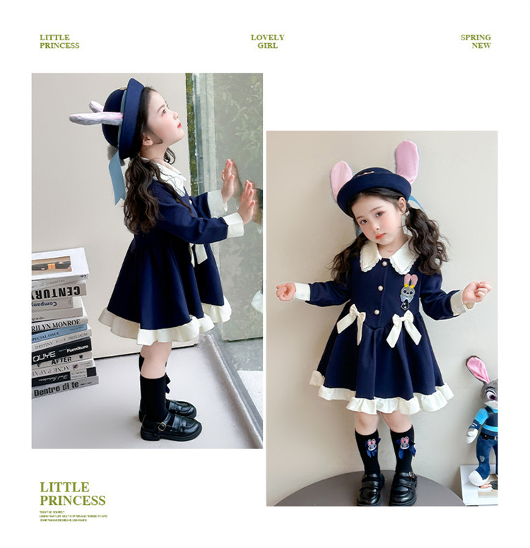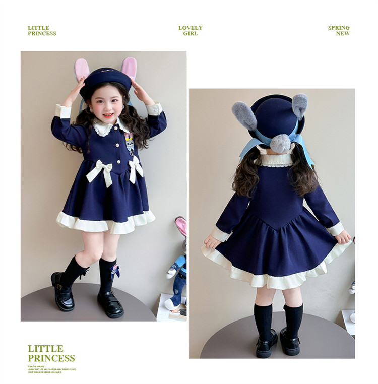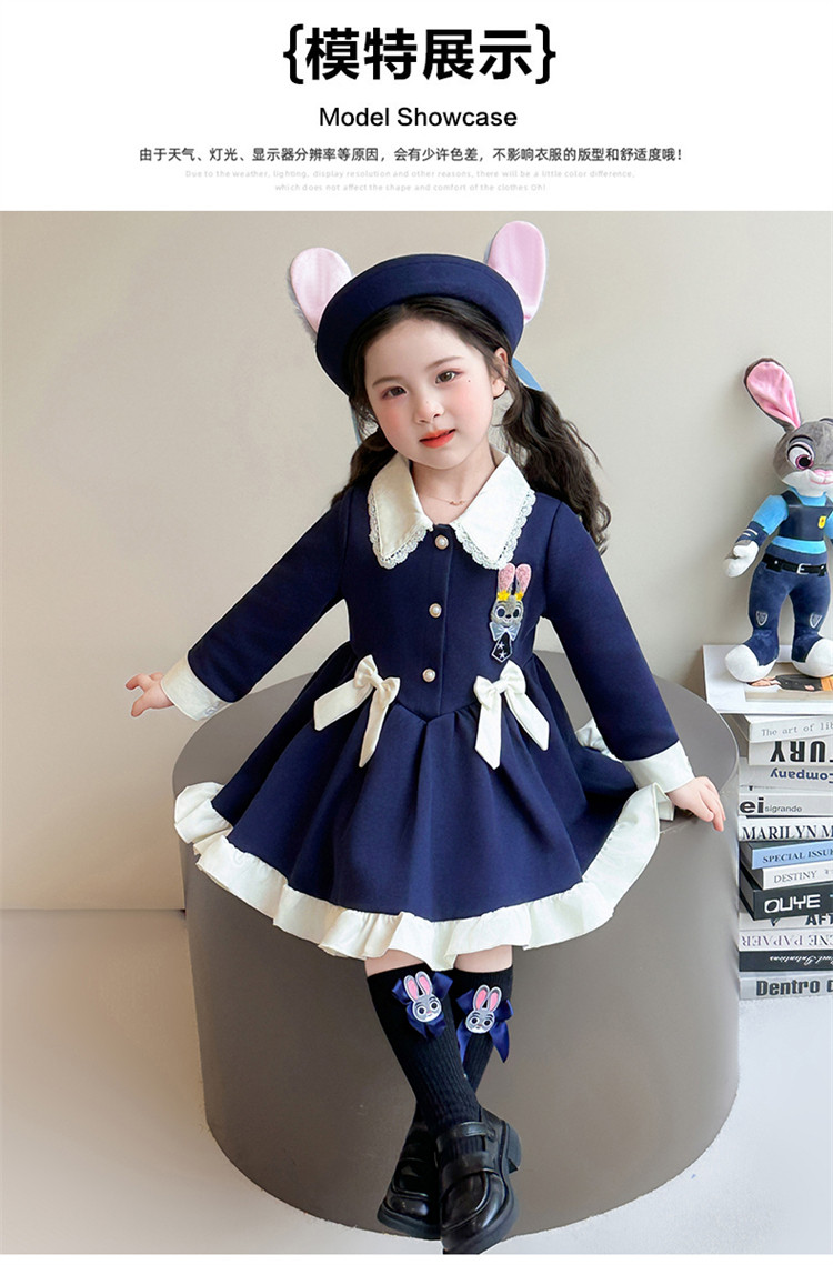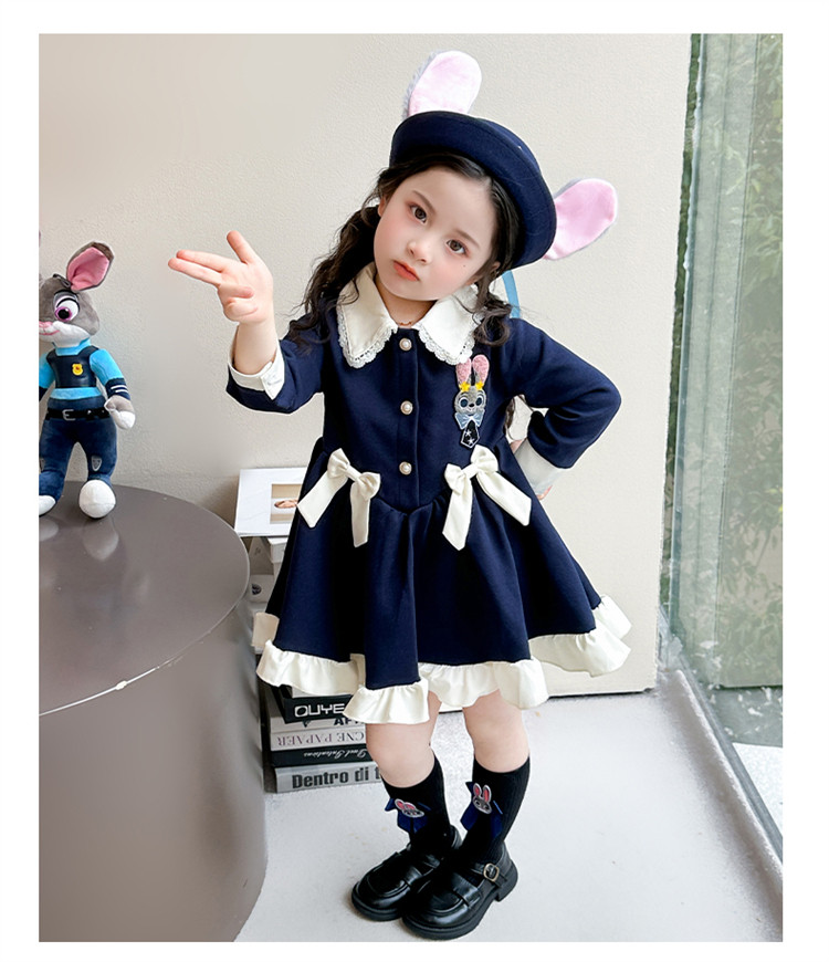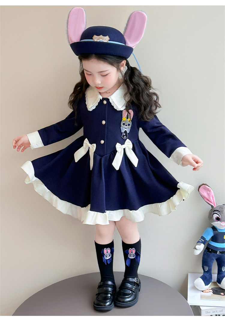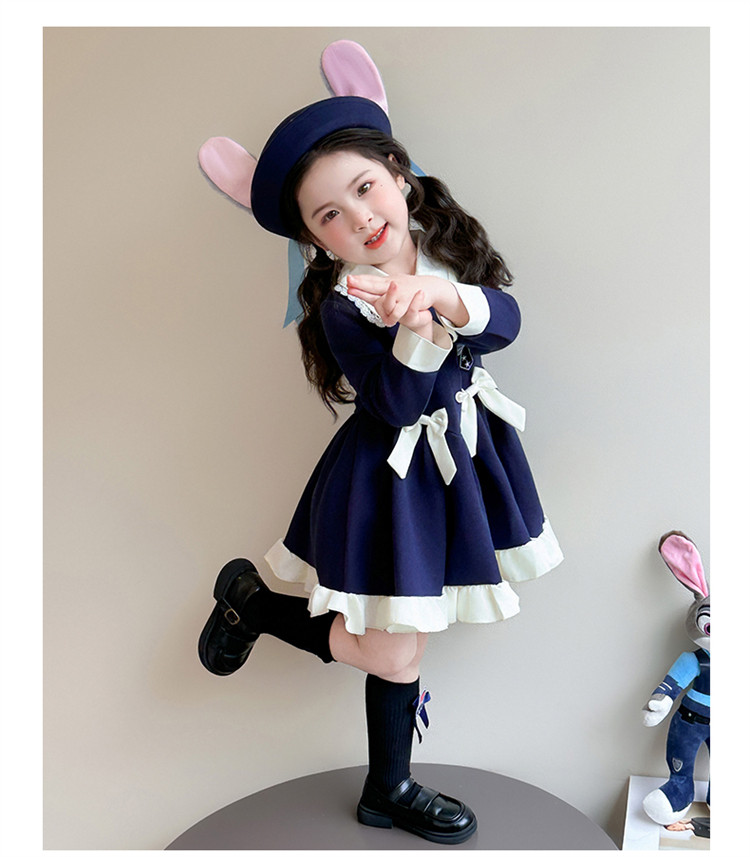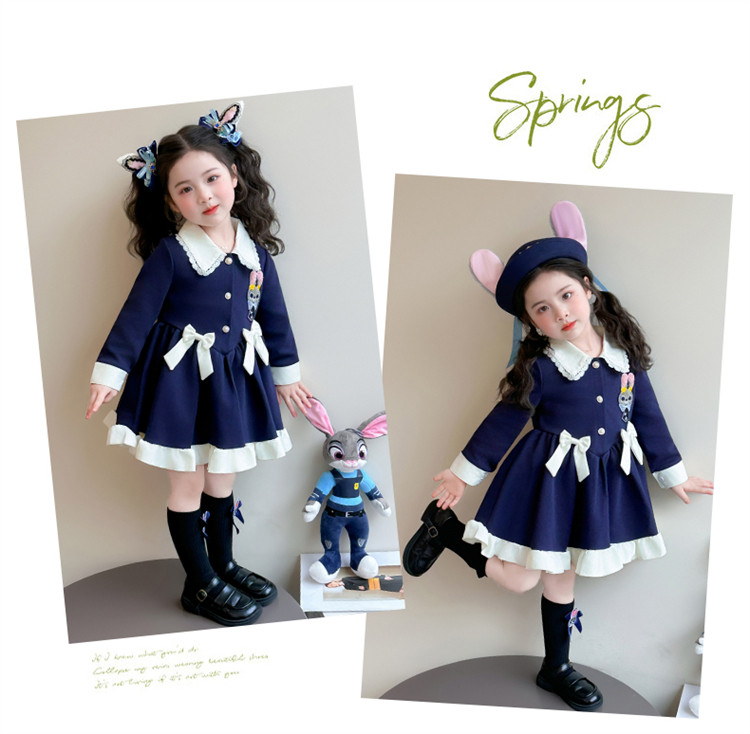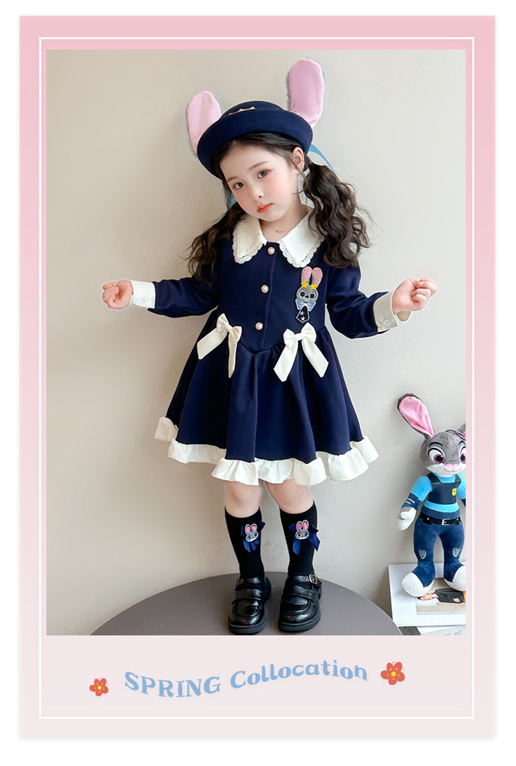Girls' Preppy Style Judy Rabbit Police Officer Princess Dress Kidsren's Spring and Summer Sweet Baby Girl Rabbit A-Line Skirt