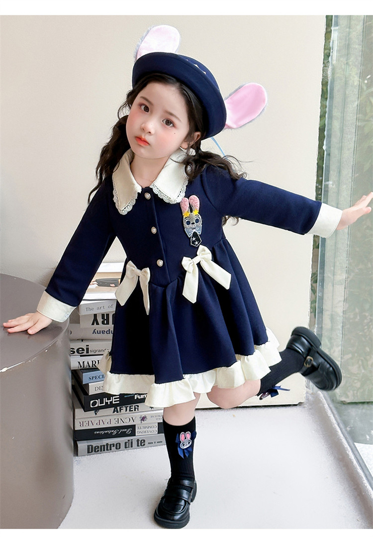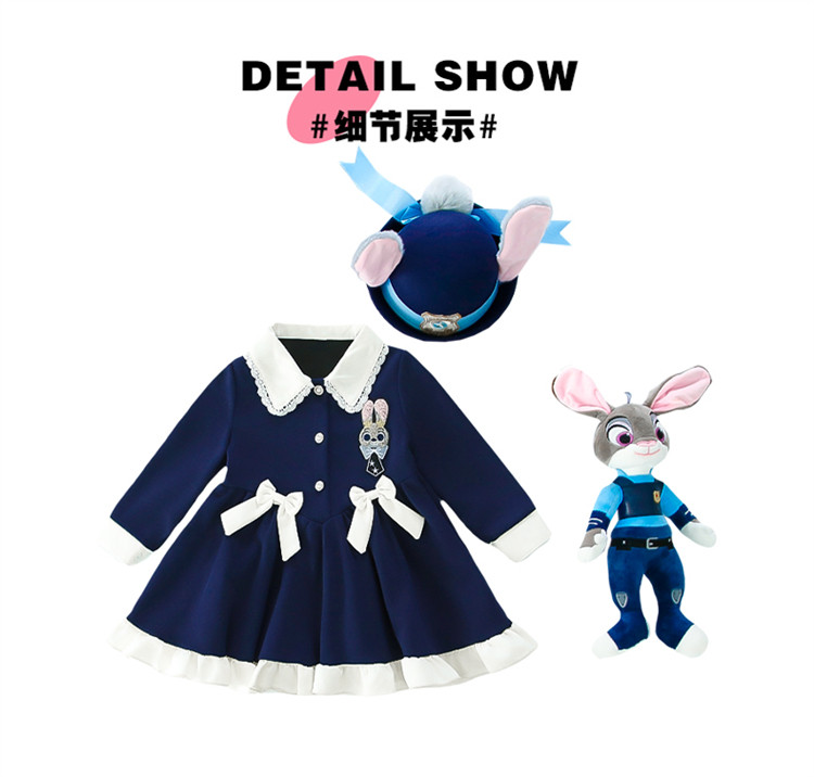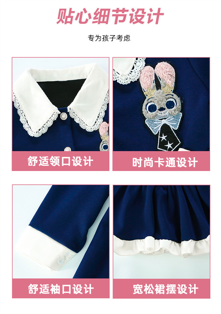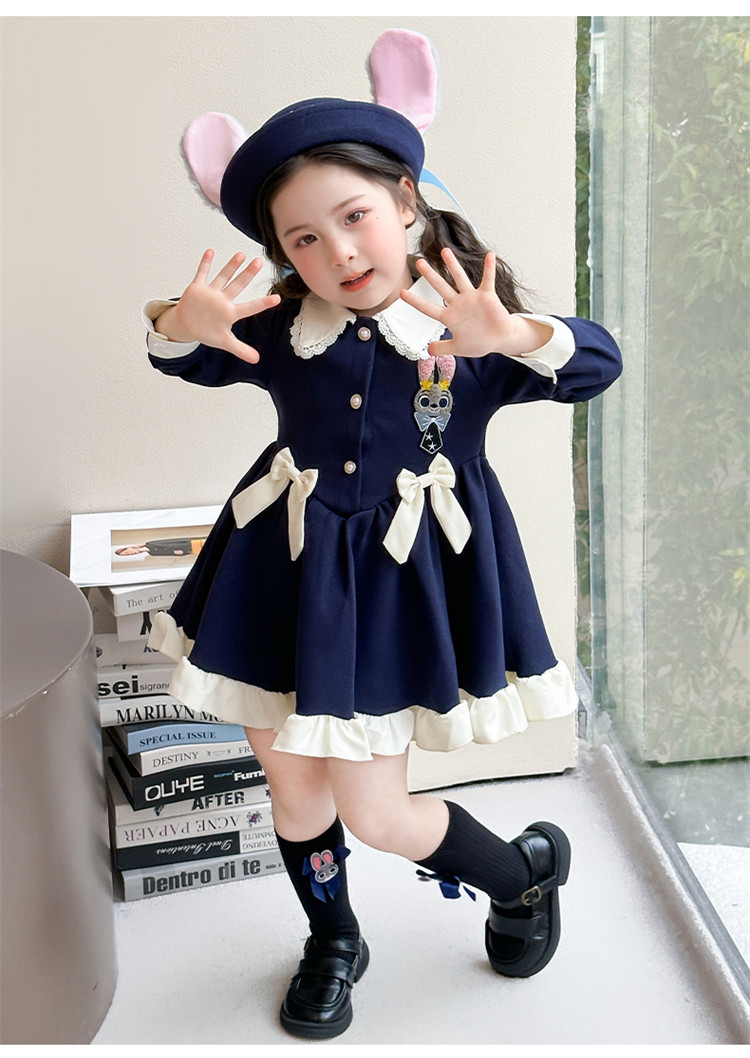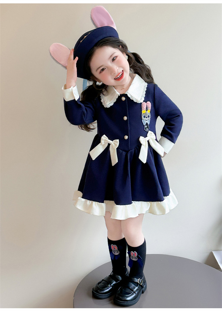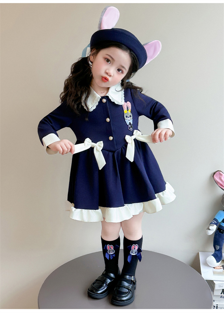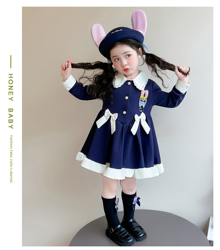 Girls' Preppy Style Judy Rabbit Police Officer Princess Dress Kidsren's Spring and Summer Sweet Baby Girl Rabbit A-Line Skirt