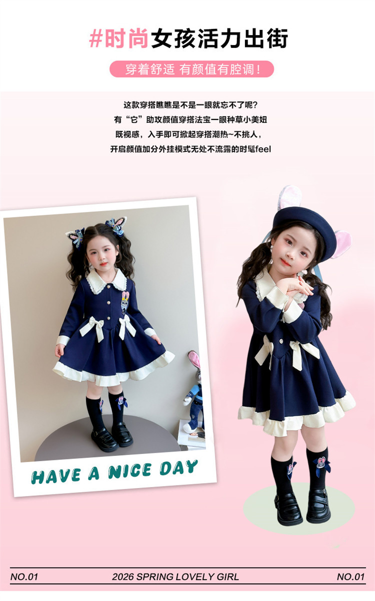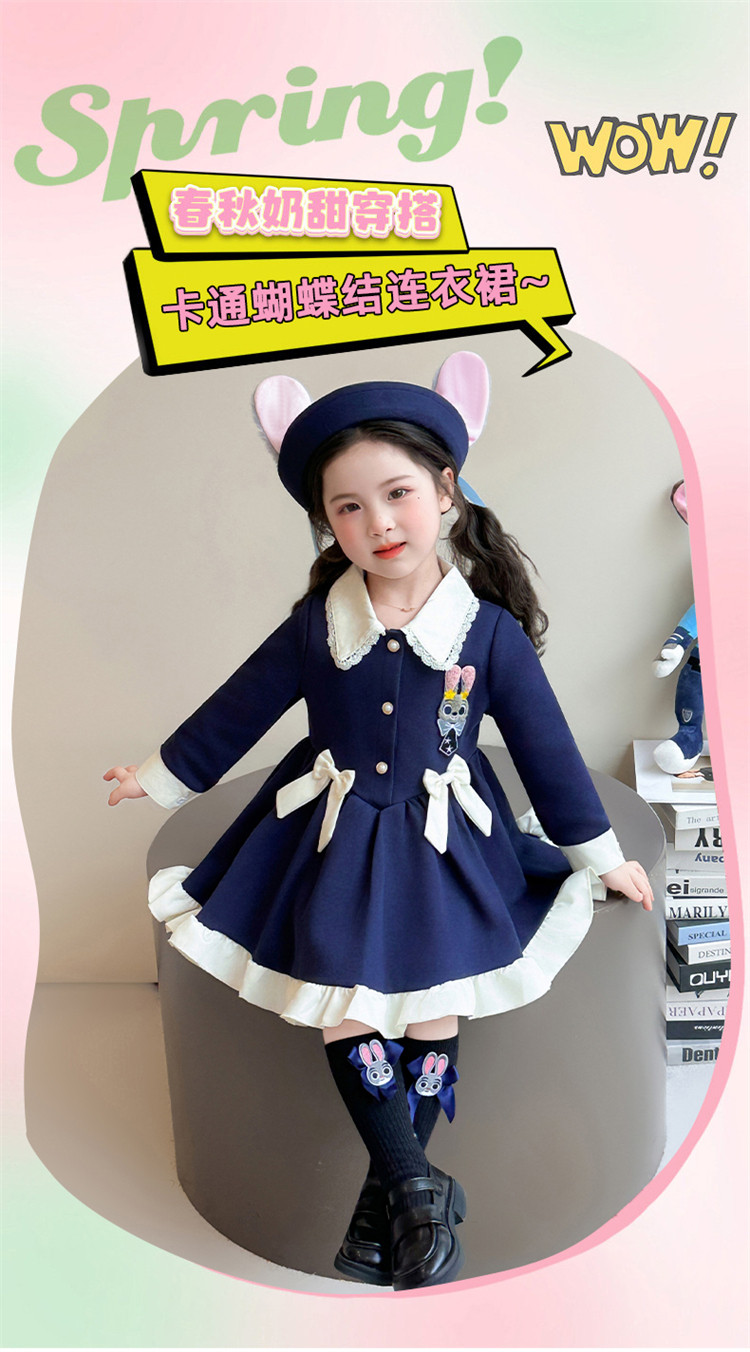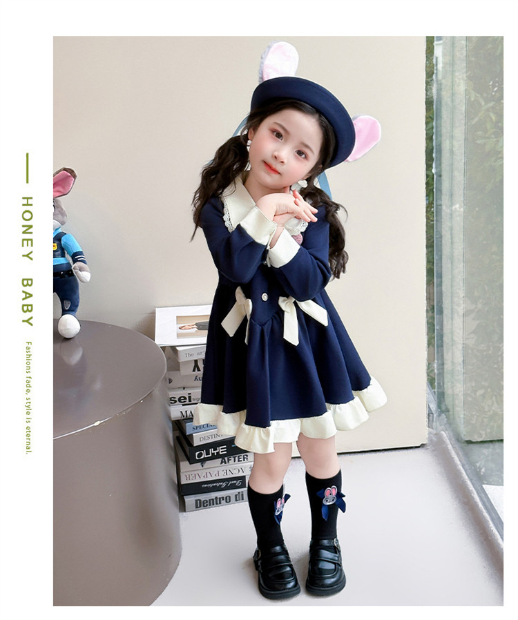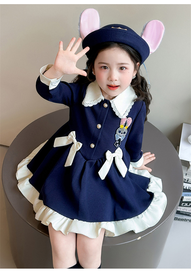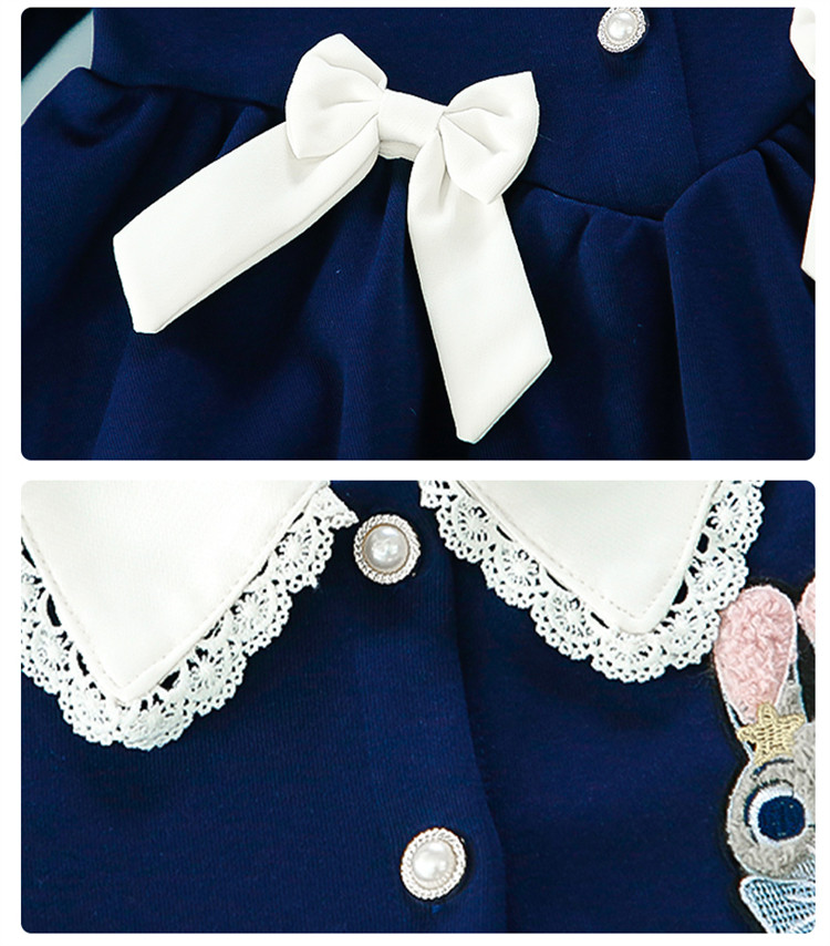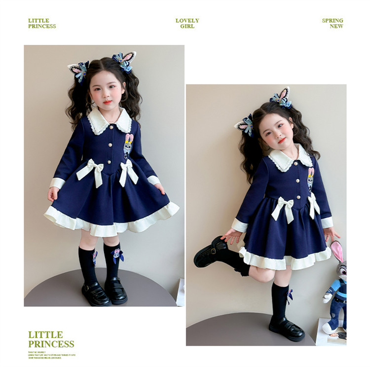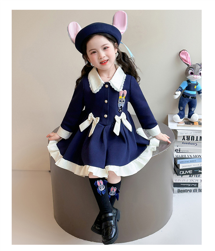 Girls' Preppy Style Judy Rabbit Police Officer Princess Dress Kidsren's Spring and Summer Sweet Baby Girl Rabbit A-Line Skirt