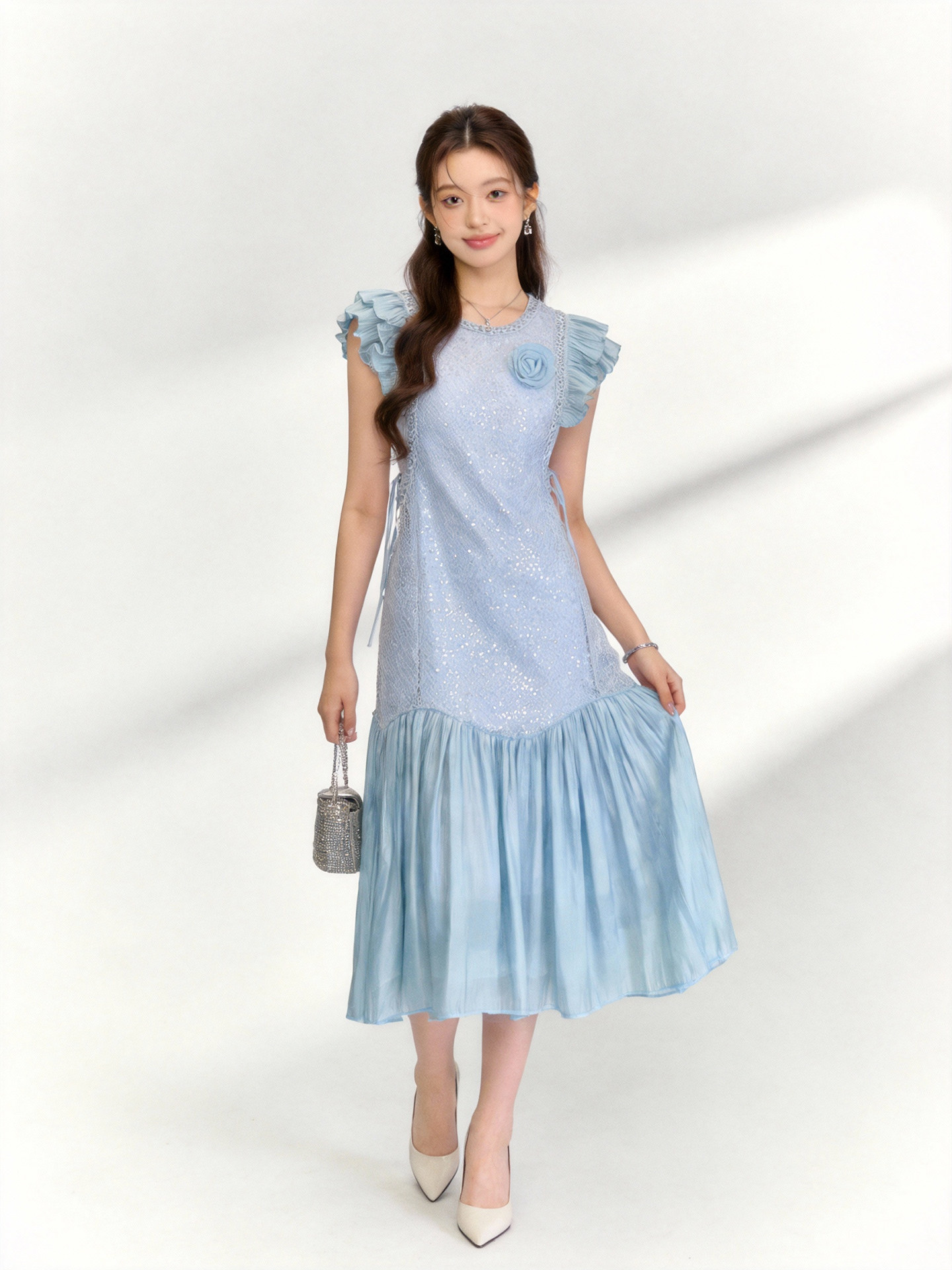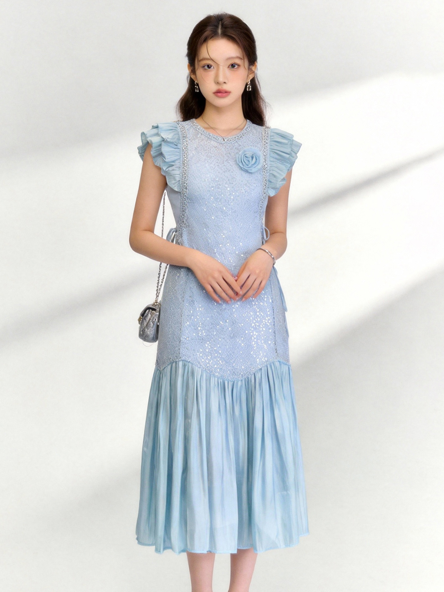 Elegant and Stunning Dress with Three-Dimensional Floral Sequins, Perfect for Important Occasions in the Summer of 2026