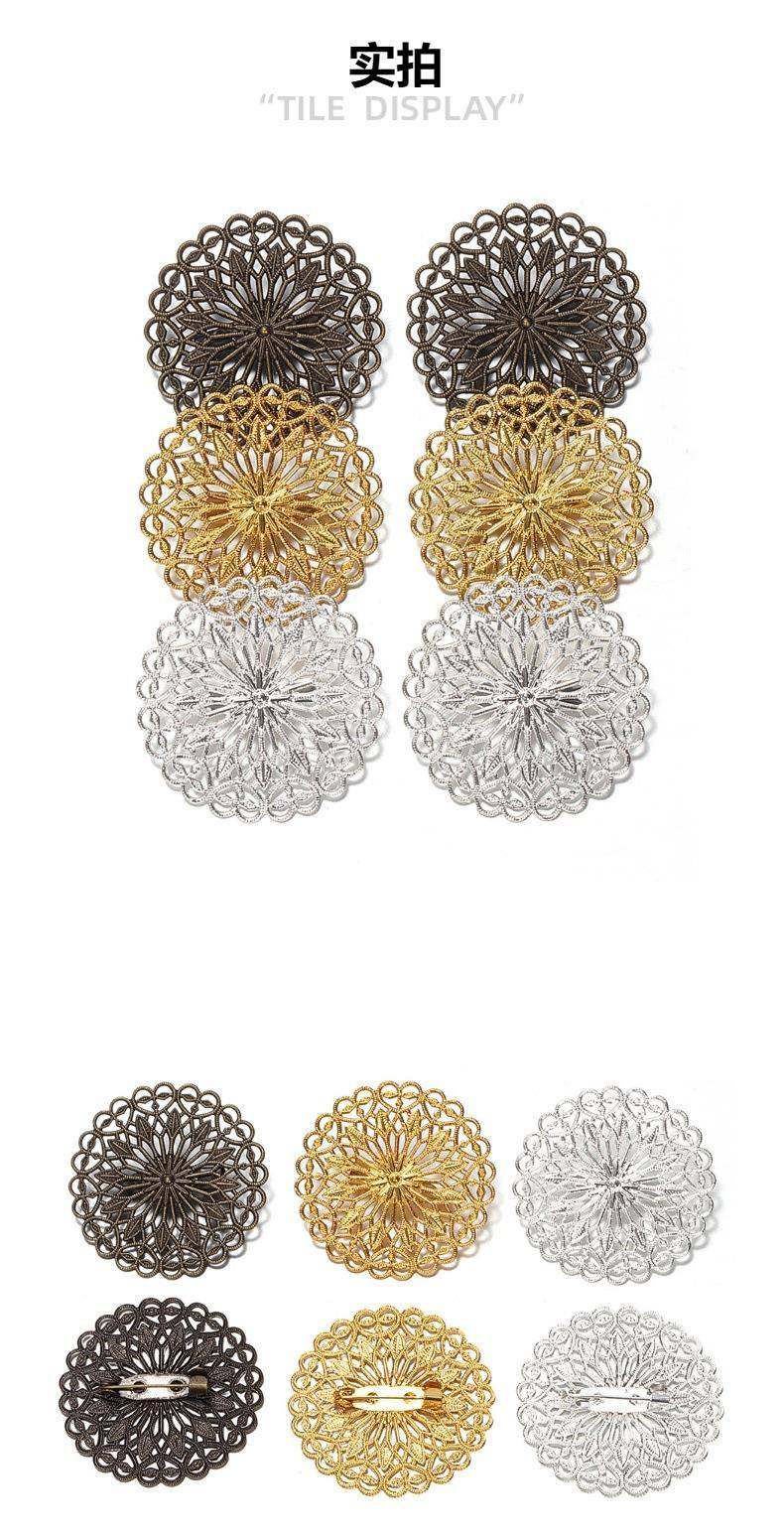 Copper Electroplated Round Flower Cap Flower Piece Hollow Flower Safety Brooch Pin Base Antique Style Jewelry Accessories