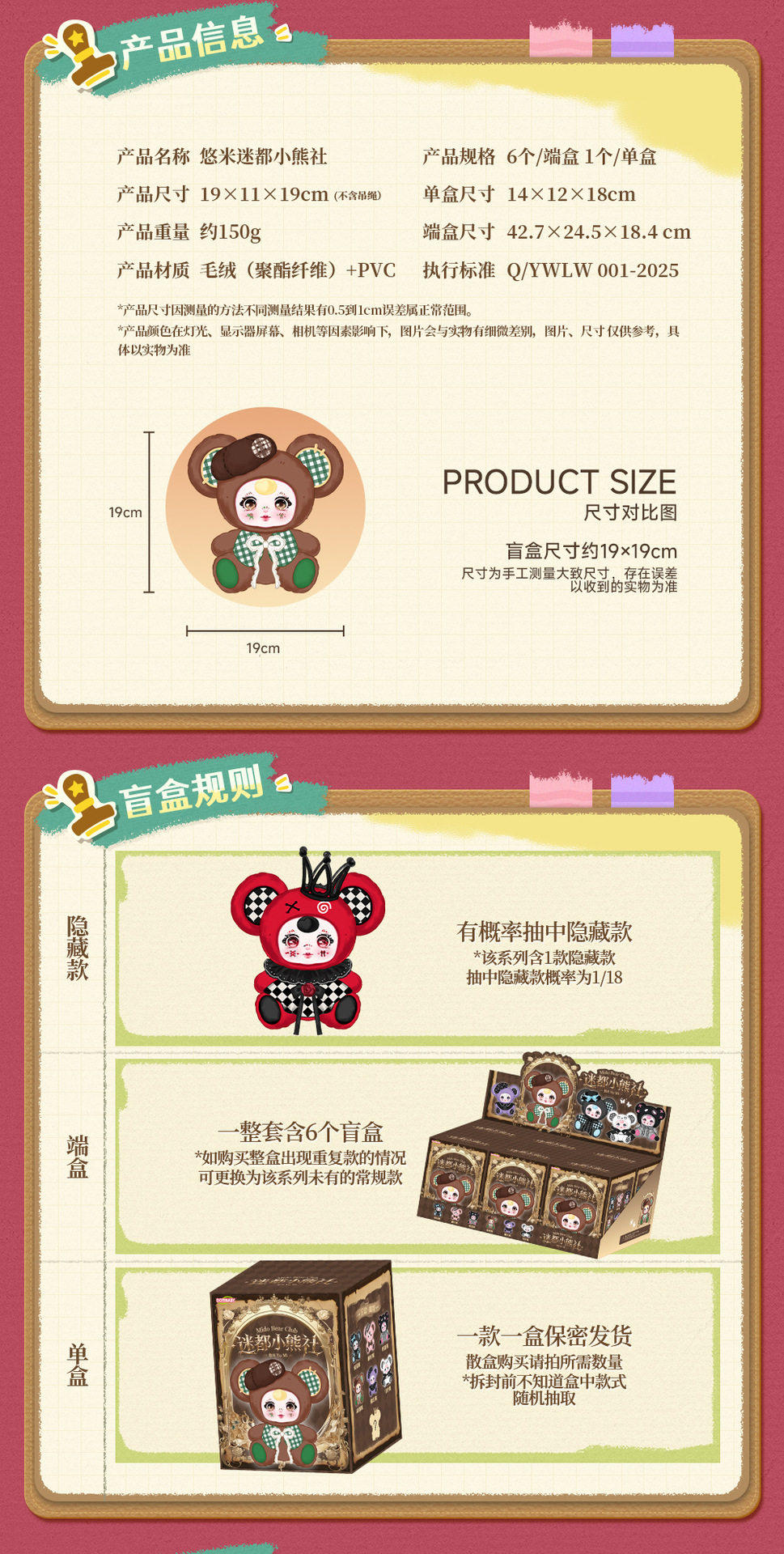 Yumi Yumi Little Bear Society Plush Pendant Blind Box Doll Keychain Gift for Girls