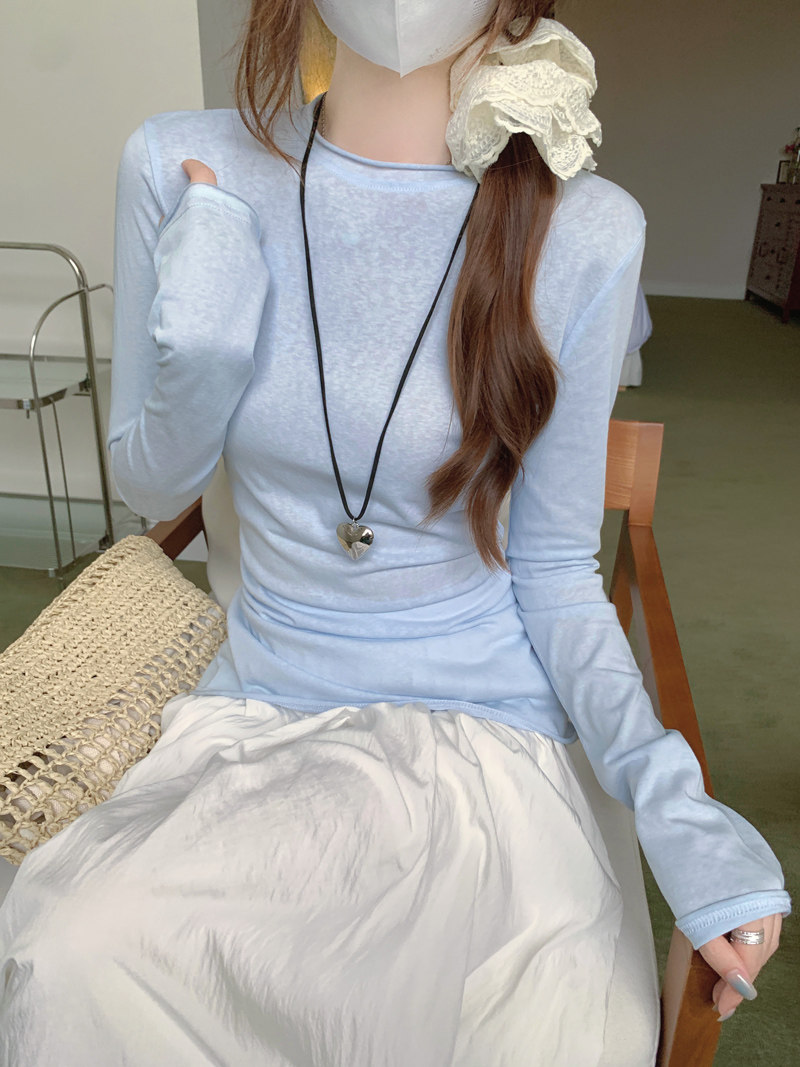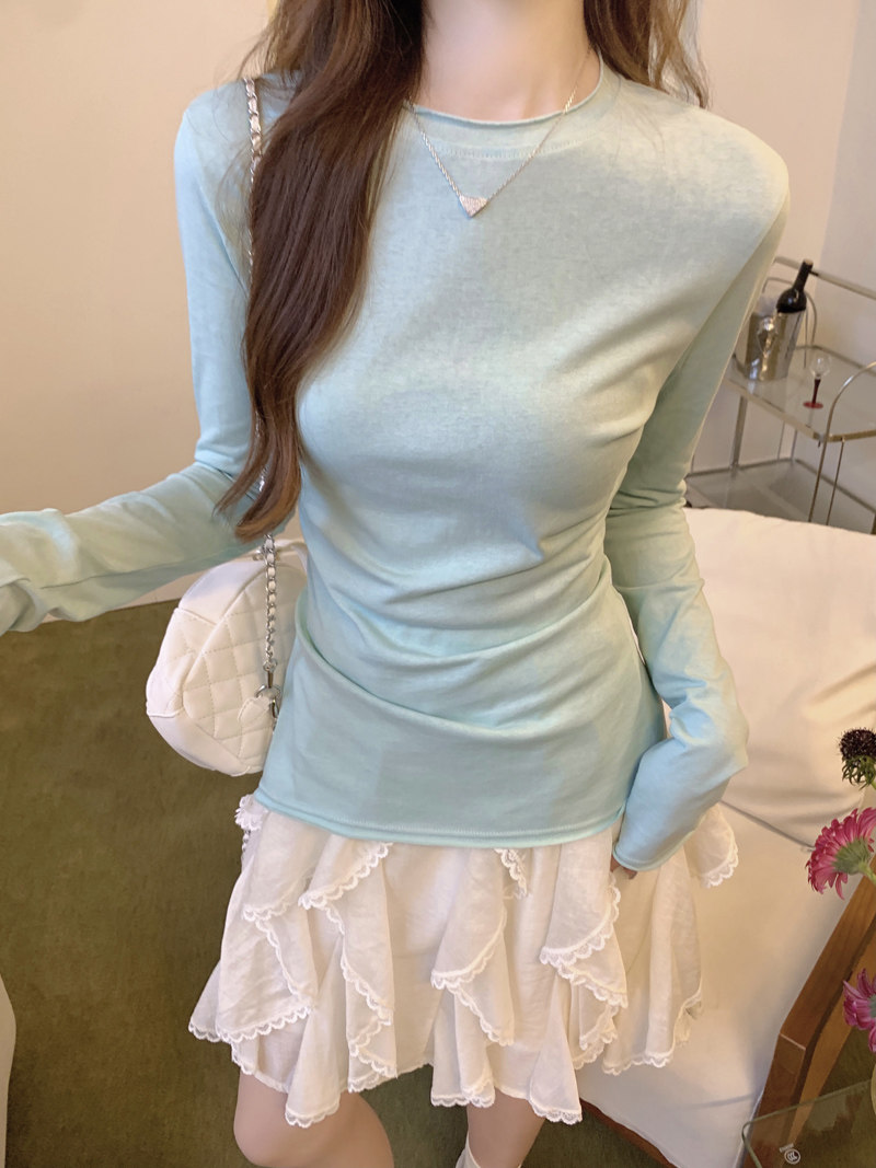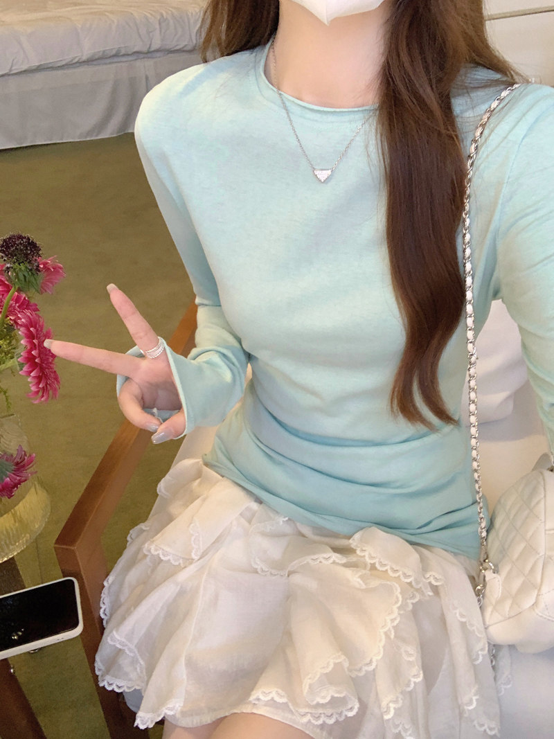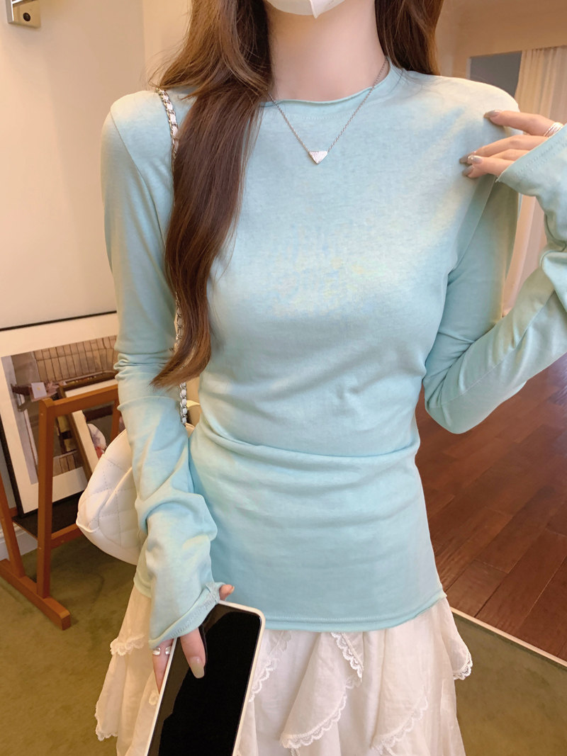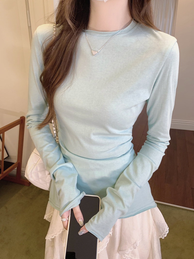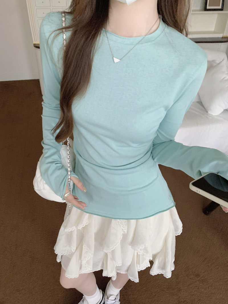 Korean-Style Fresh Mint Green Long-Sleeve T-Shirt for Women, Spring and Summer Thin Slim-Fit Sun-Protective Cover-Up, Simple Versatile Top