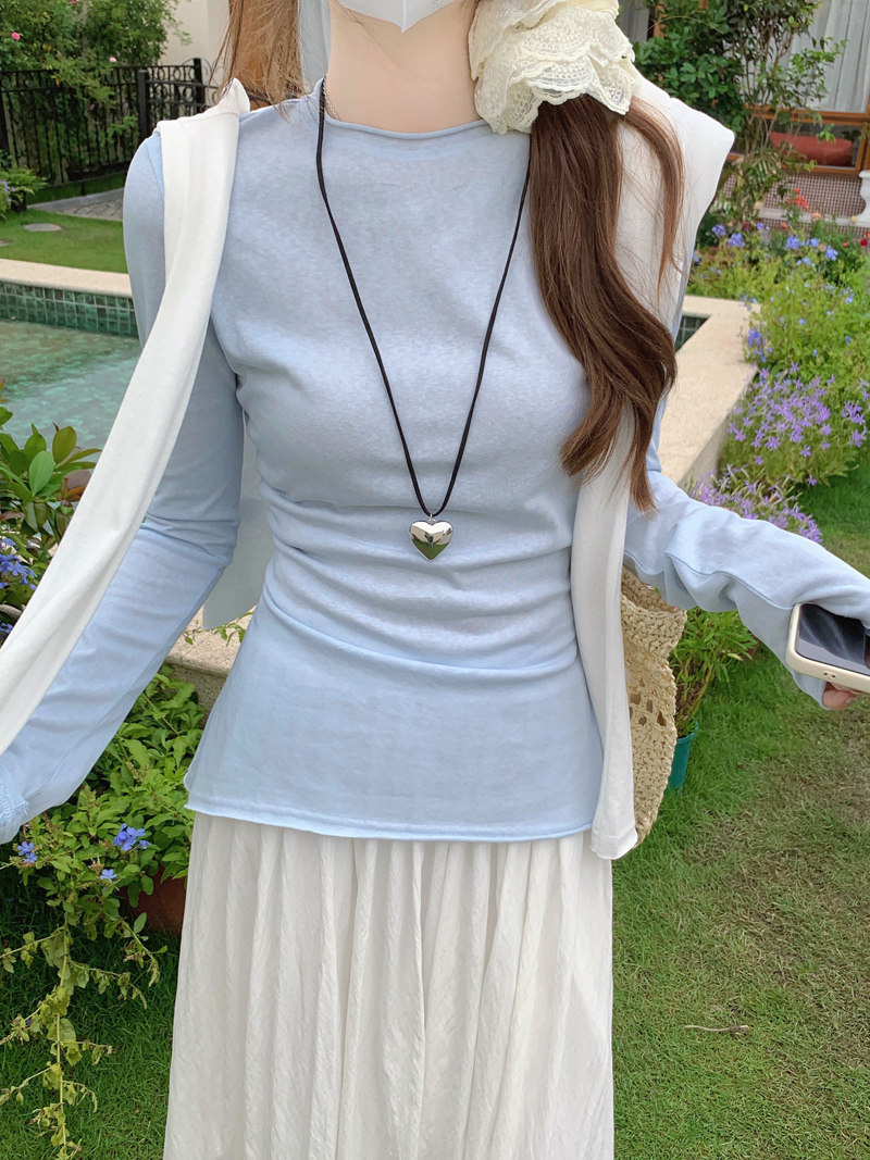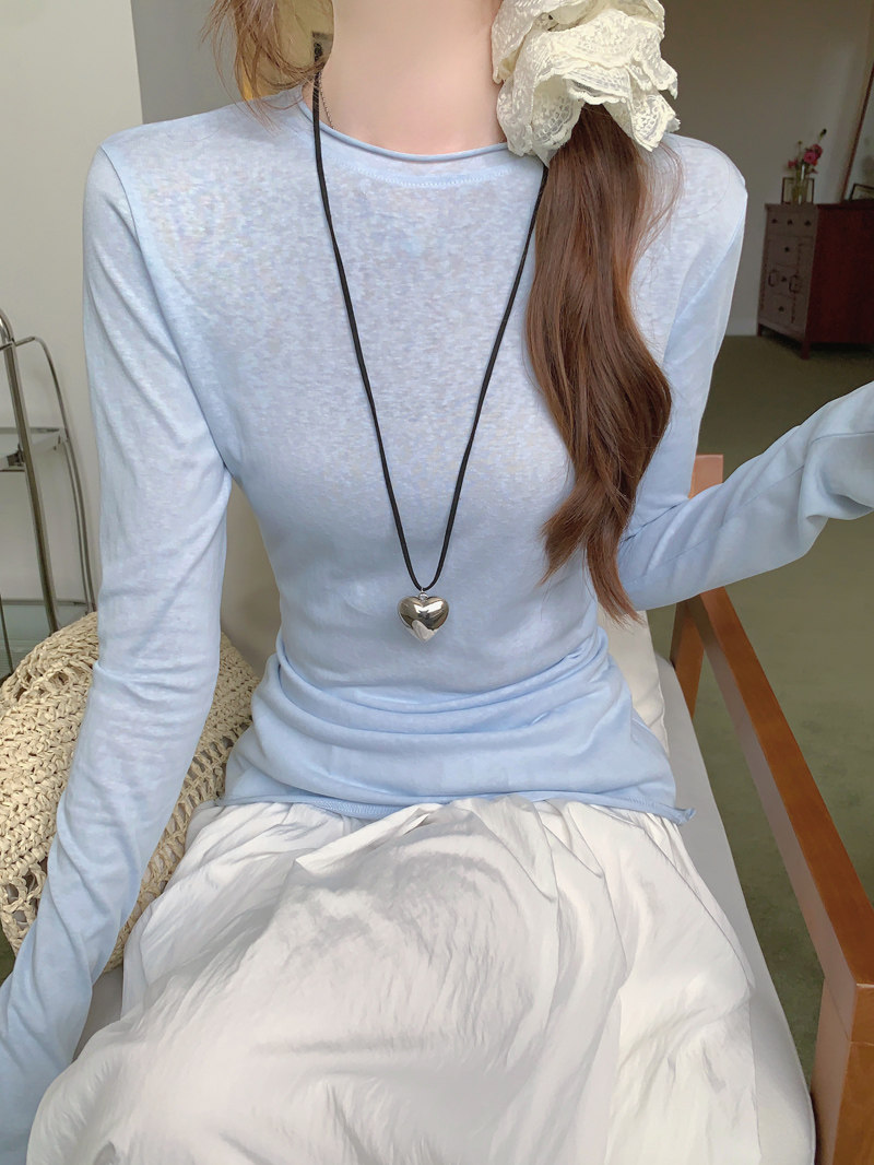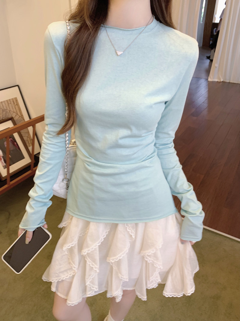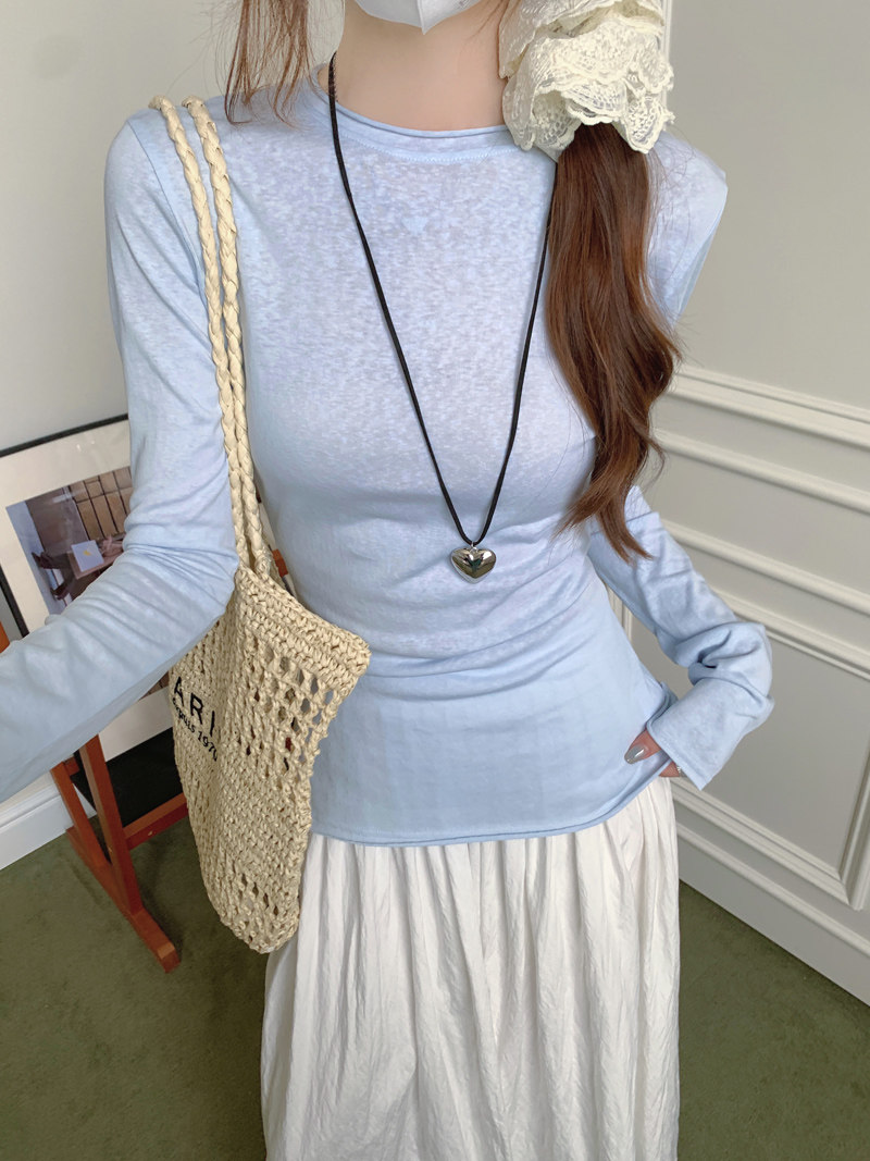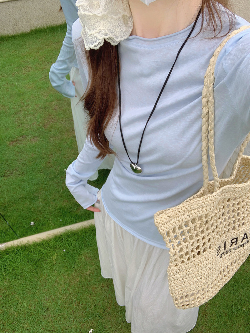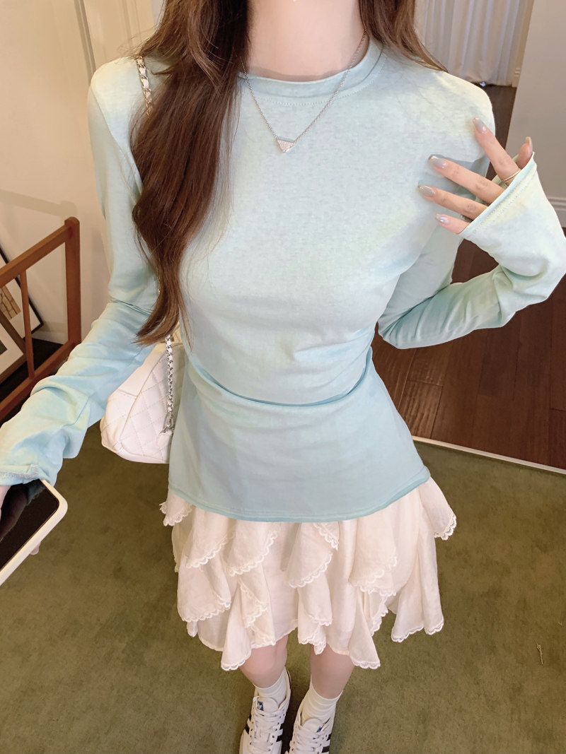 Korean-Style Fresh Mint Green Long-Sleeve T-Shirt for Women, Spring and Summer Thin Slim-Fit Sun-Protective Cover-Up, Simple Versatile Top