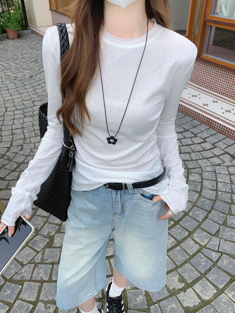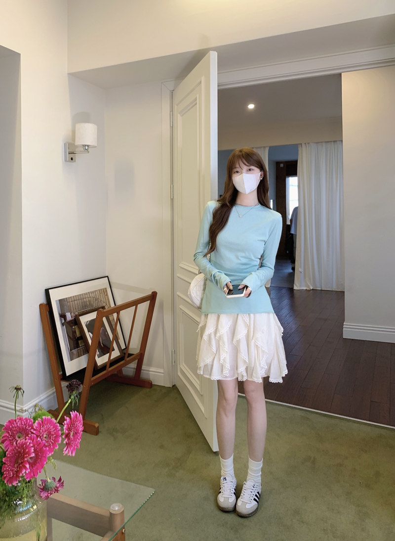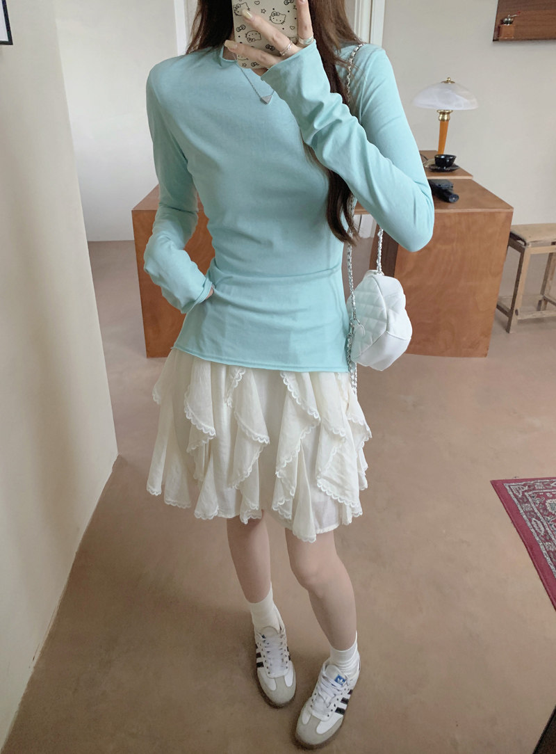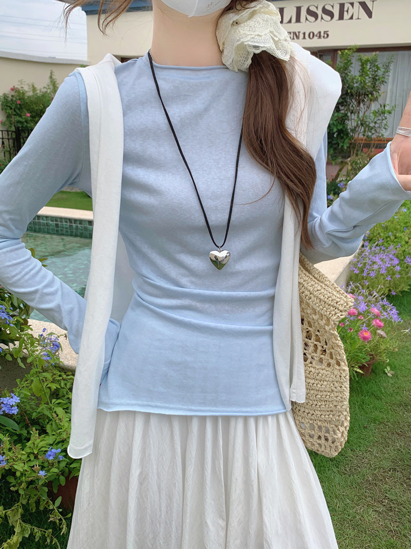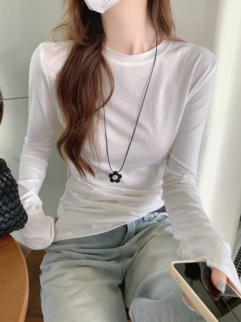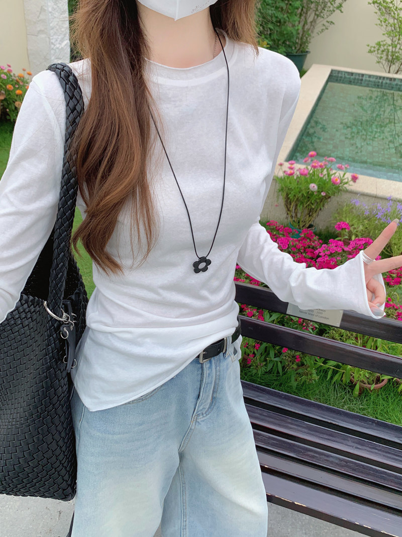 Korean-Style Fresh Mint Green Long-Sleeve T-Shirt for Women, Spring and Summer Thin Slim-Fit Sun-Protective Cover-Up, Simple Versatile Top