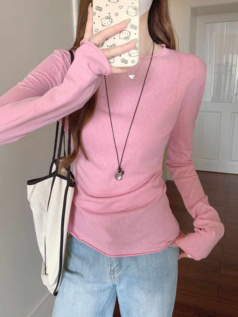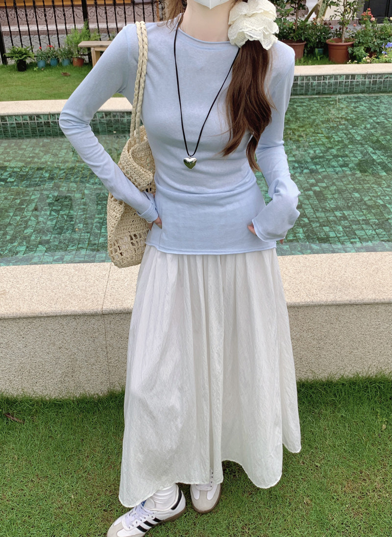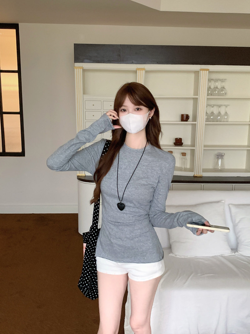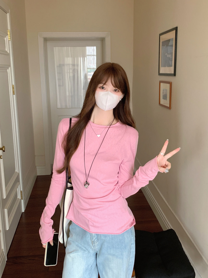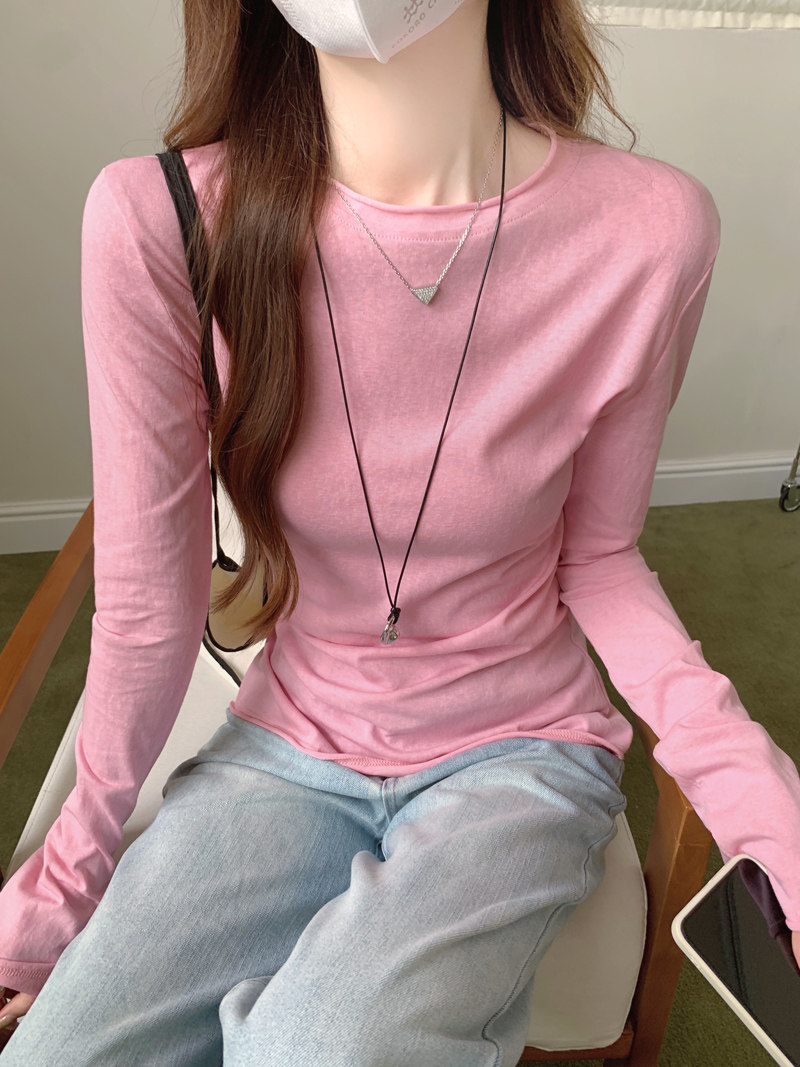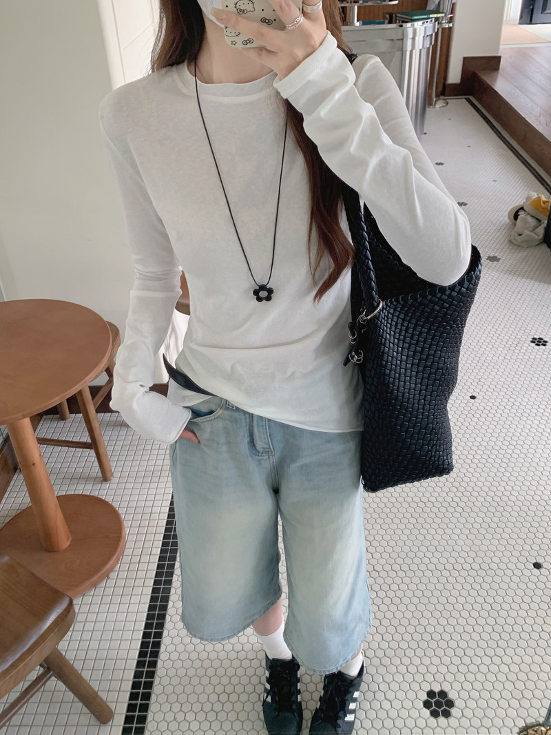 Korean-Style Fresh Mint Green Long-Sleeve T-Shirt for Women, Spring and Summer Thin Slim-Fit Sun-Protective Cover-Up, Simple Versatile Top