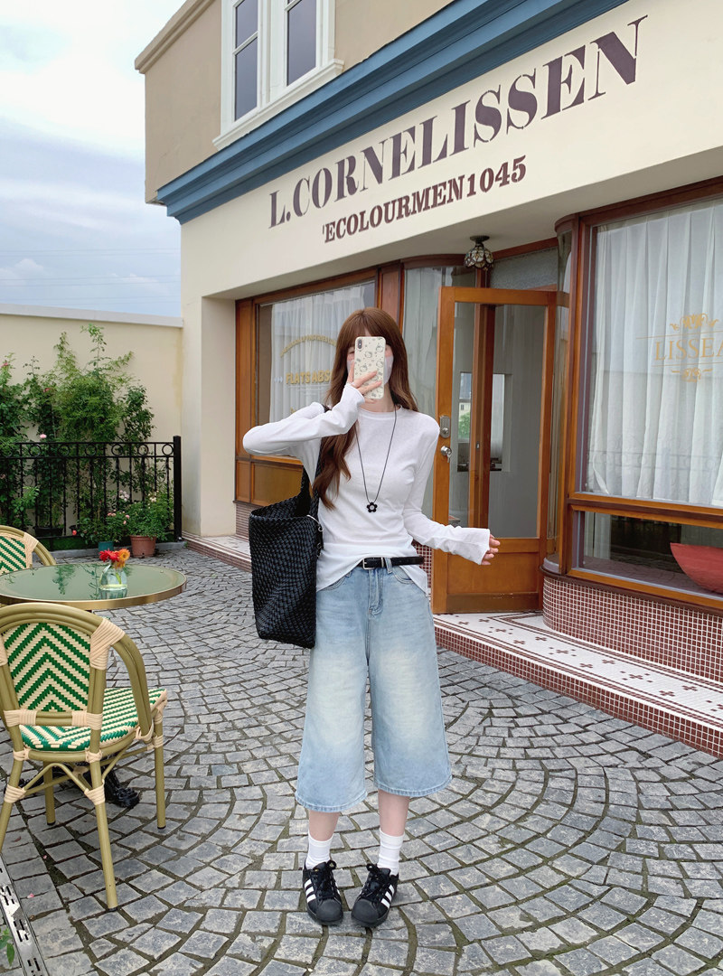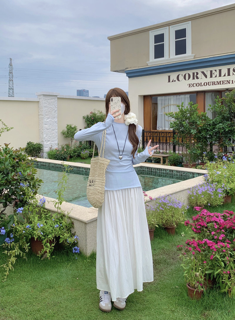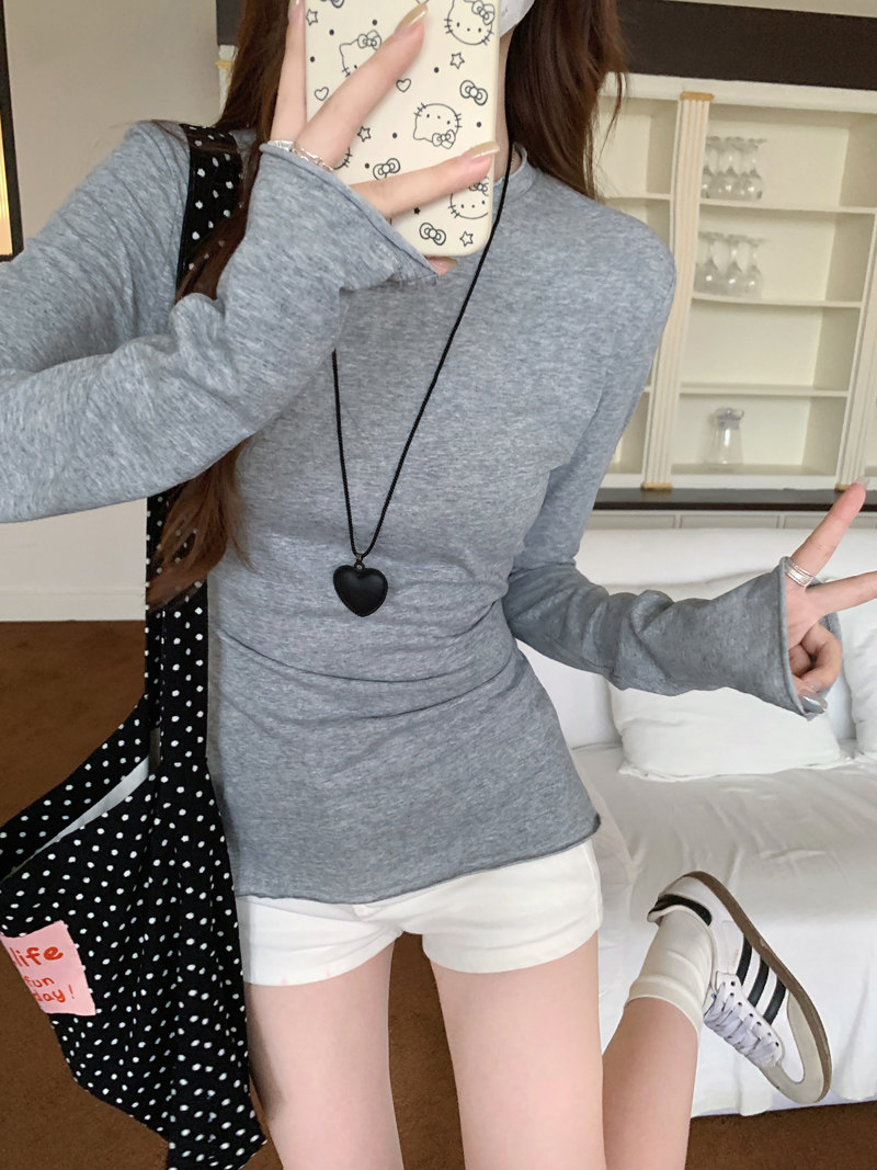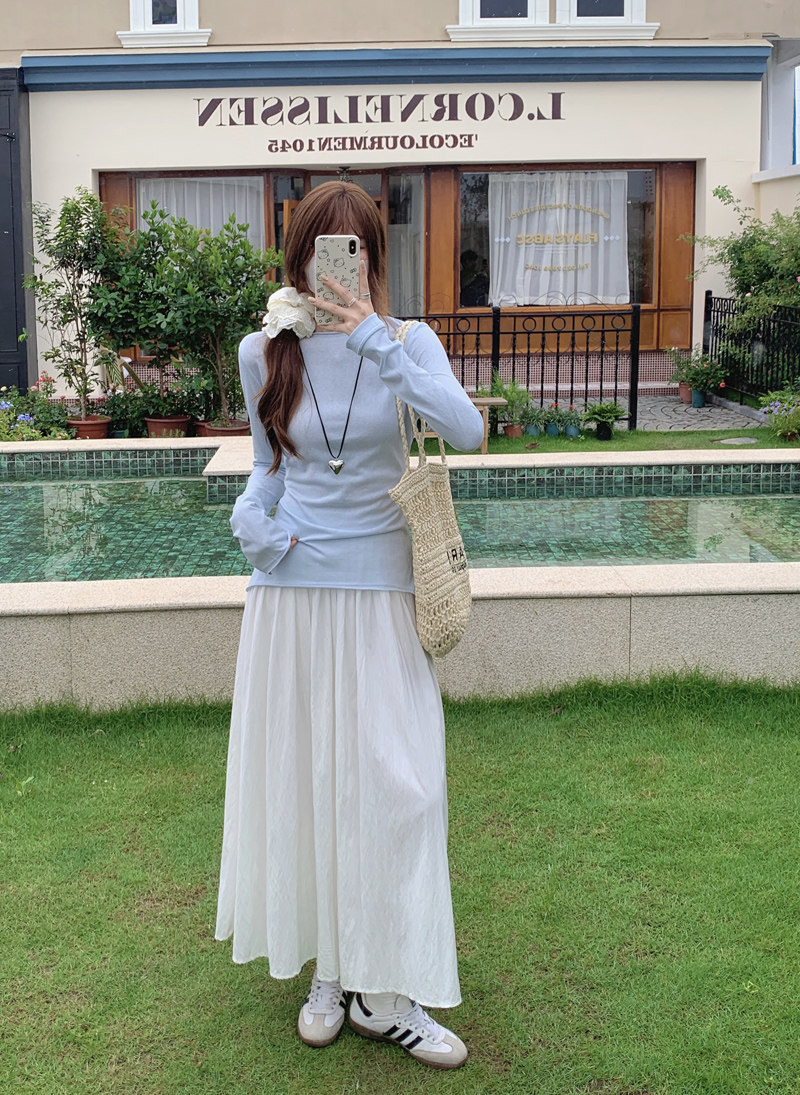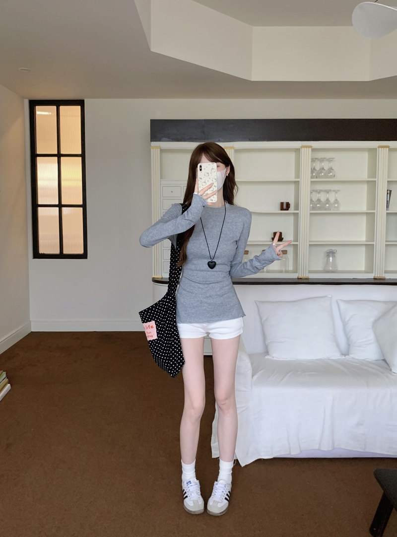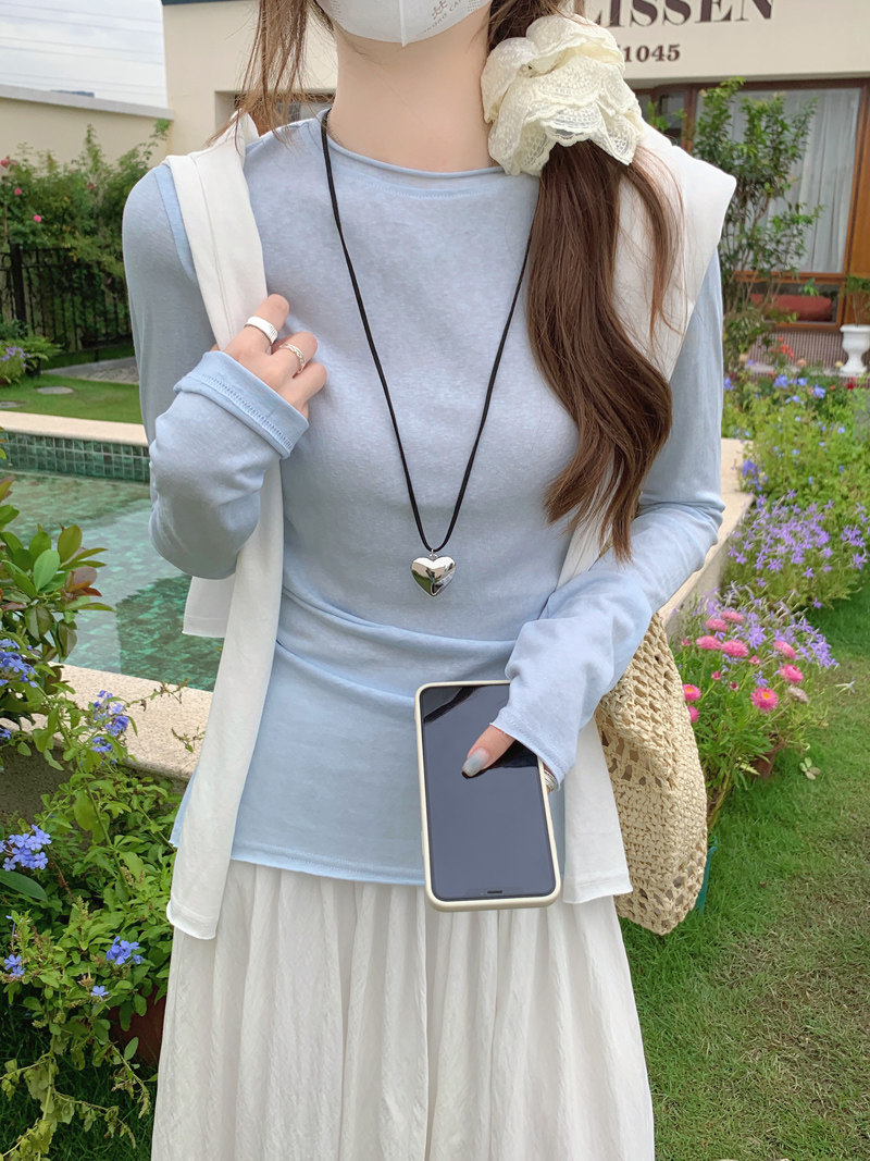 Korean-Style Fresh Mint Green Long-Sleeve T-Shirt for Women, Spring and Summer Thin Slim-Fit Sun-Protective Cover-Up, Simple Versatile Top