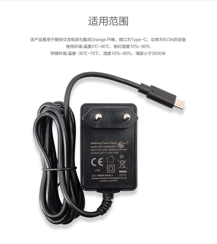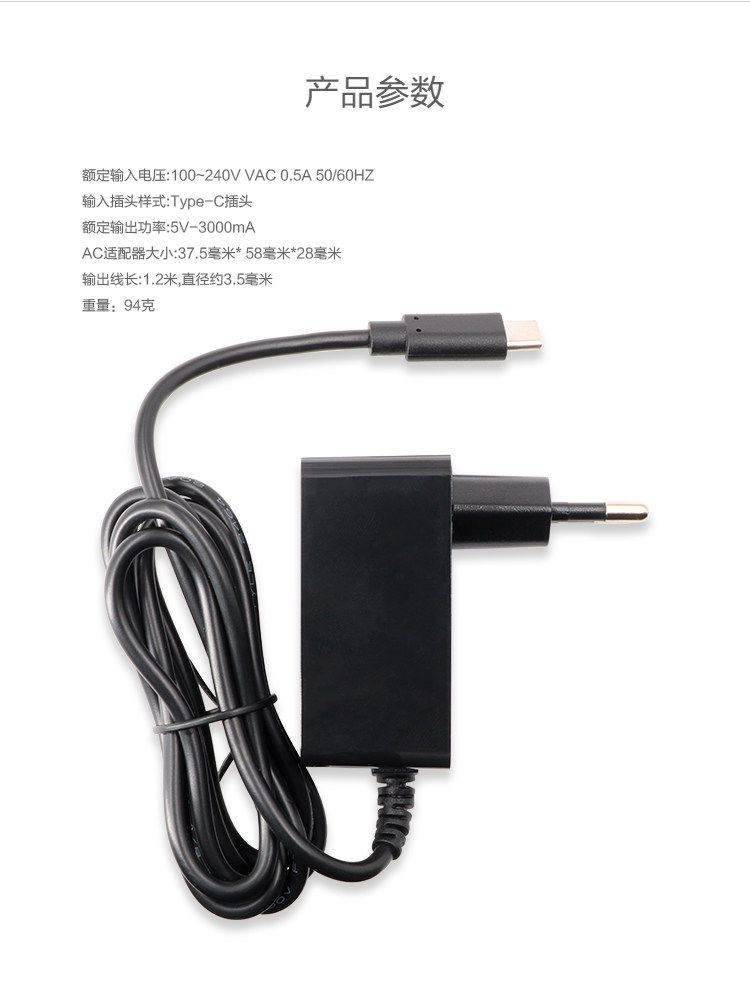 Development Board-Specific European Standard Type-C 5V3A Power Charging Cable and Charging Head Integrated into One