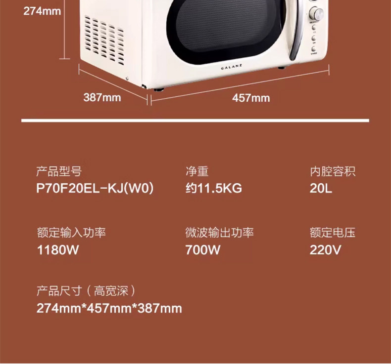 Galanz P70F20EL-KJ (W0) microwave oven retro high-value household small new fast