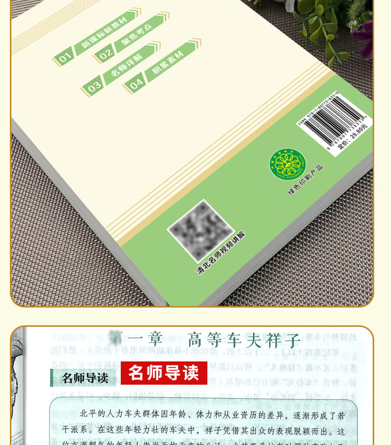 Book Title Reading Bar Volume 2, Grade 7, Luotuo Xiangzi, 16 Pages (Including Booklet), Video Version