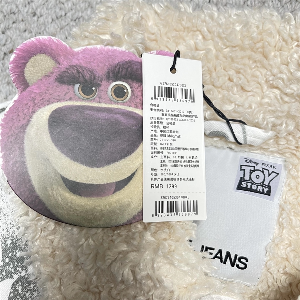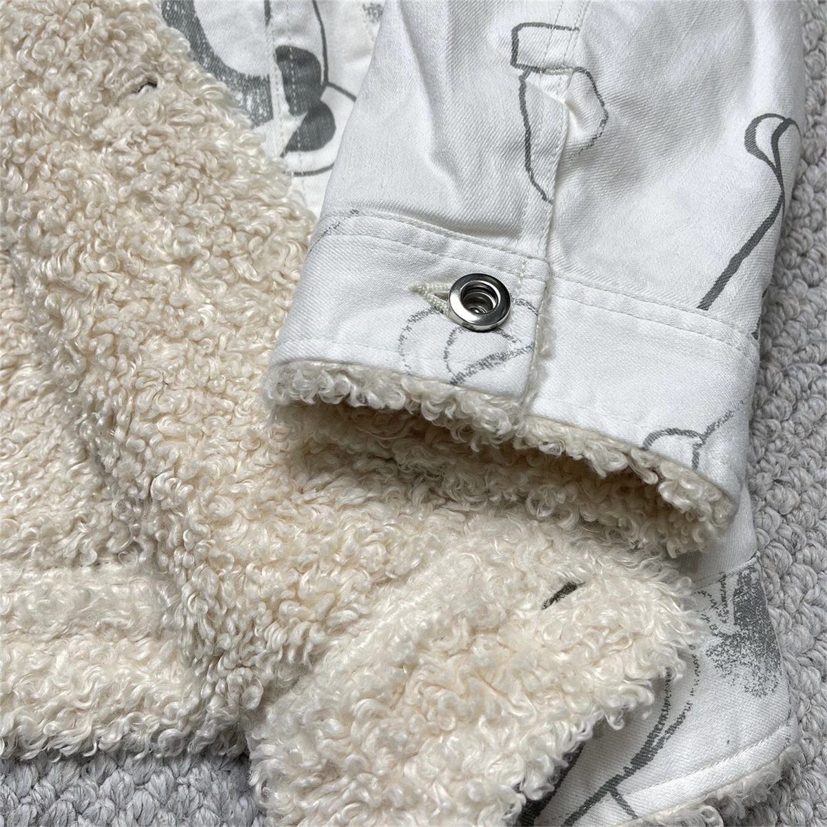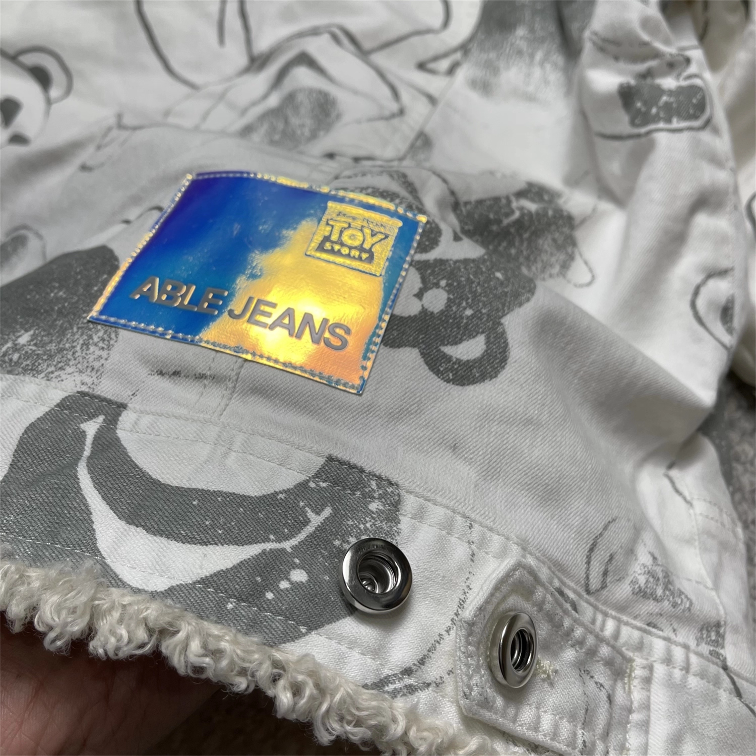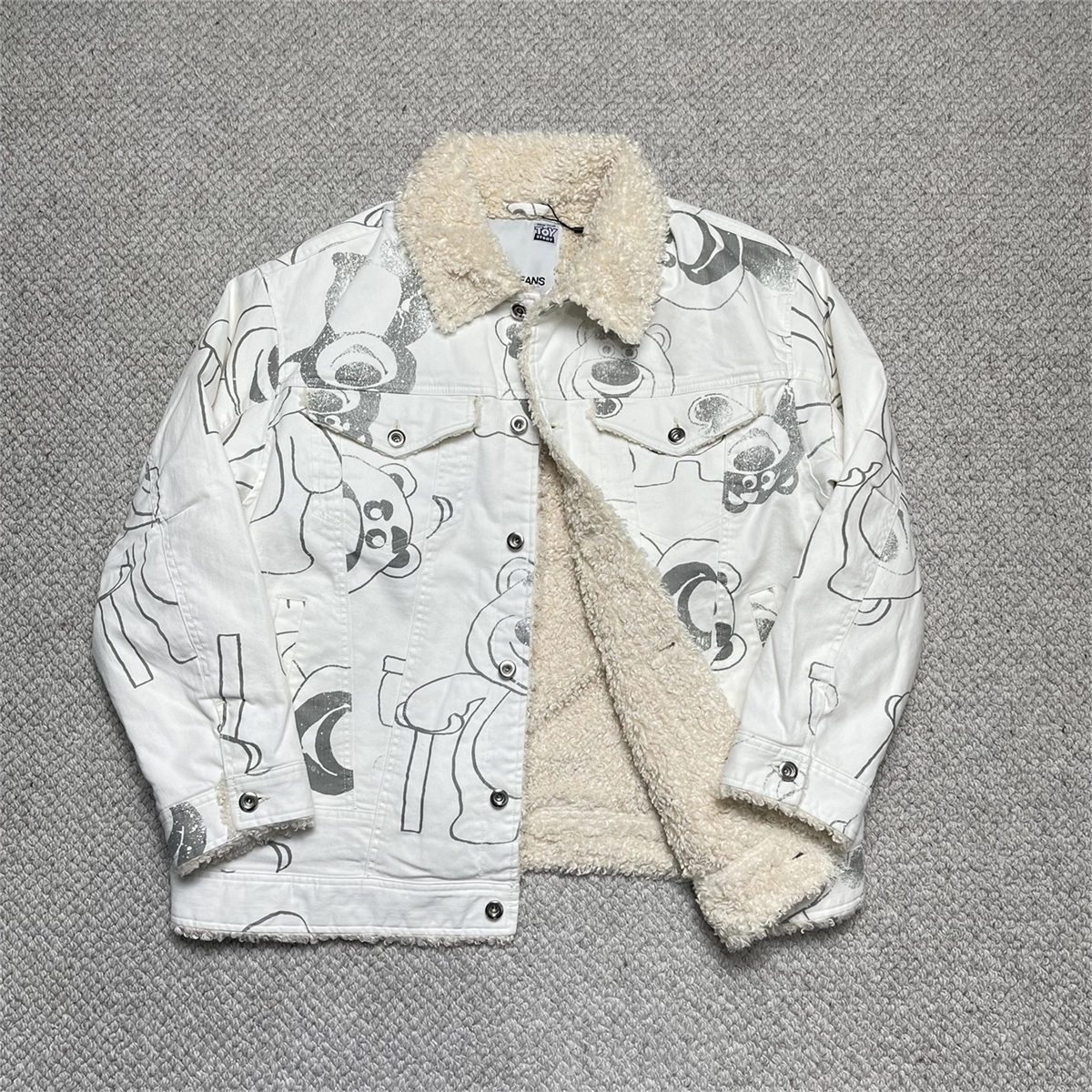 Able Jeans Fur Collar Padded Denim Jacket 761053-326 Strawberry Bear Collaboration Model