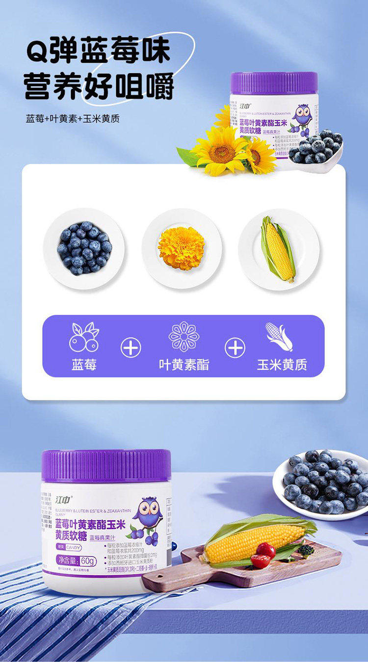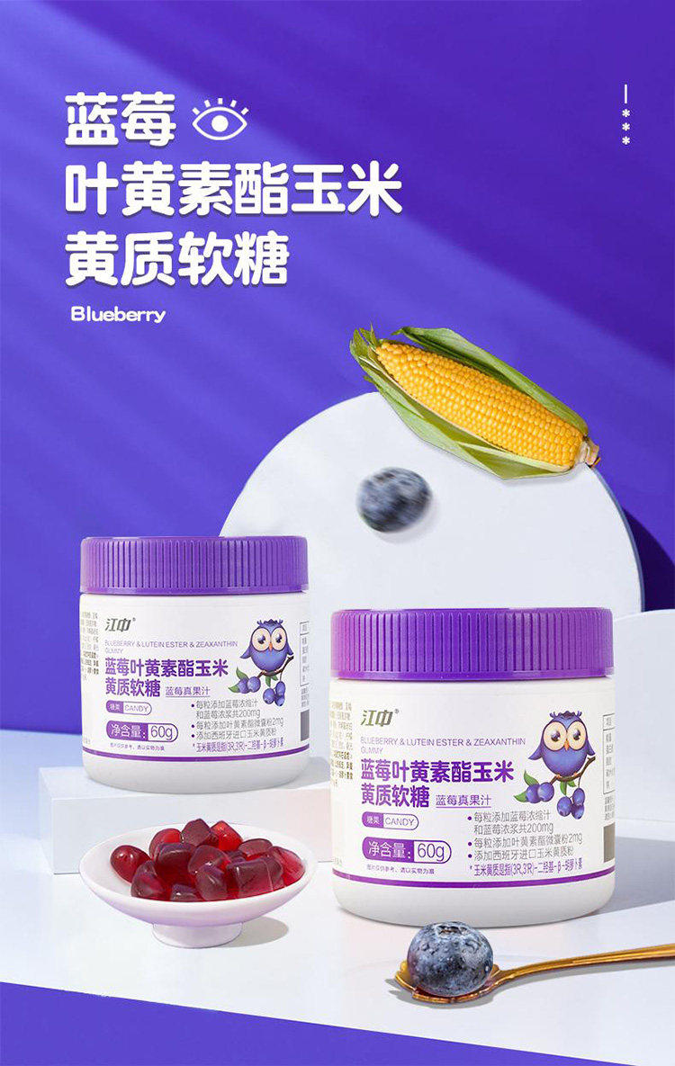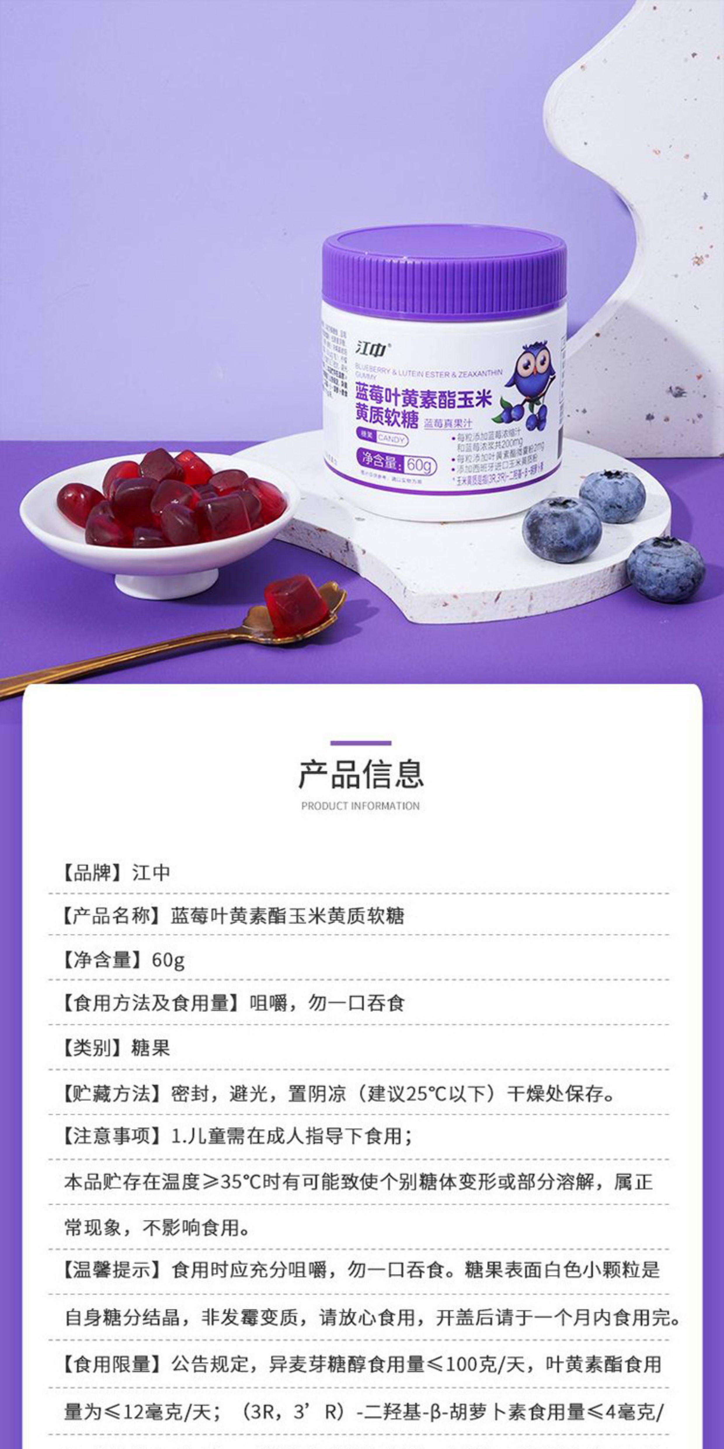 Jiangzhong Blueberry Lutein Ester Zeaxanthin Gummies for Kidsren and Adolescents Eye Nutrition to Relieve Eye Fatigue Genuine Product