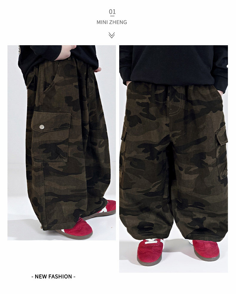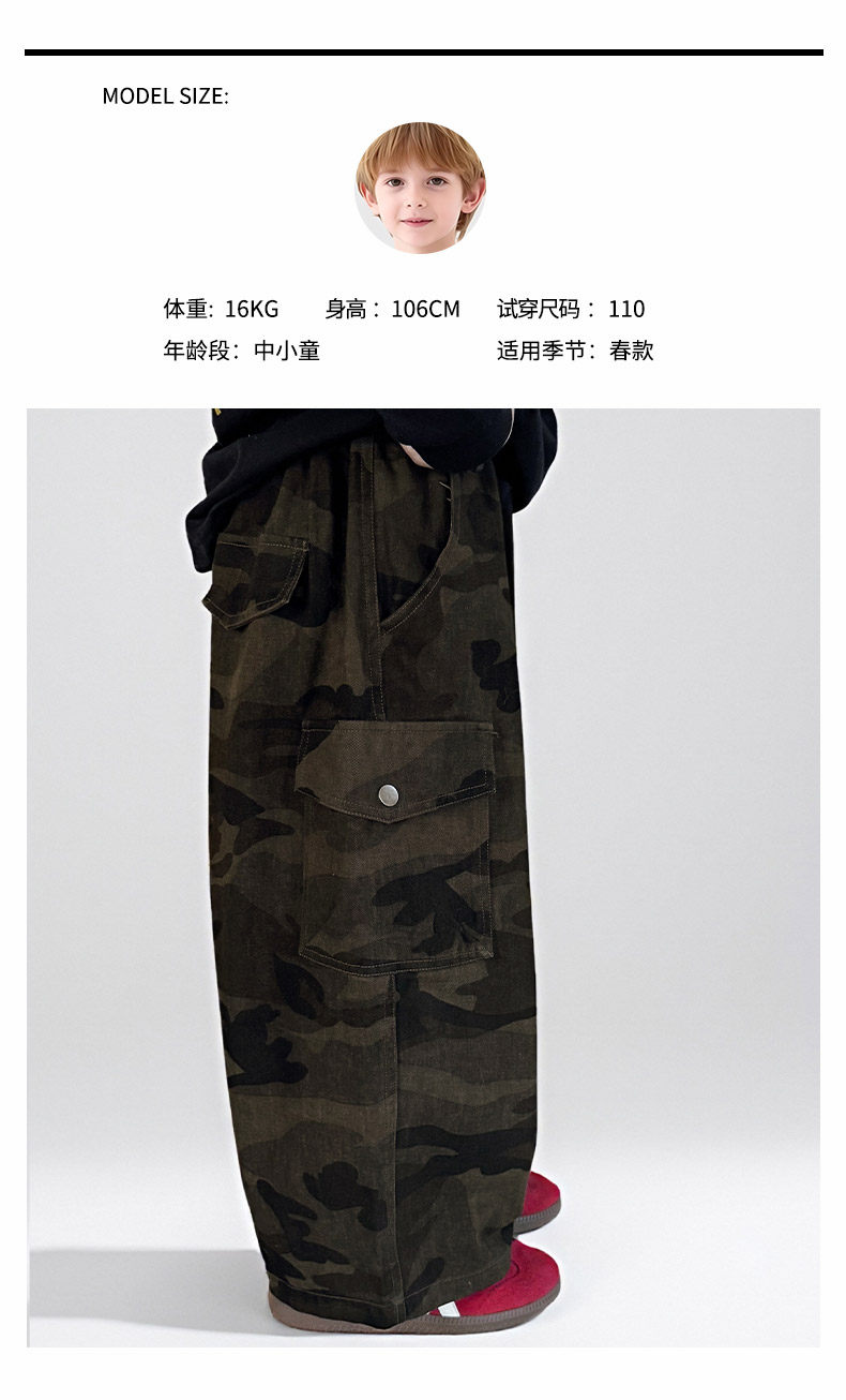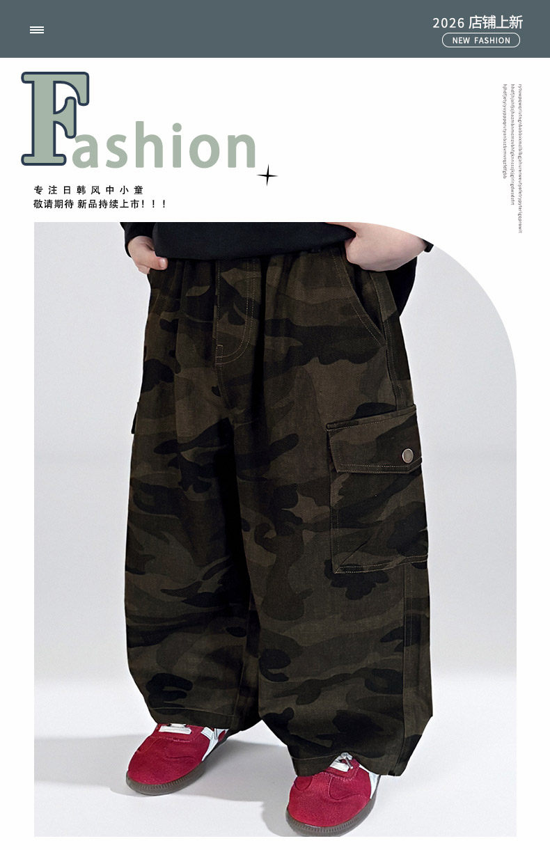Boys' Camouflage Pants Spring and Autumn 2026 New Stylish Boys' Spring Outfit Workwear Straight-Leg Pants Children's Sports Pants