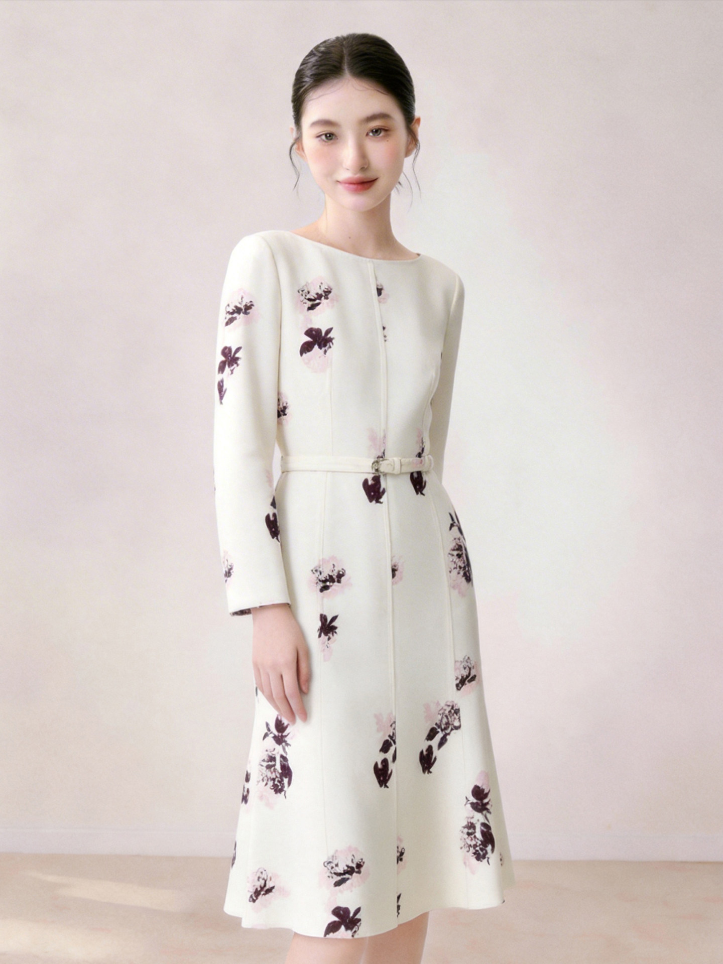 Age-Reducing, Powerful Aura Dress with Print, Waist-Cinching, Elegant for Work, Gentle and Generous, Luxurious High-End Dress for Summer 2026