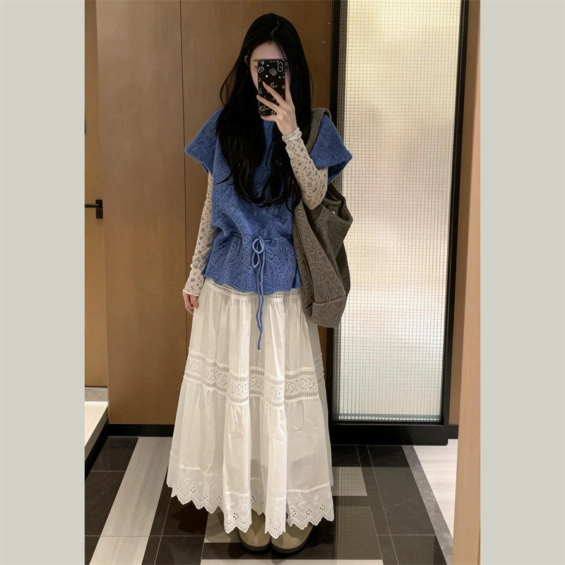 Korean fashion suit for women, wear a bottoming shirt underneath a sweater, a complete set of high-end and versatile skirts, trendy