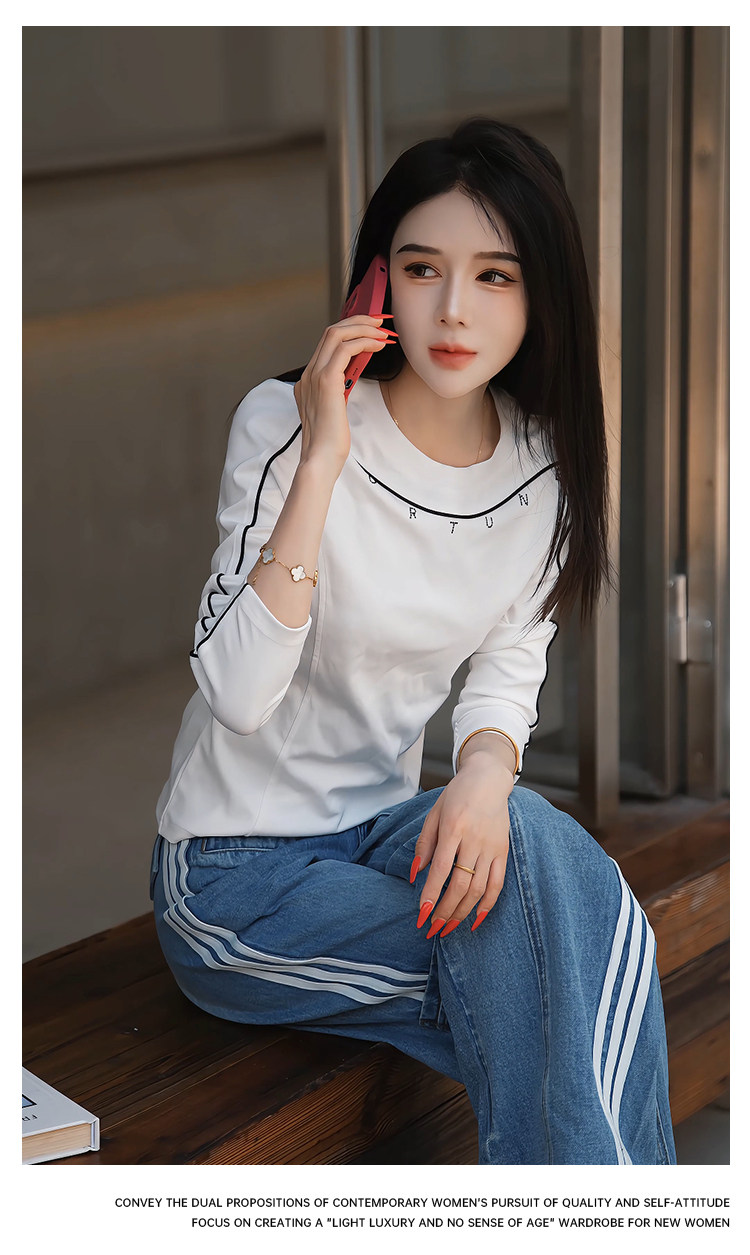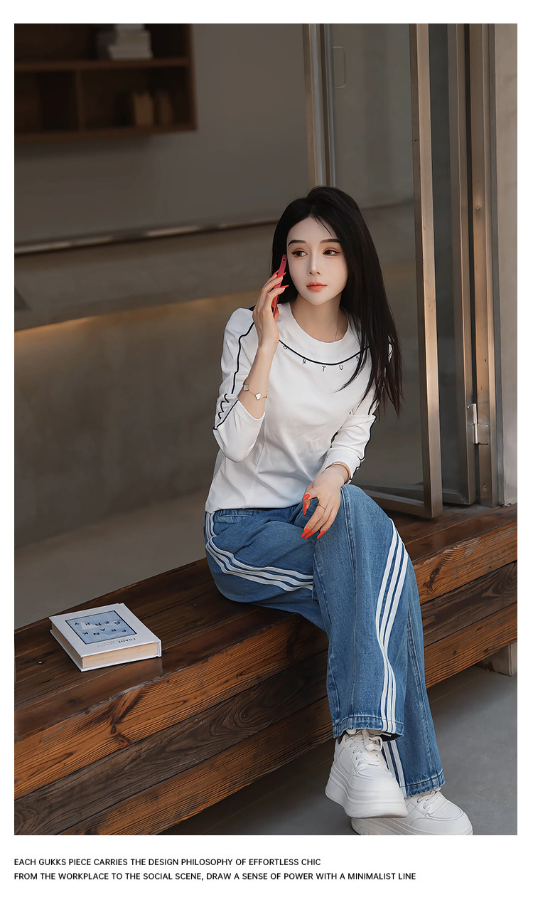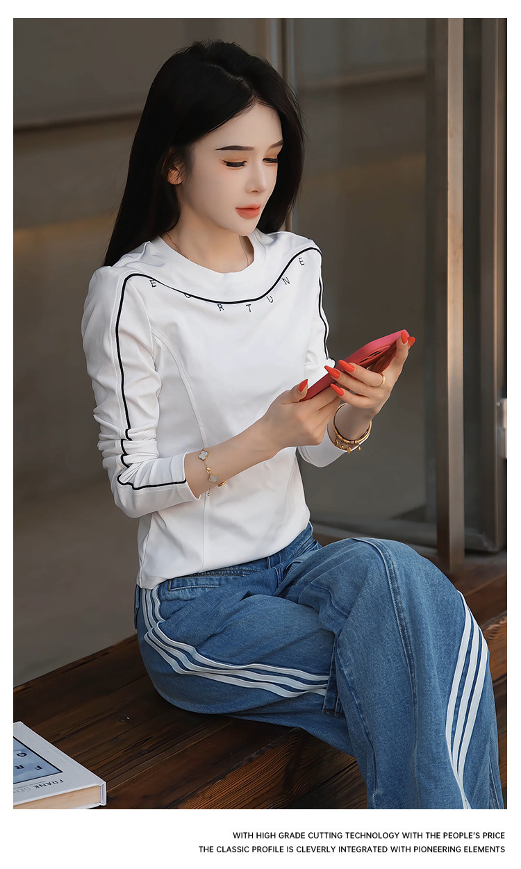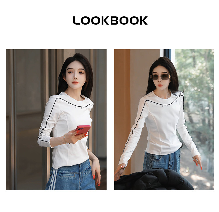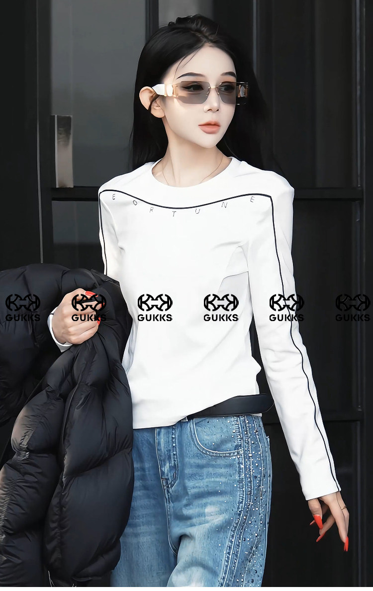 Mingming GUKKS top-stitch base 2026 early spring design line slimming round neck long-sleeved T-shirt