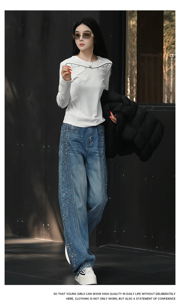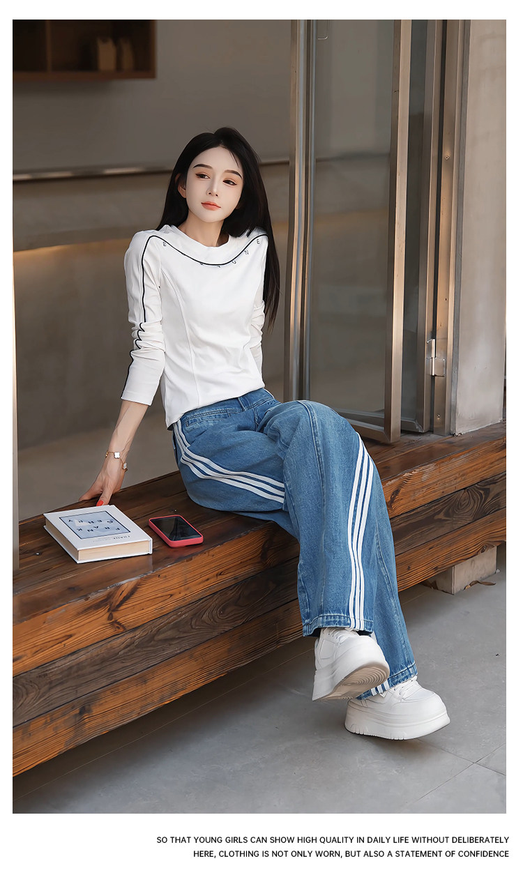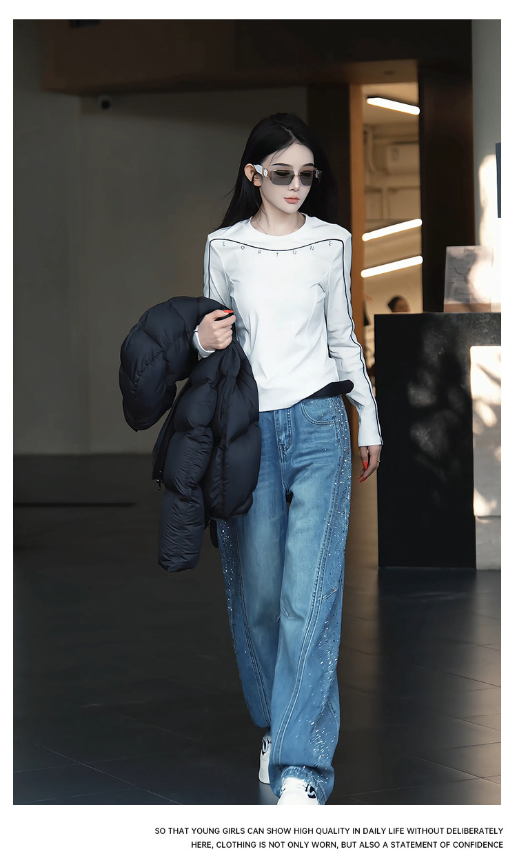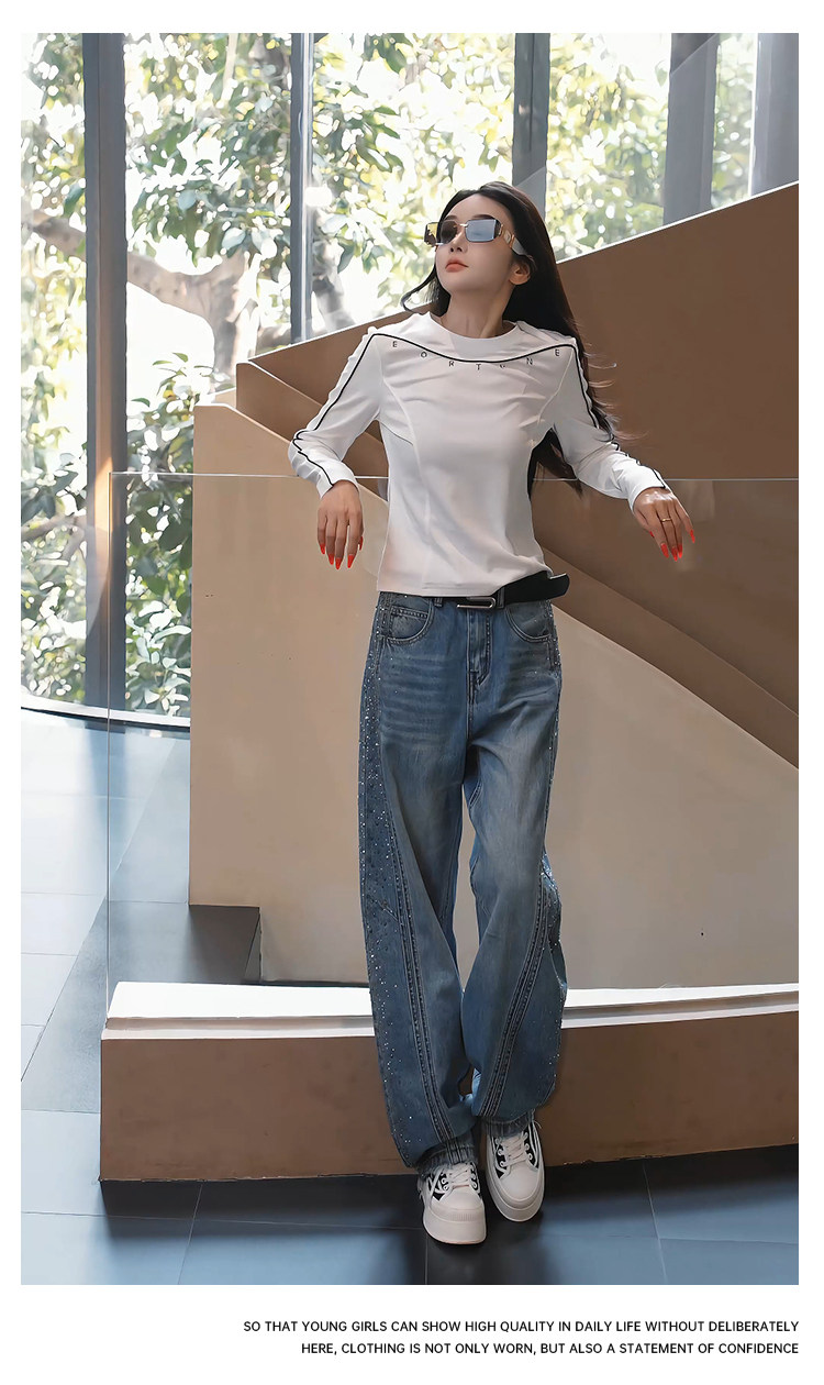 Mingming GUKKS top-stitch base 2026 early spring design line slimming round neck long-sleeved T-shirt