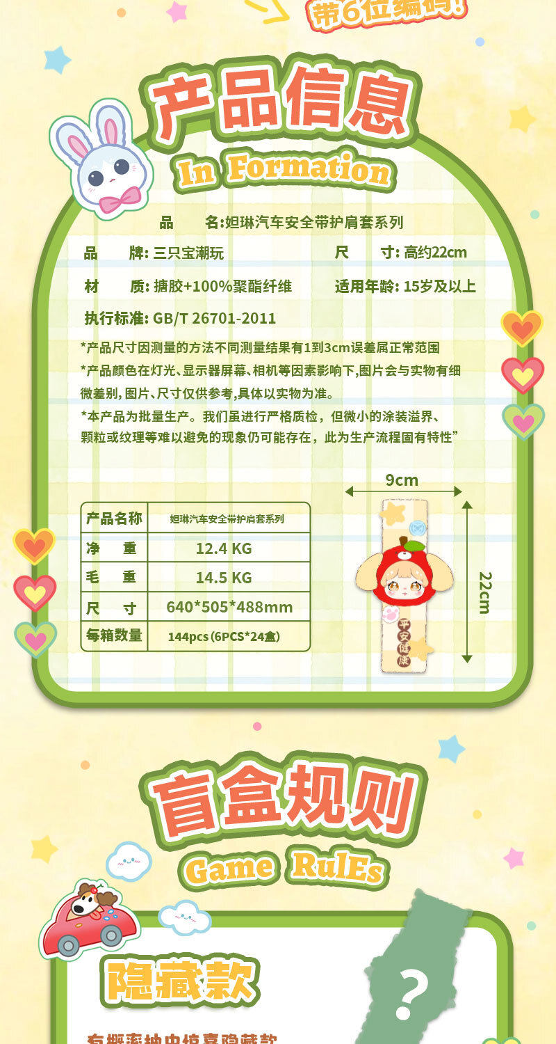 Darlym Car Seatbelt Shoulder Pad Plush Pendant Blind Box Doll Toy Girl's Gift