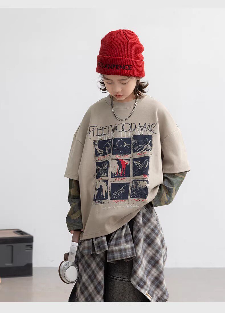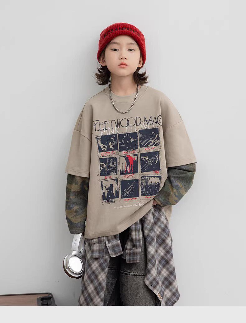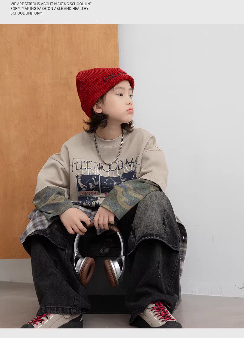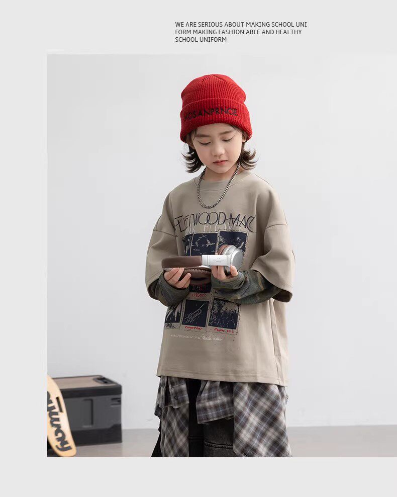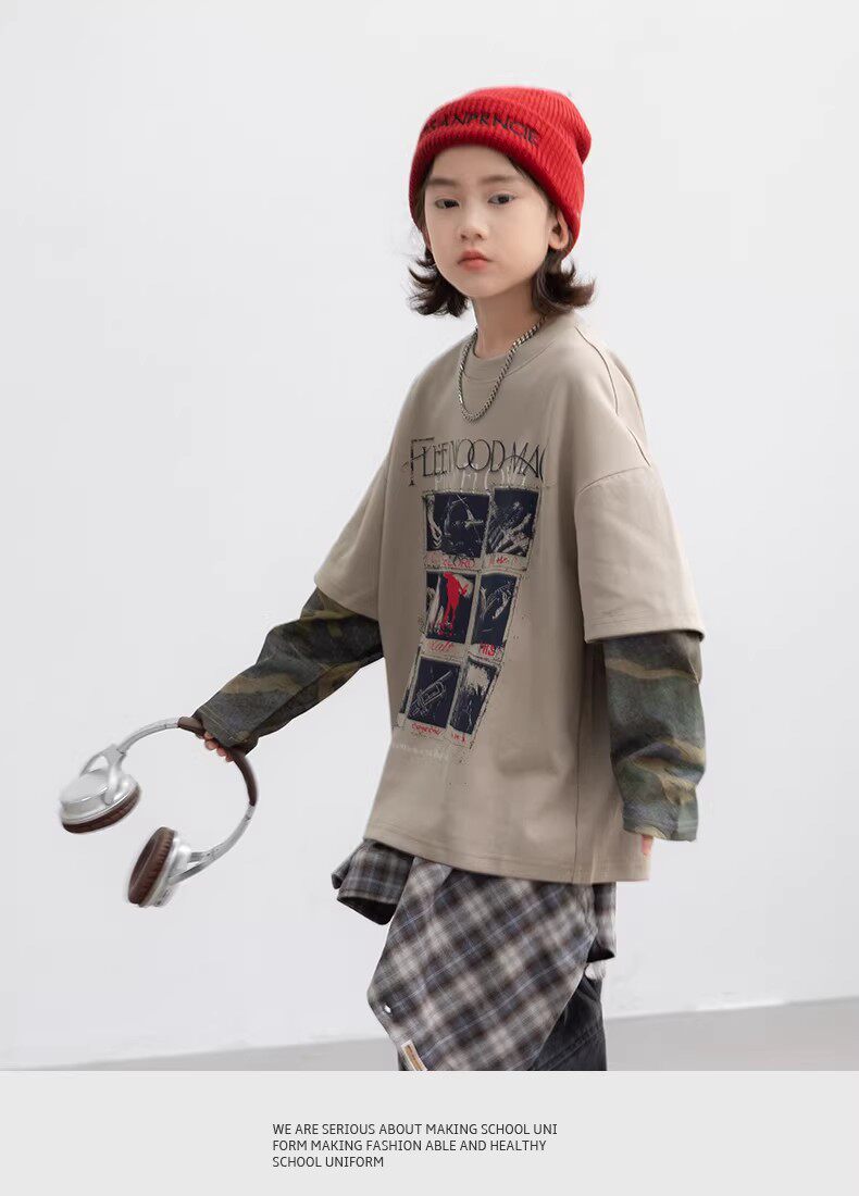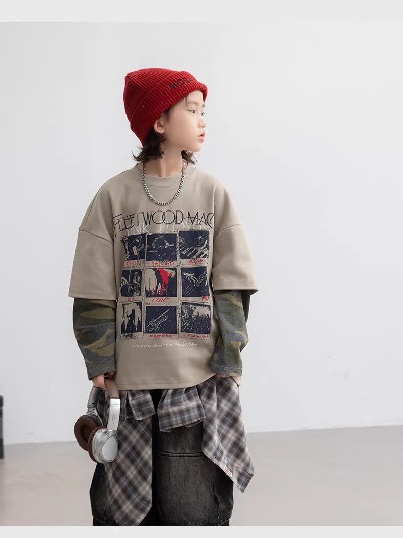 German Razt Brand Store Boys' Faux Two-Piece Long-Sleeve 2026 New Children's Spring Outfit Base Shirt Spring Sweatshirt