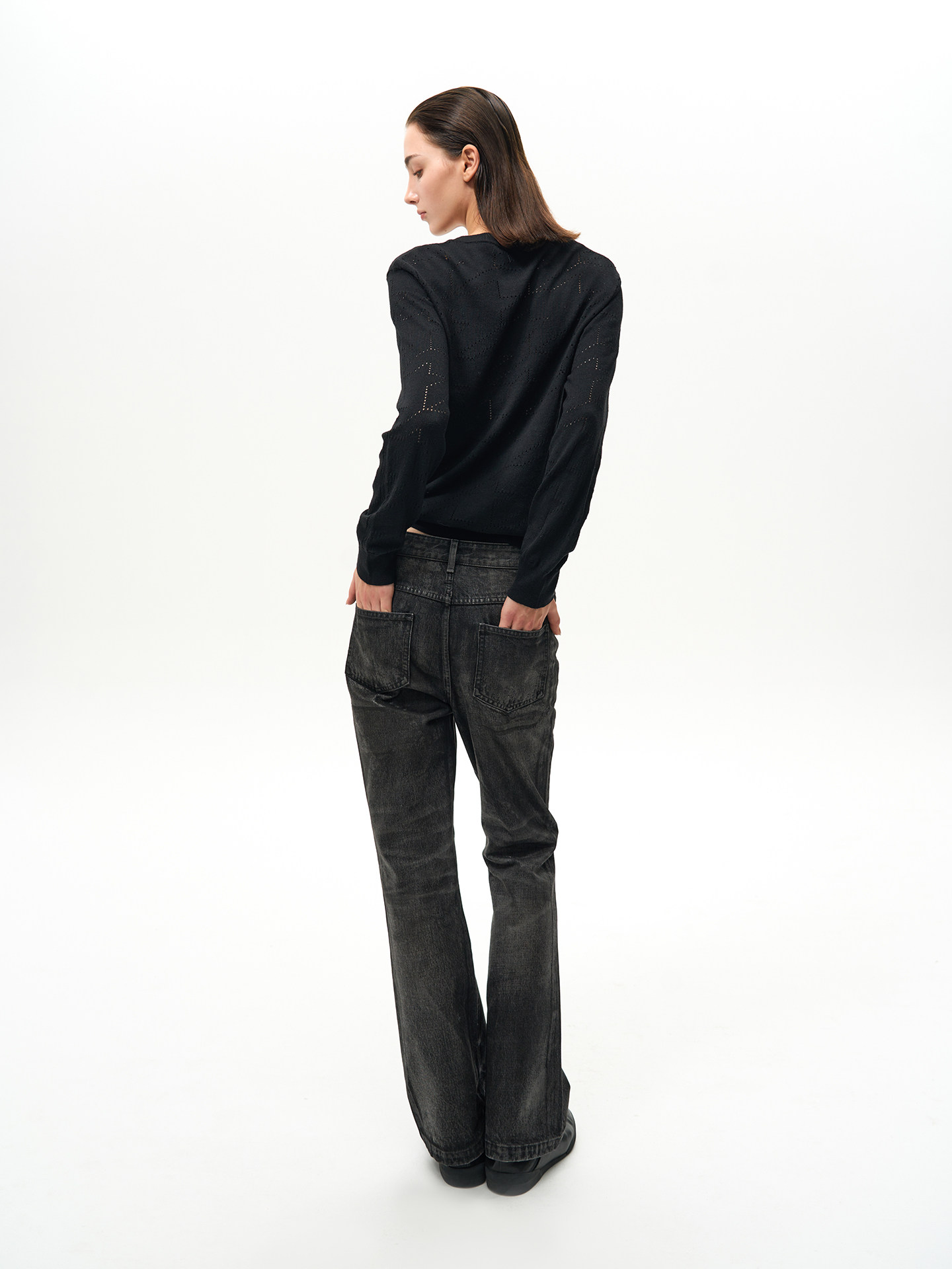 Slight Vogue丨Ebony black hollow houndstooth slim long-sleeved sweater