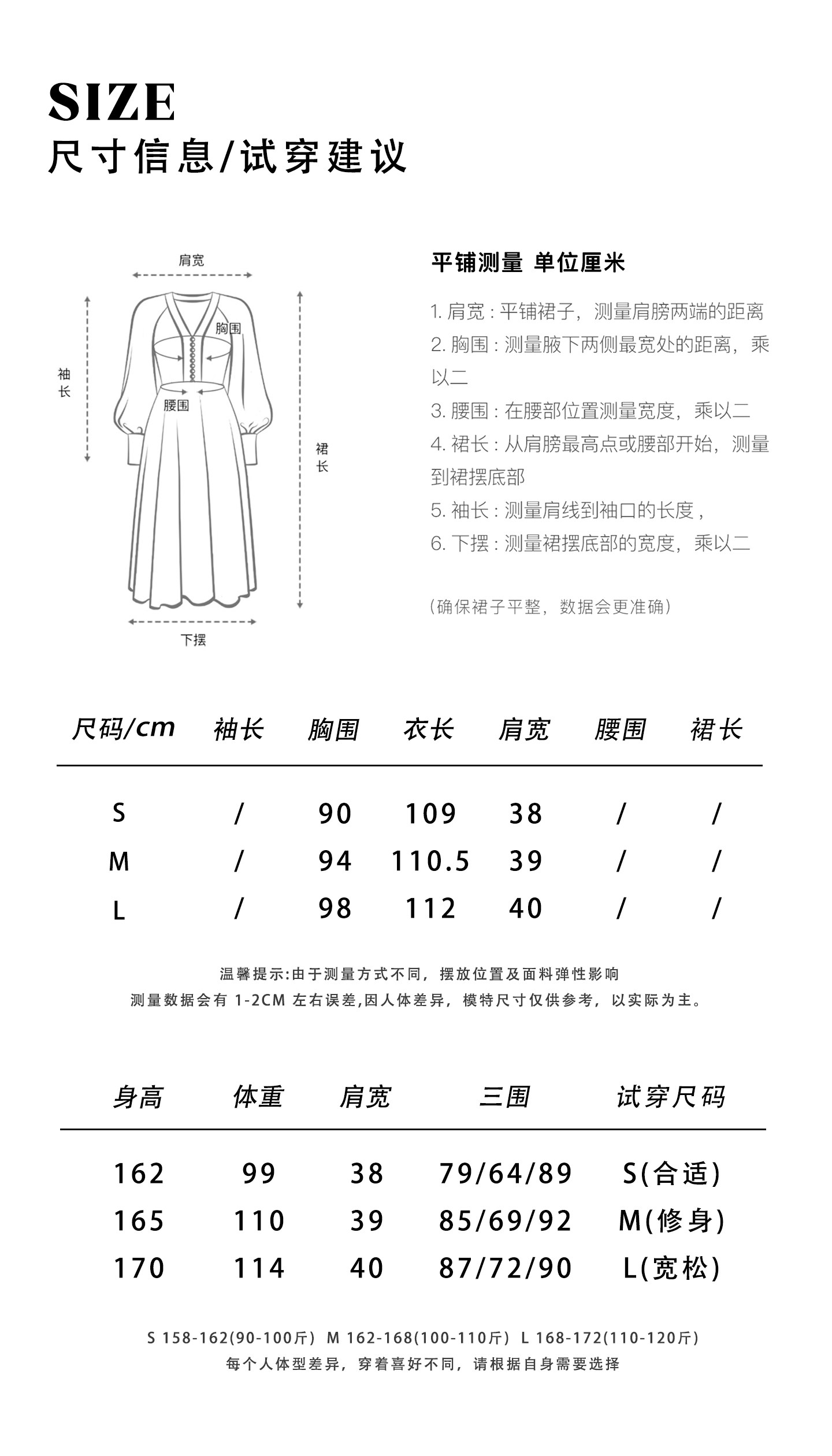 China (cm) 160-165/84-86 165-170 / 88-90 167-172 / 92-96 168-173 / 98-102 170-176 / 106-110