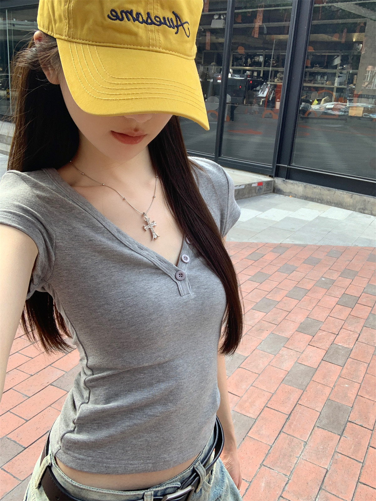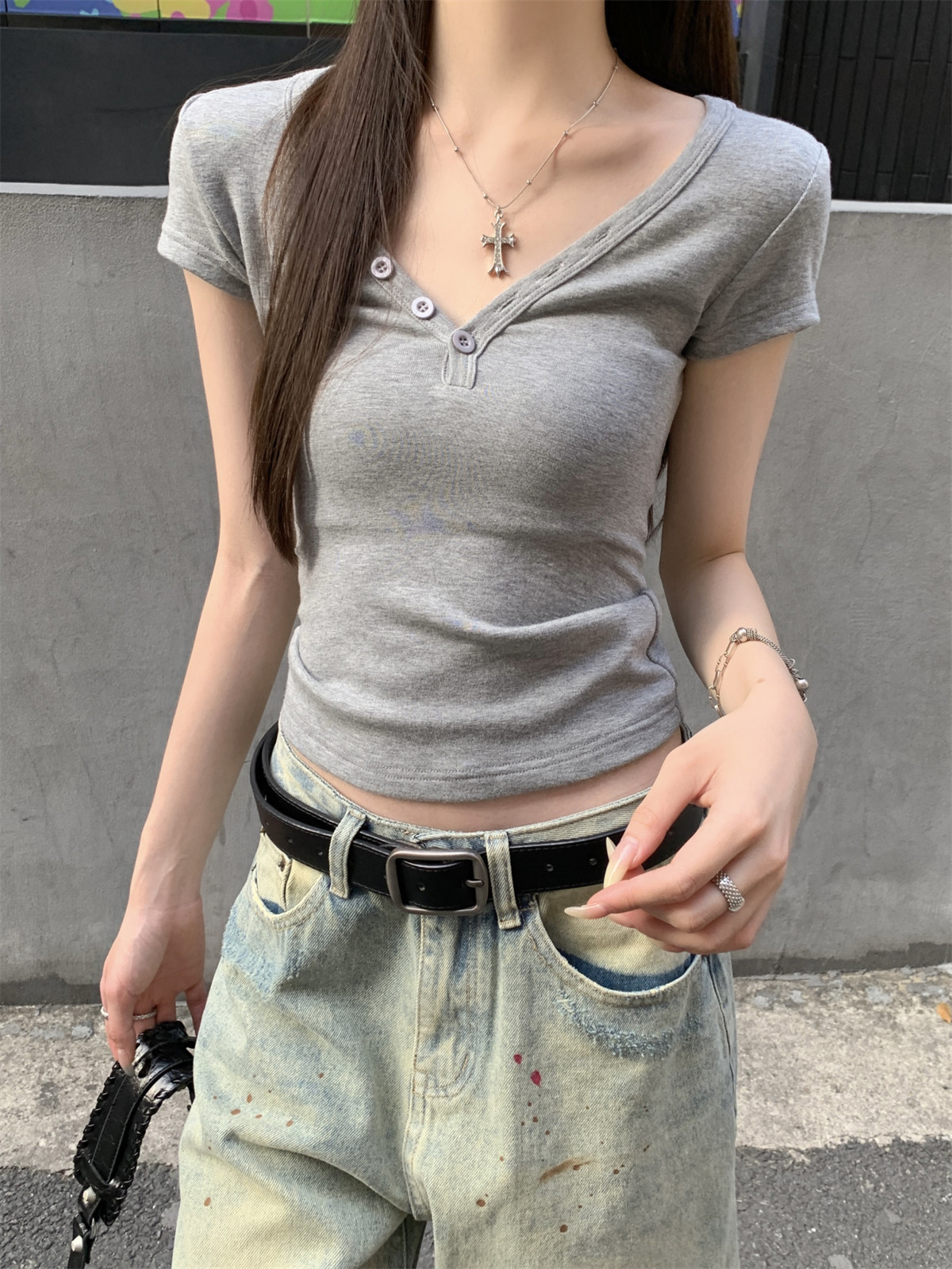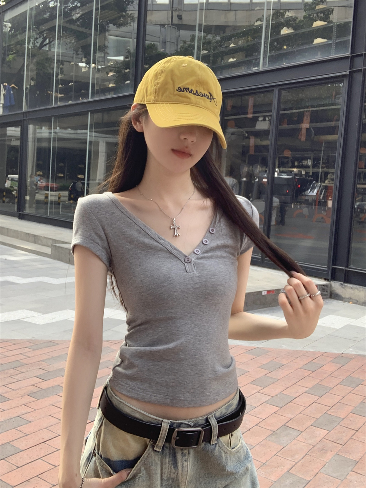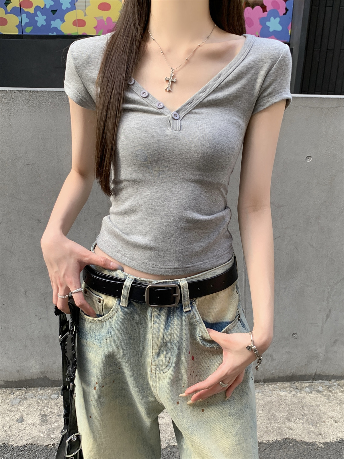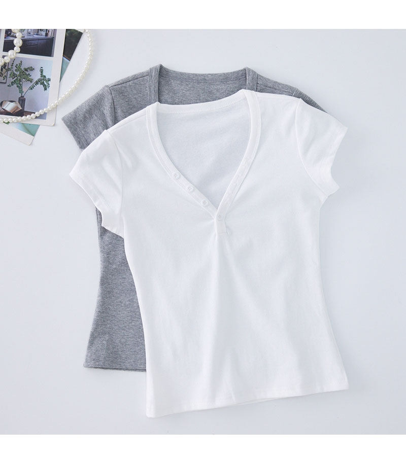 Elegant V-Neck Sexy Pure Desire Short-Sleeve T-Shirt for Women, 2026 Summer New Korean Style Slim-Fit Short Half-Sleeve Top