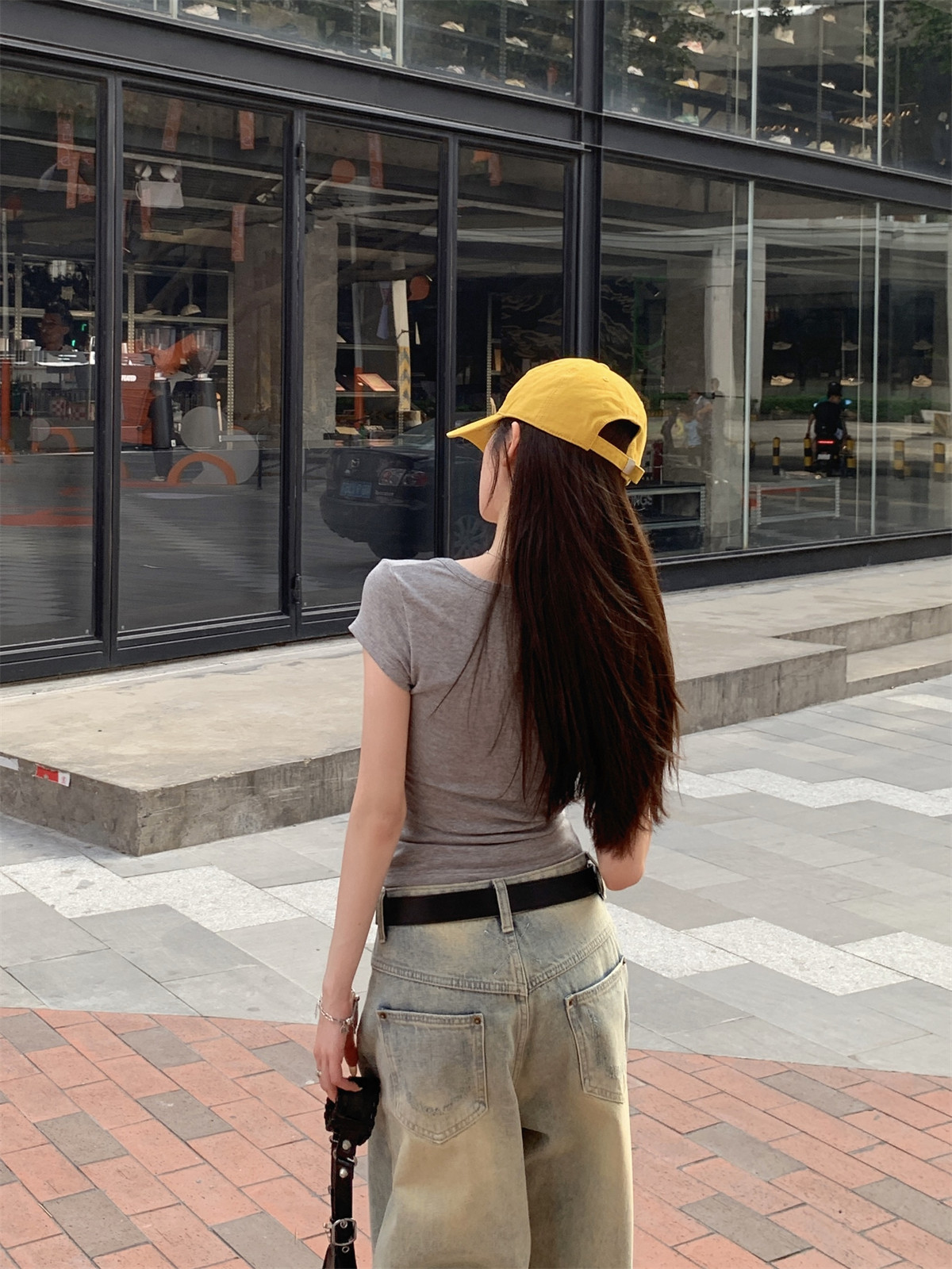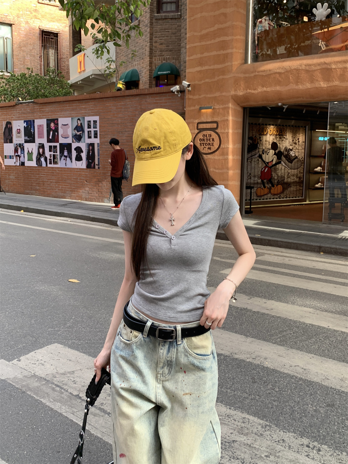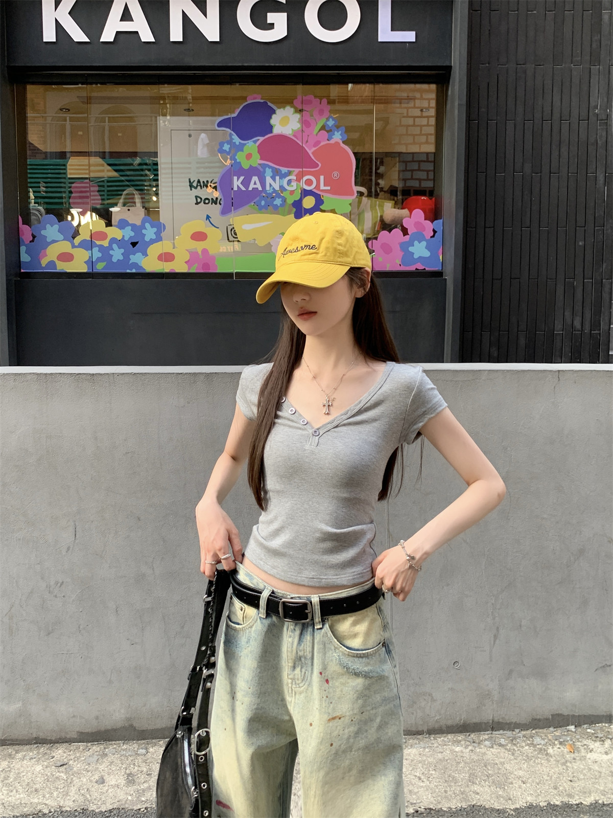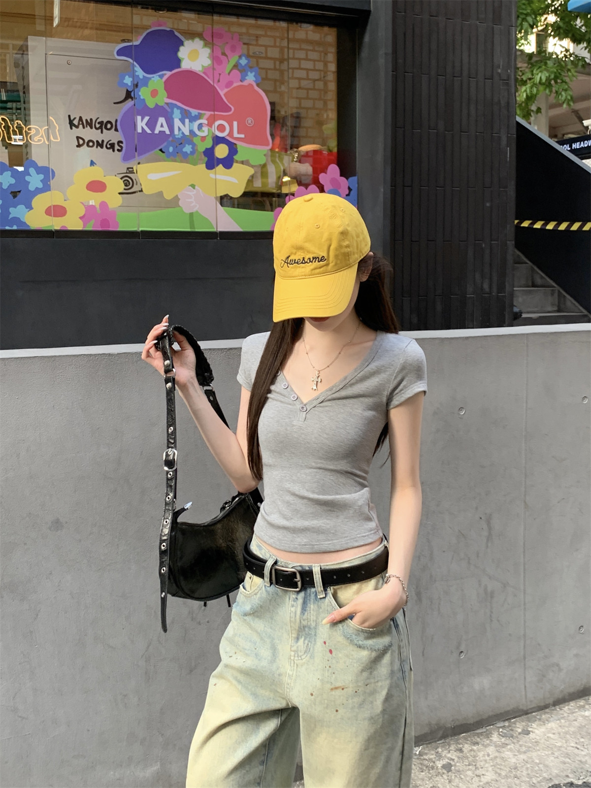 Elegant V-Neck Sexy Pure Desire Short-Sleeve T-Shirt for Women, 2026 Summer New Korean Style Slim-Fit Short Half-Sleeve Top