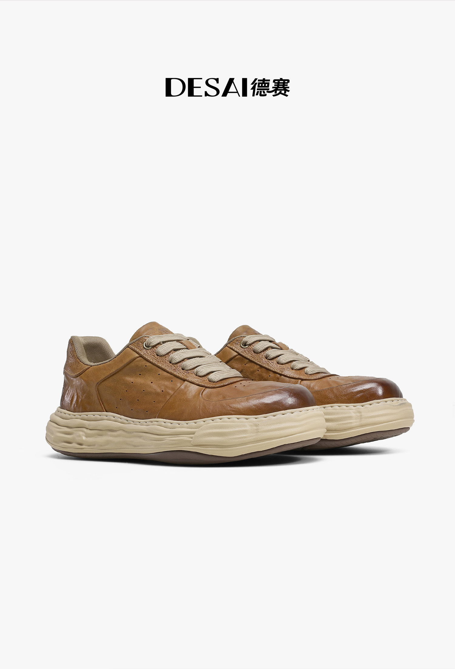 Desai [Dissolving Sole] Thick-Soled Shock-Absorbing Lightweight Casual Shoes, Retro Genuine Leather Soft-Soled Commuting Sports Sneakers for Men