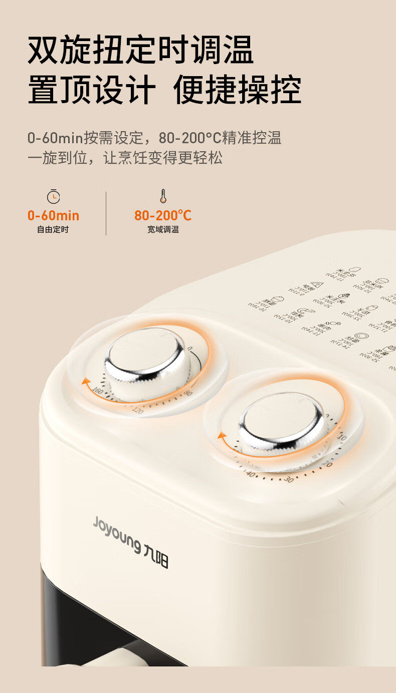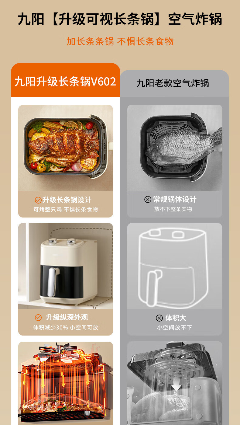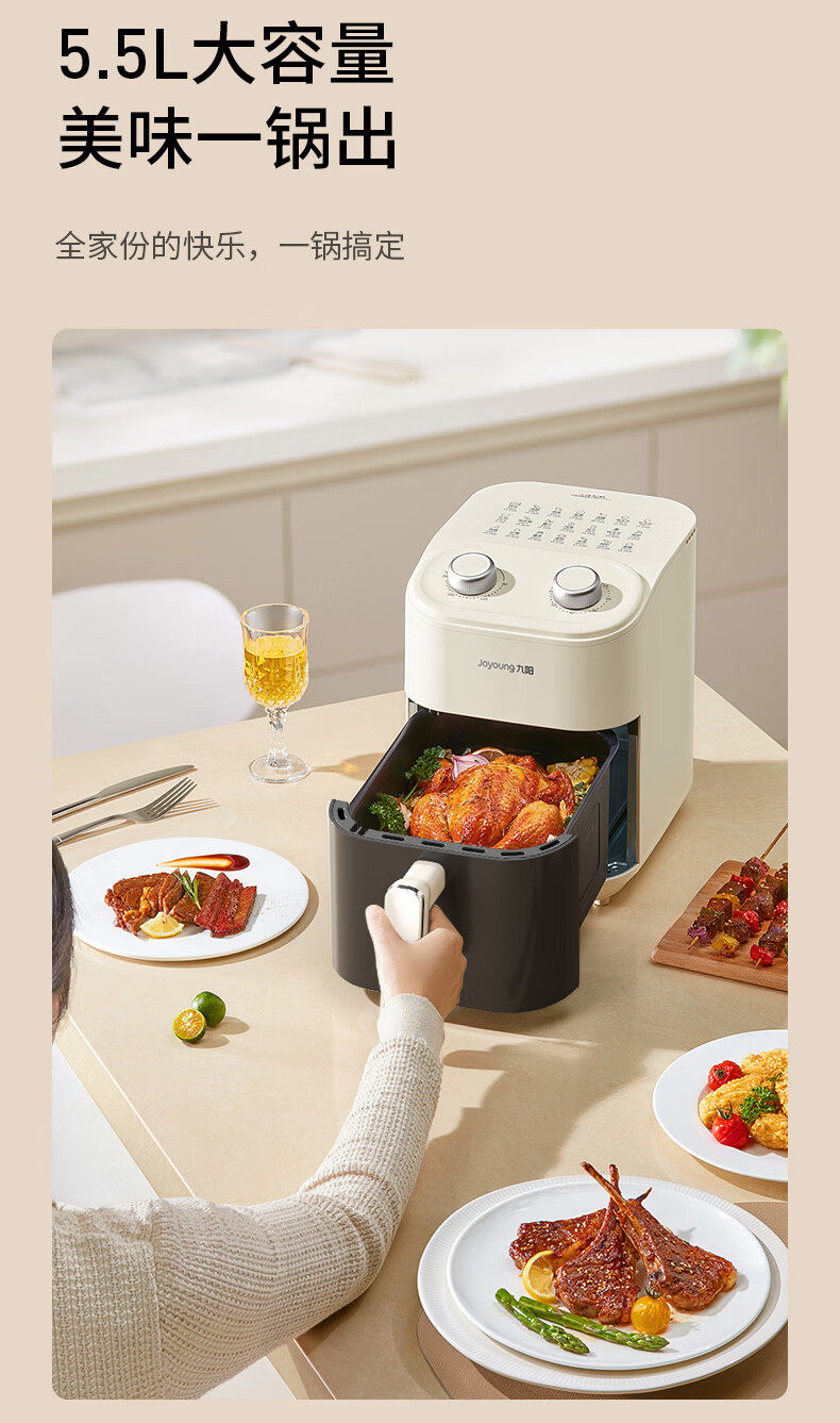 Joyoung Air Fryer with Visible Window, No Need to Turn the Food, Long Strip Pot, Multifunctional 5.5L Large Capacity Steaming and Baking All-In-One Appliance for Home Use