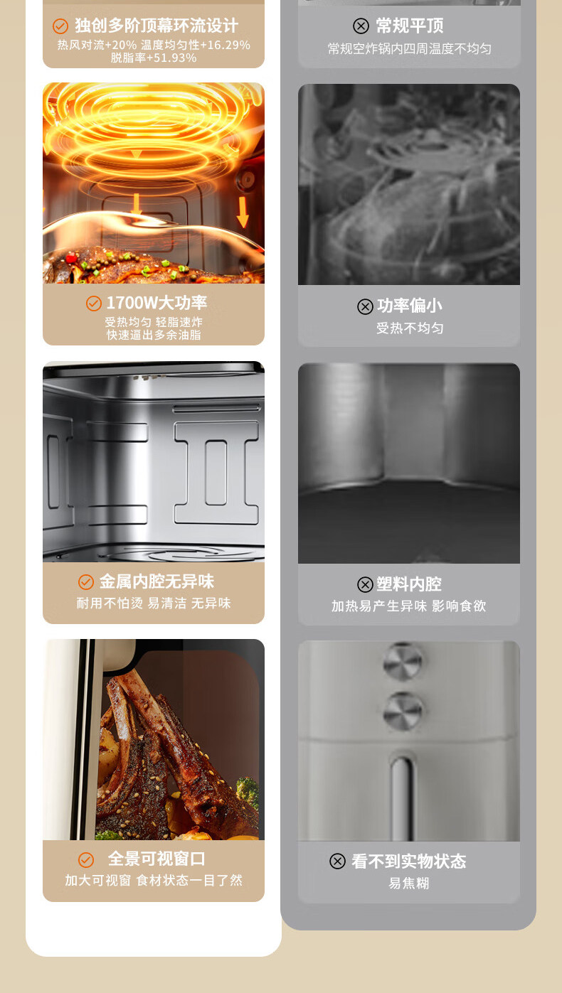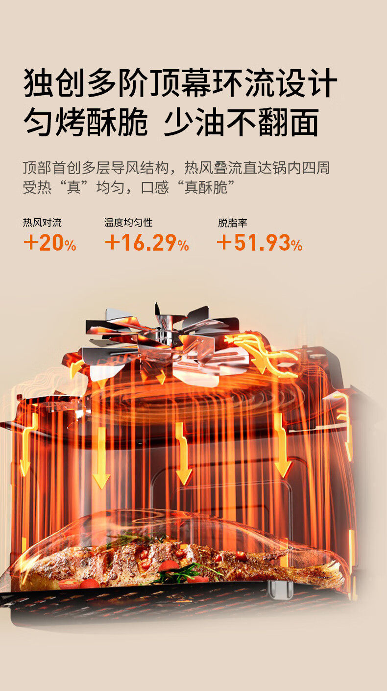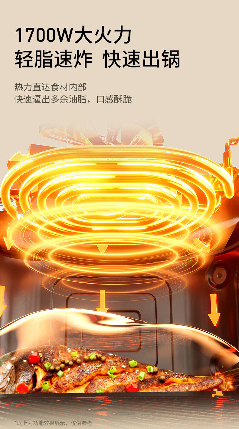 Joyoung Air Fryer with Visible Window, No Need to Turn the Food, Long Strip Pot, Multifunctional 5.5L Large Capacity Steaming and Baking All-In-One Appliance for Home Use