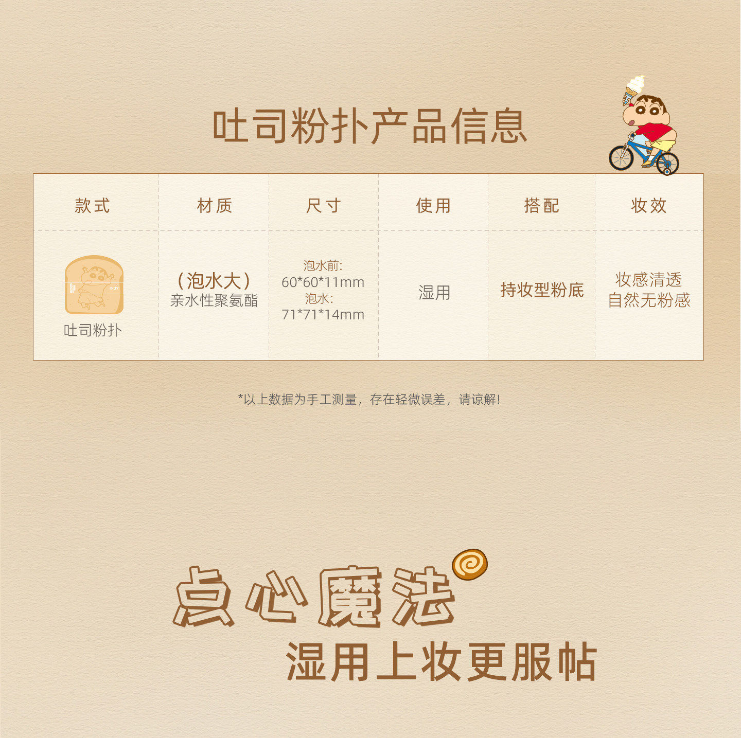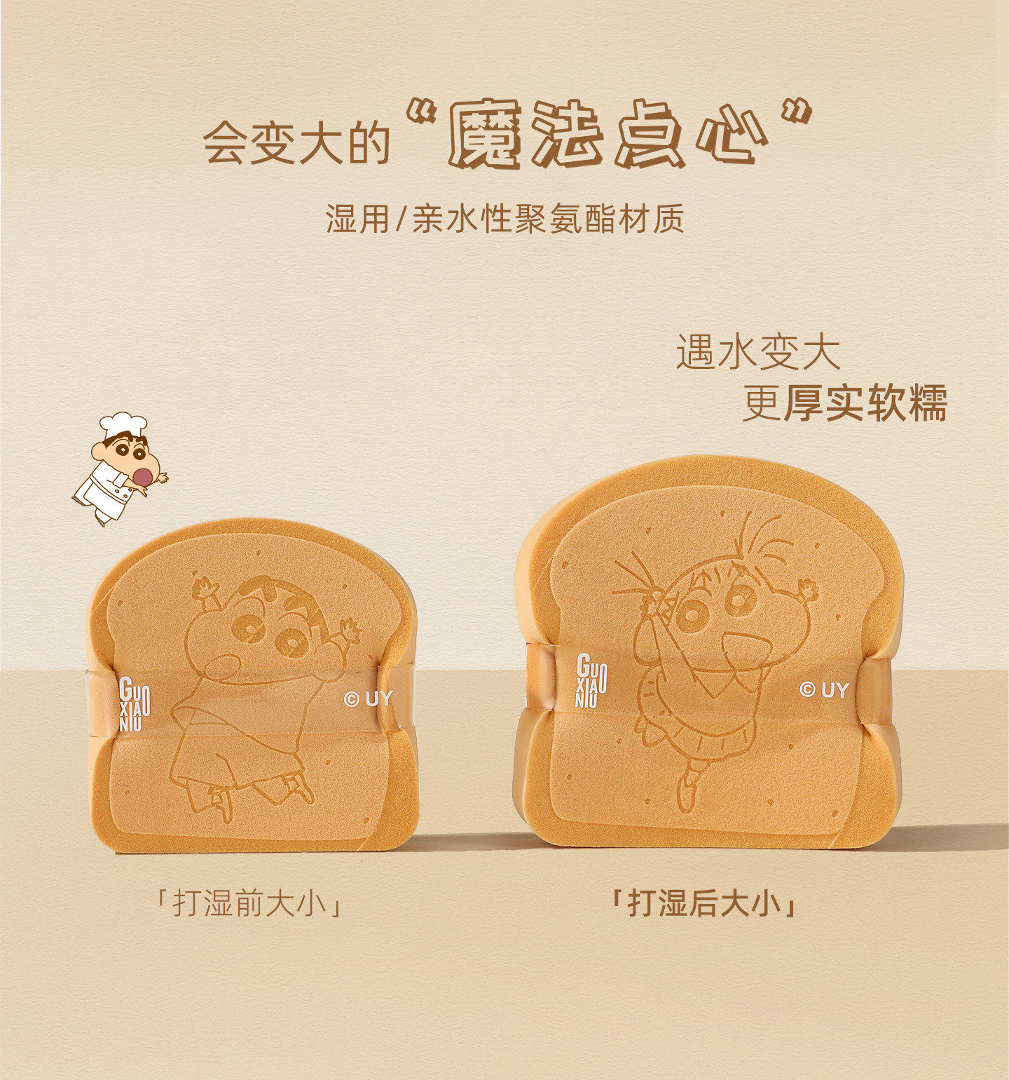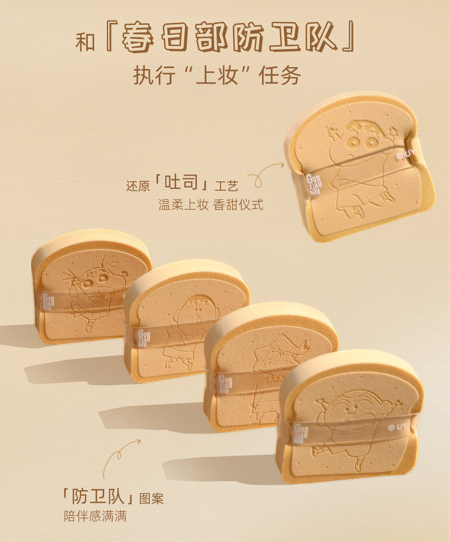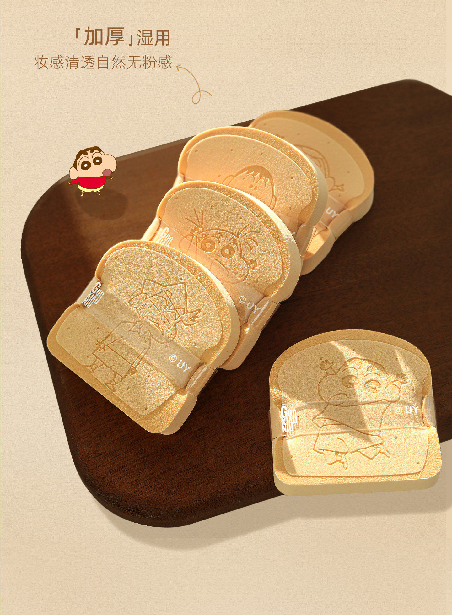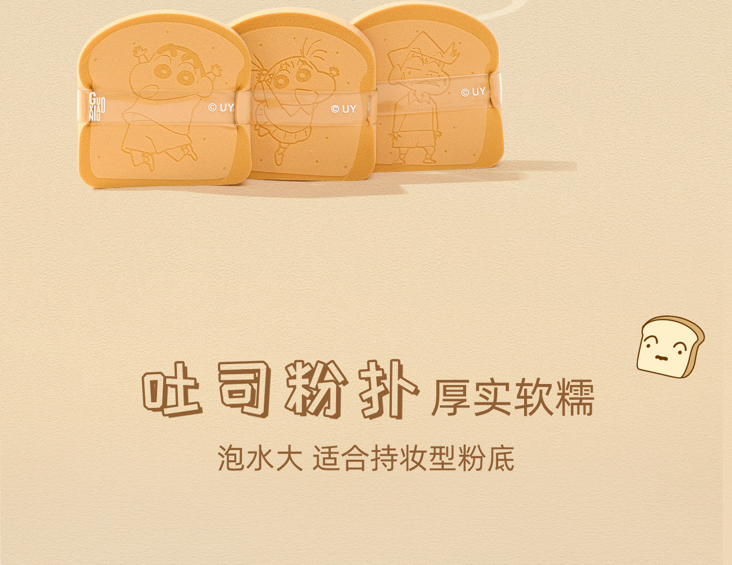 Free Hanging Ornament! Guo Xiaoniu & Crayon Shin-Chan Collaboration Toast-Shaped Powder Puff Set, Makeup Application Tool That Doesn'T Absorb Too Much Powder
