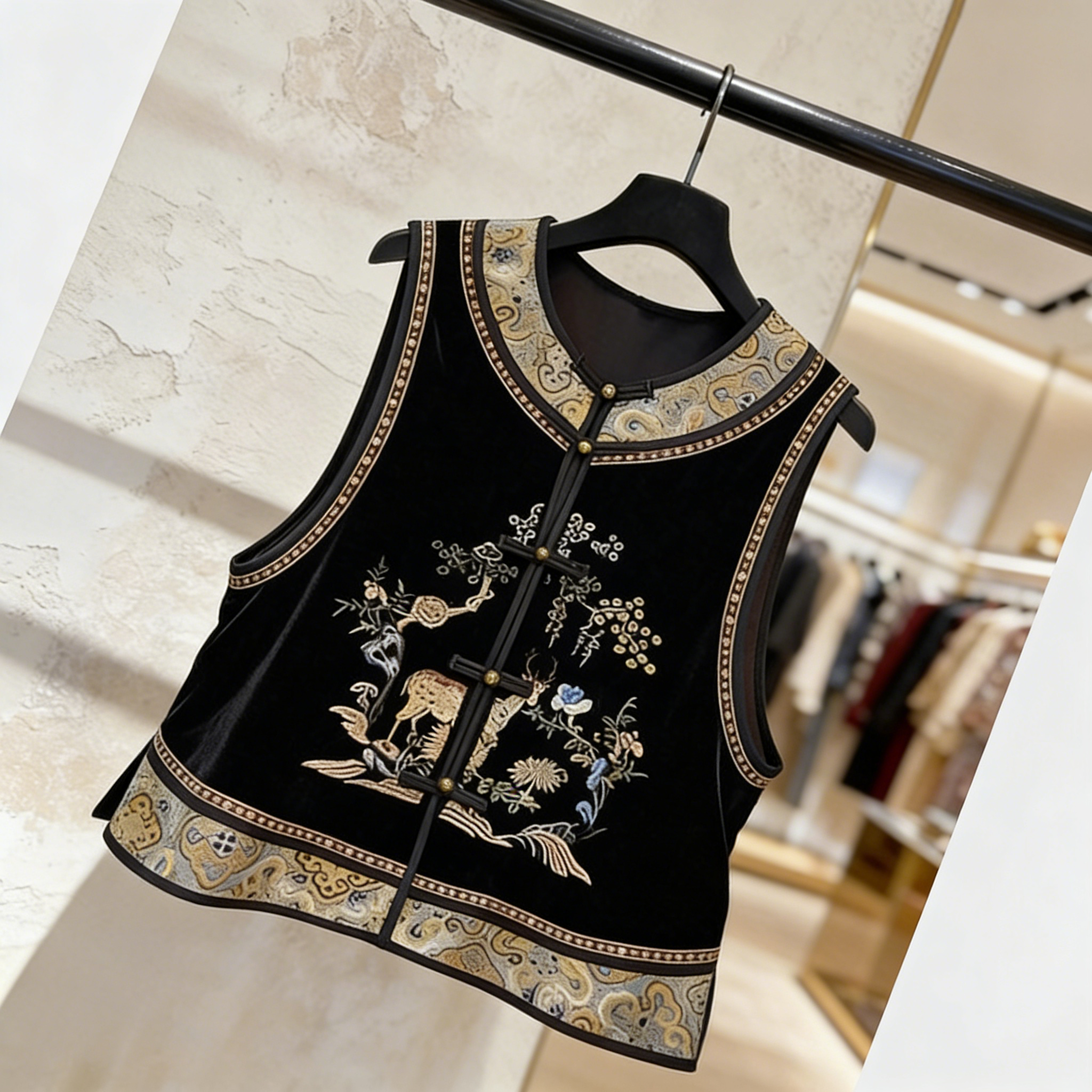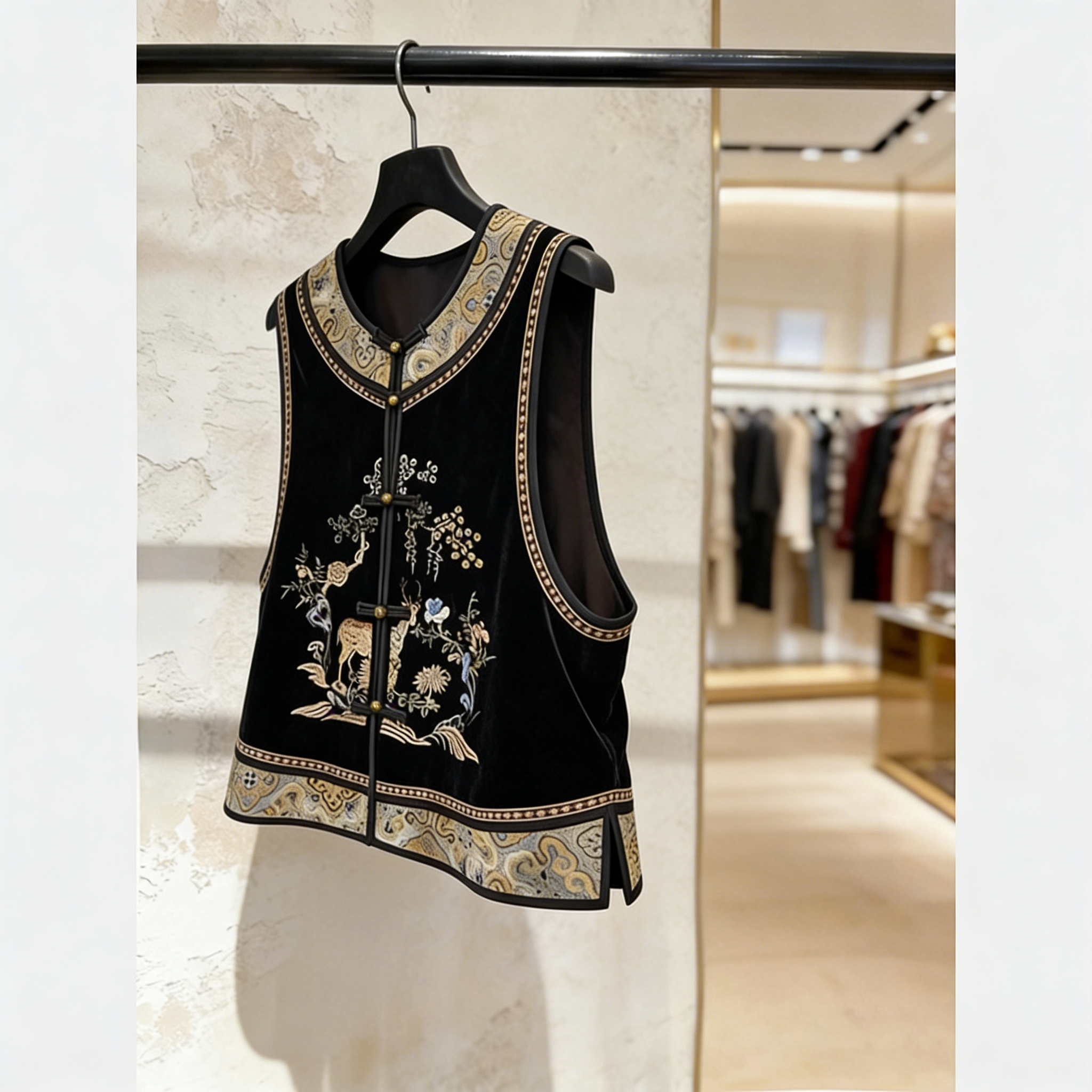 (in Stock) New Chinese-Style Black Vest, Spring Luxury High-End Fashionable Layered Short Tang Suit National Style Jacquard Vest