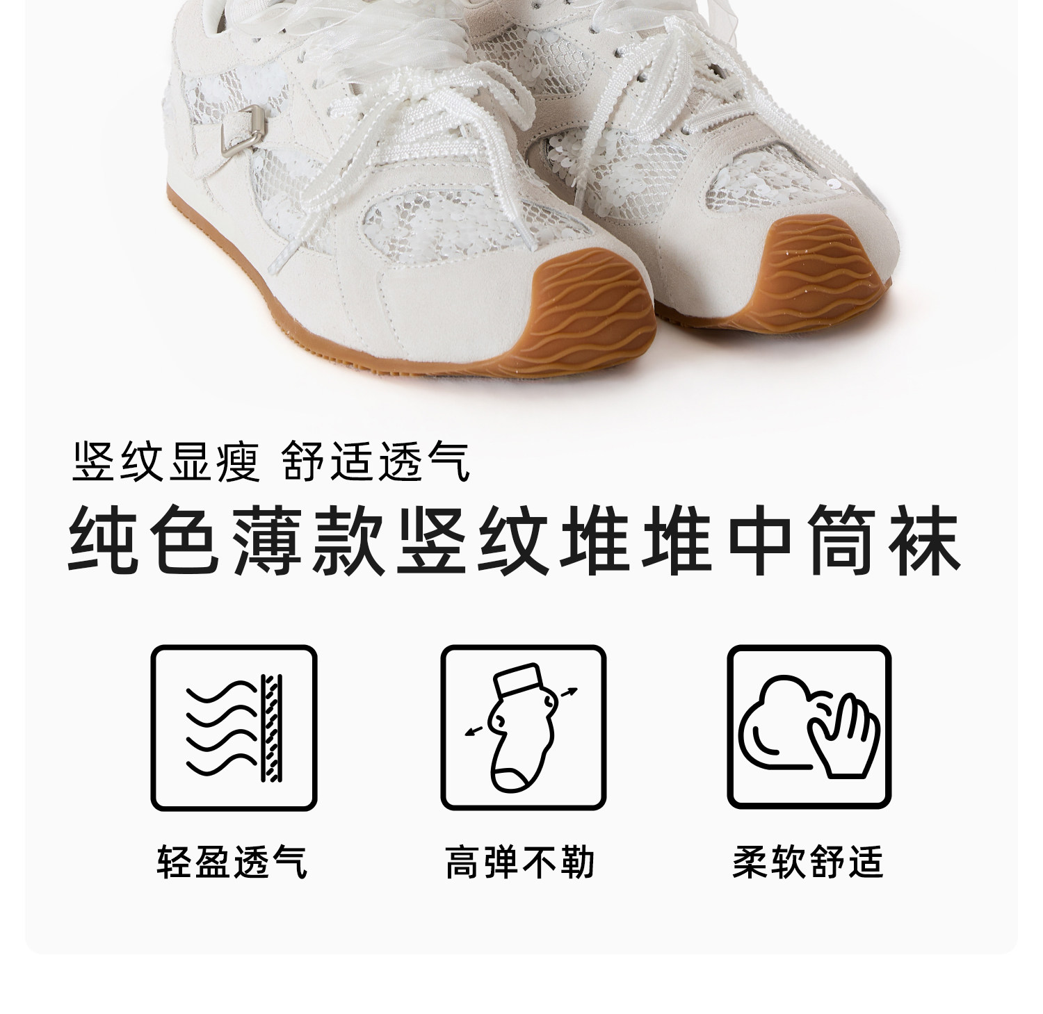 Double needle vertical pattern spring and summer socks for women white spring and autumn thin breathable mid-calf socks pile socks boneless cotton socks long socks