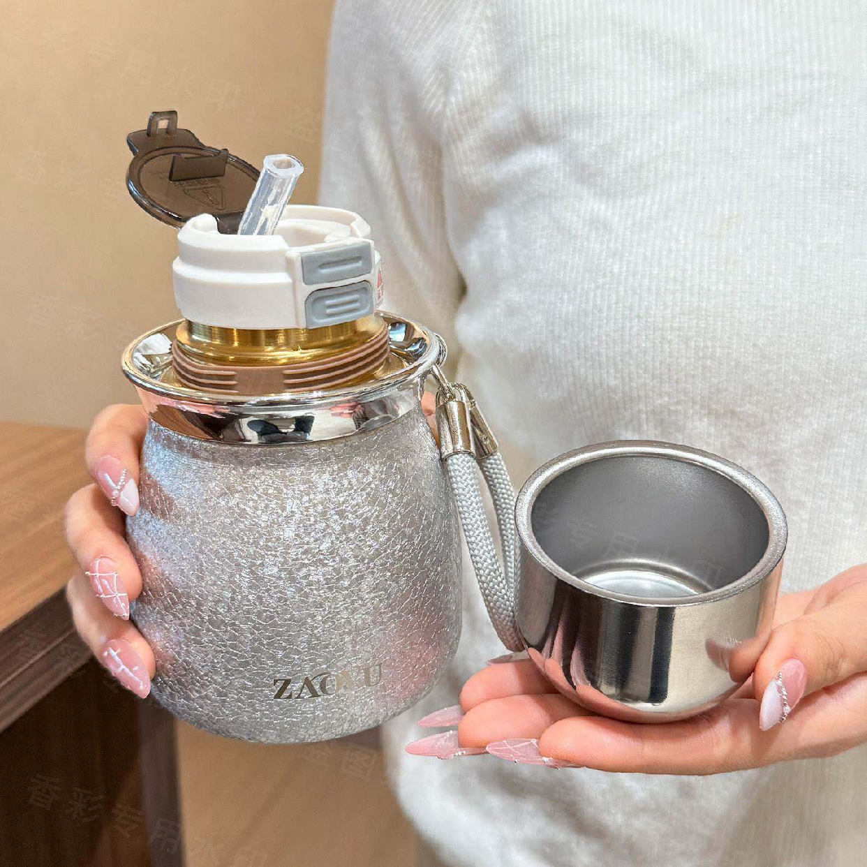 Titanium insulated cup for women, high-looking 2026 new tea cup, compact, portable straw cup, light luxury water cup