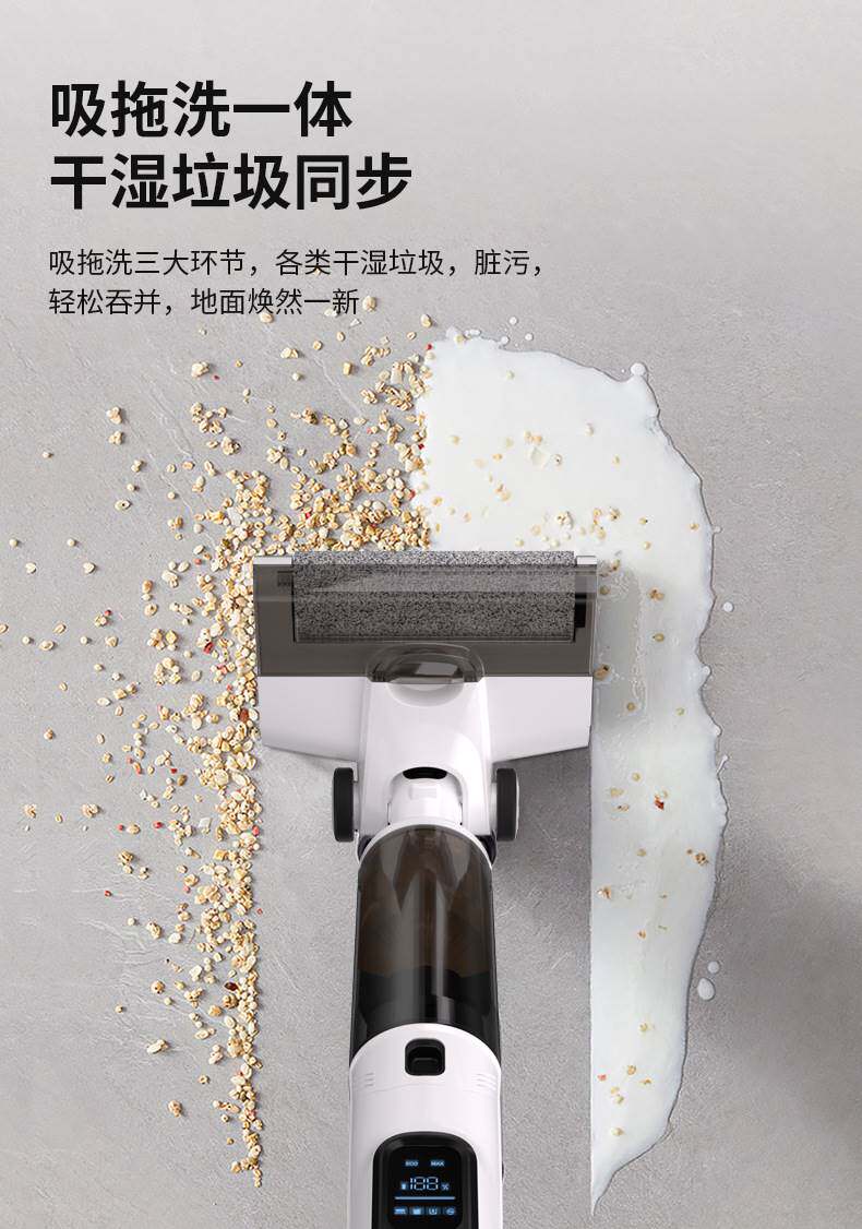 Shangheng wireless smart floor scrubber is an all-in-one household suction and mopping machine that sweeps and mops along the edge for self-cleaning.