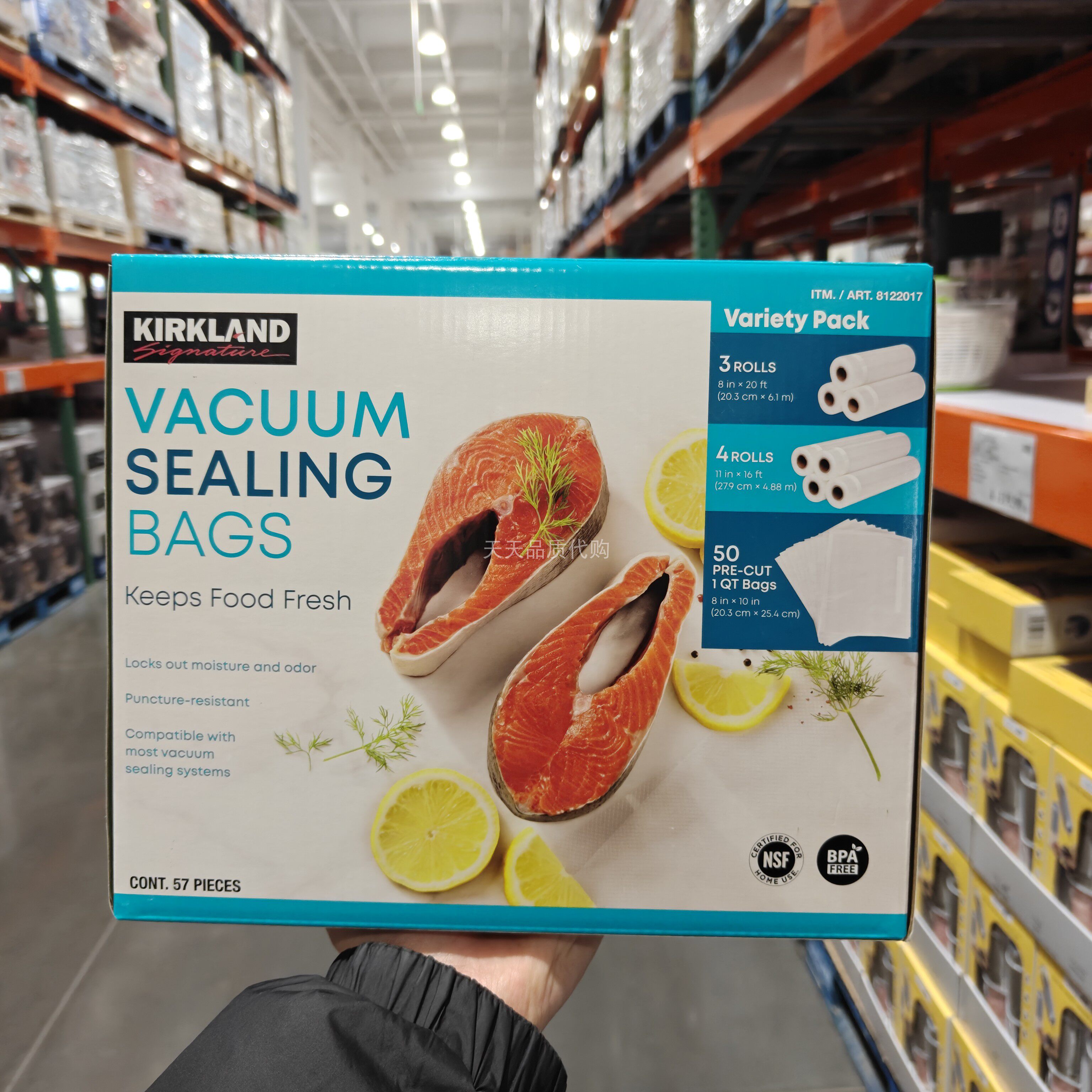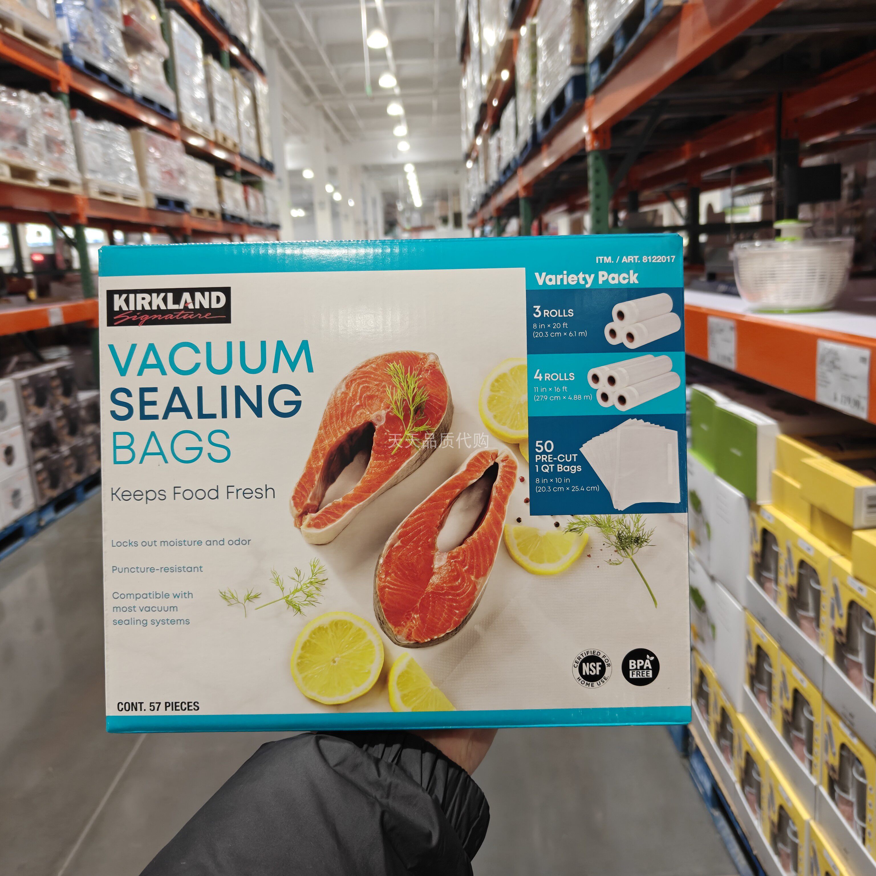 Kirkland Vacuum Sealed Bags, Food Preservation Bags, Special for Home Refrigerators and Freezers, 57-Piece Set, Food-Grade Household Use