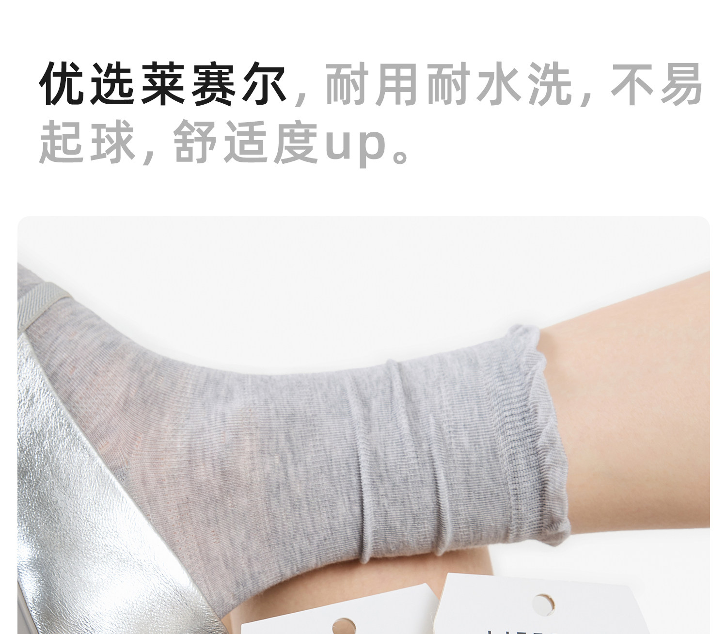 Lace bubble tube socks boneless summer solid color pile socks thin socks women's gray spring and summer stockings