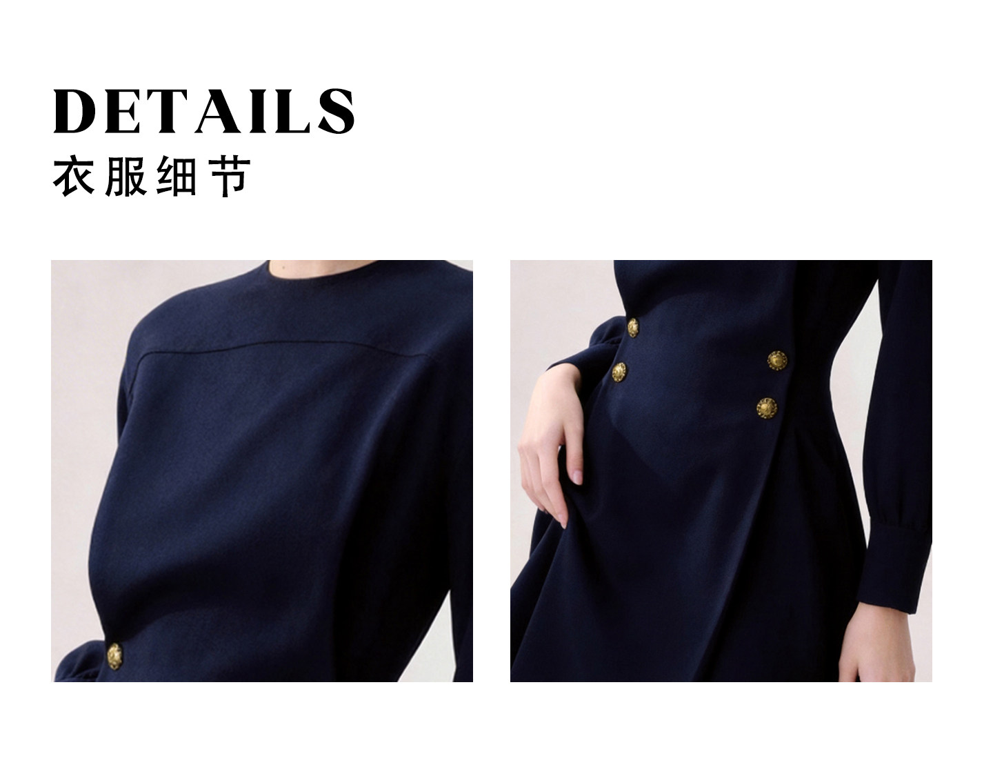 Commuting Outfit Round Neck Waist-Cinching Dress for Women 2026 Summer Blue Long-Sleeved Workplace Elegant A-Line Dress