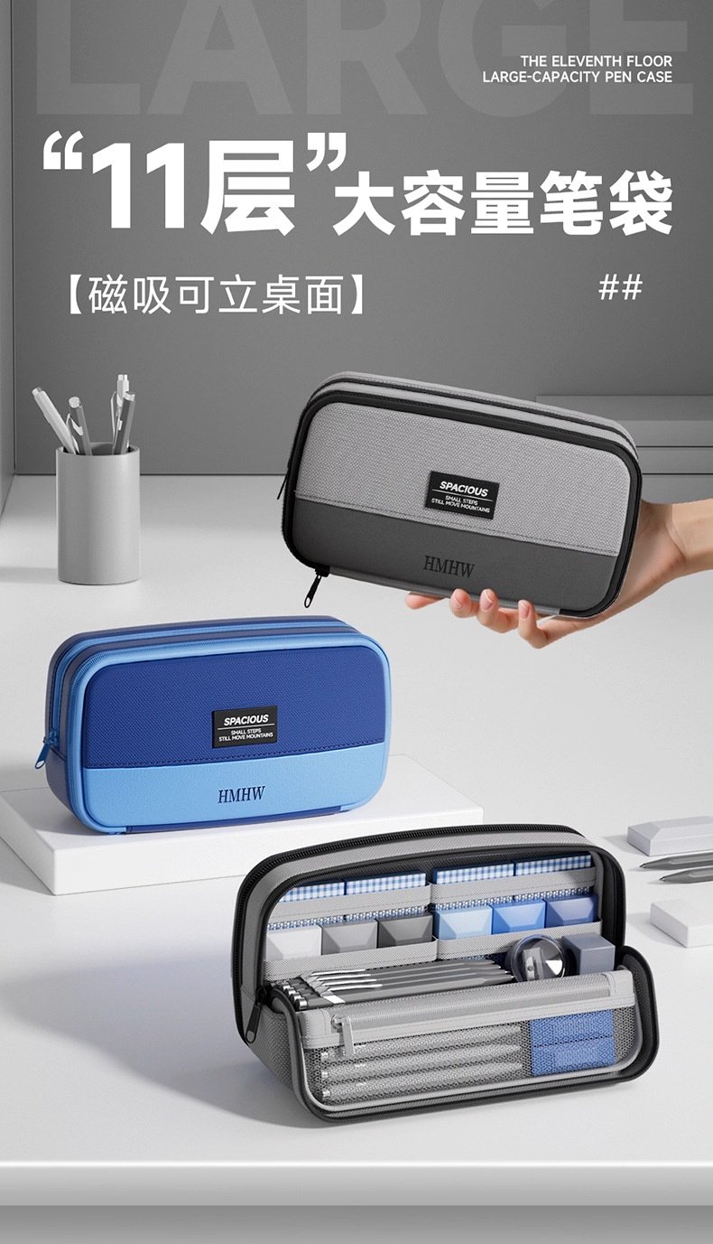 Japan's stand-up magnetic pencil case with high appearance value and simple pencil case for boys 2026 new simple large-capacity pencil case niche non-colliding model multi-functional school supplies stationery for junior high school students