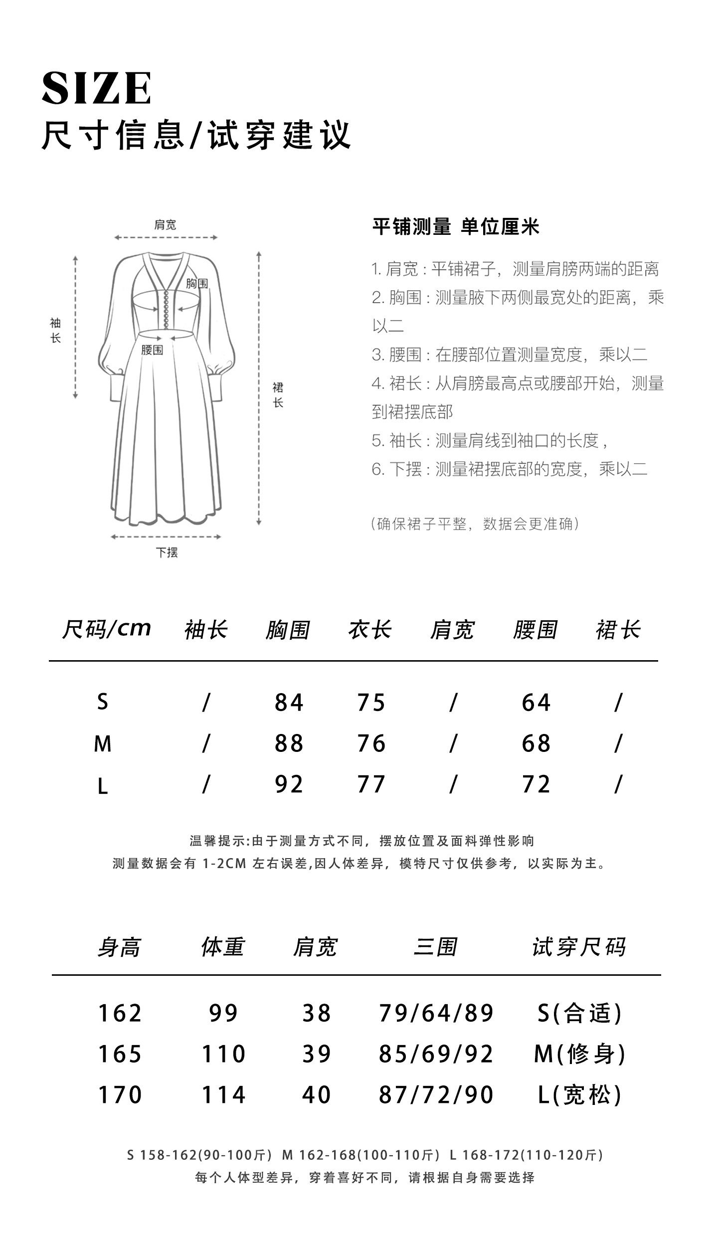 China (cm) 160-165/84-86 165-170 / 88-90 167-172 / 92-96 168-173 / 98-102 170-176 / 106-110