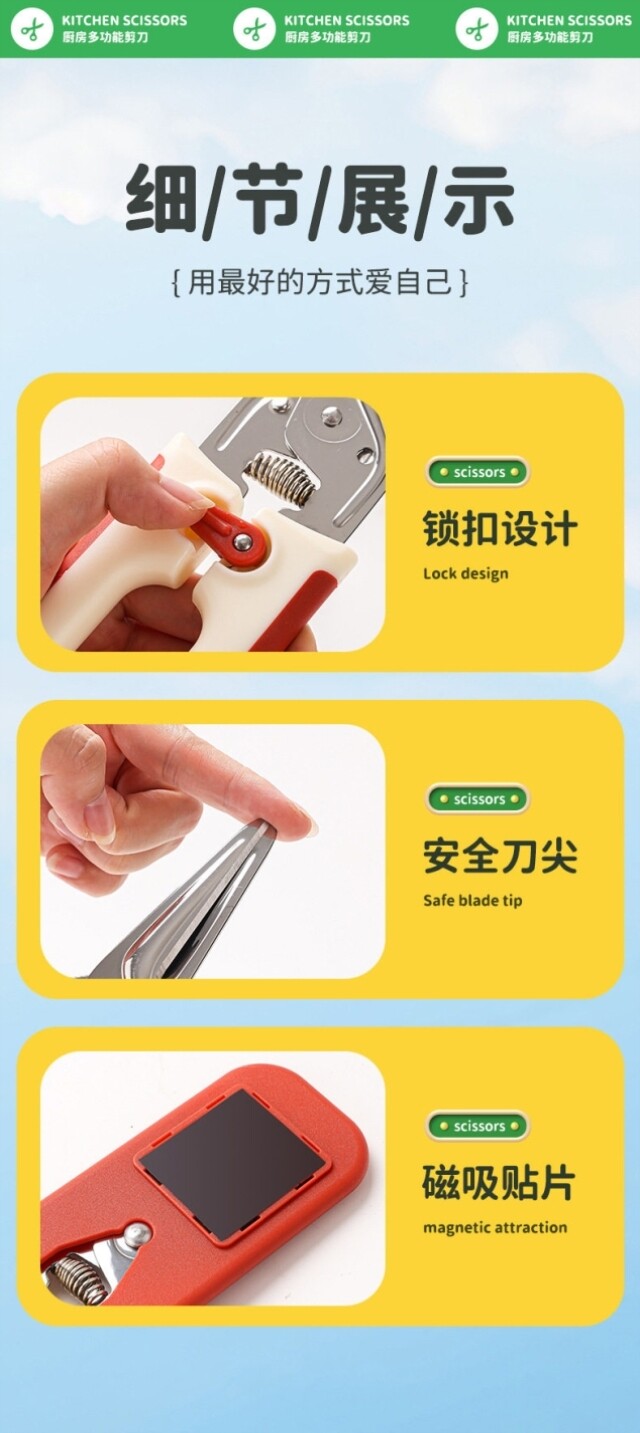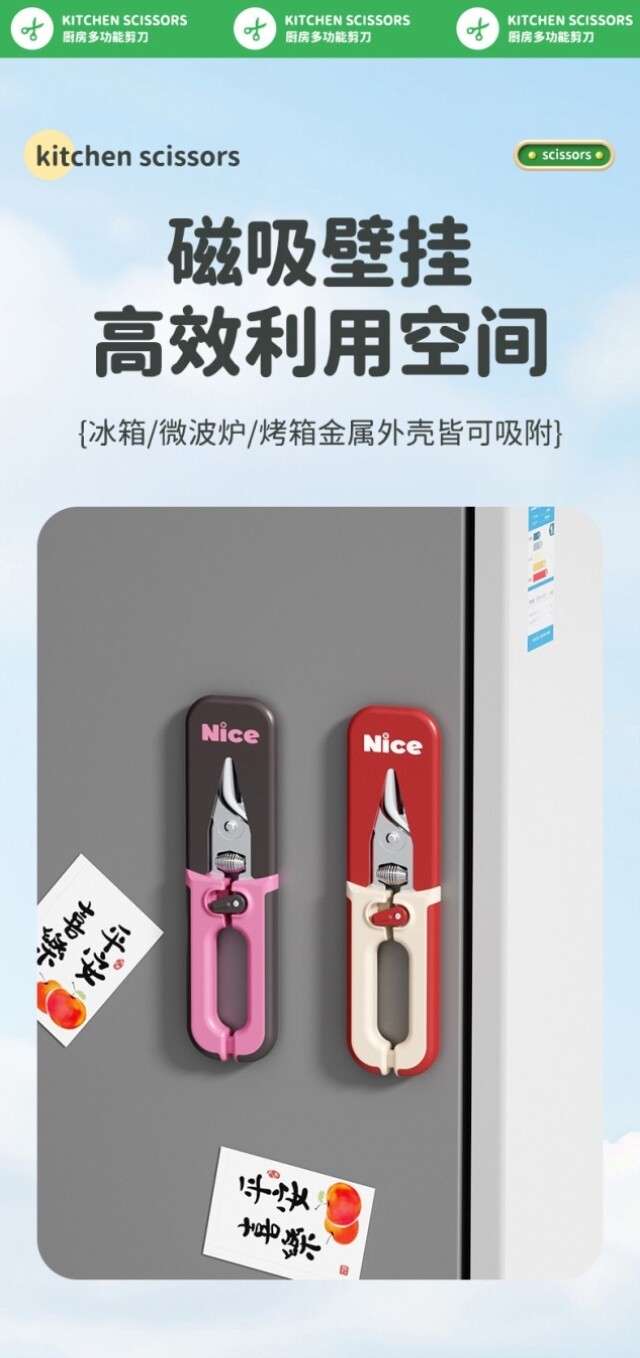 Sort by color Product Specifications Kitchen Scissors-Blue-o5A,Product Specifications Multifunctional-Powerful Kitchen Scissors with Magnetic Lid Blue Gray-o7C,Product Specifications Multifunctional-Powerful Kitchen Scissors with Magnetic Lid Green Gray-cO8,Product Specifications Powerful Kitchen Scissors with Cutting Cover Green Gray-K7m,Product Specifications Multifunctional-Powerful Kitchen Scissors with Magnetic Lid White Gray-d21,Product Specifications Powerful Kitchen Scissors with Scissor Cover Pink Gray-TZ1,Product Specifications Dopamine Chicken Bone Scissors --- Black Pink Magnetic Absorbent Nano-W52,Product Specifications New Style-Powerful Kitchen Scissors with Magnetic Lid Chinese Red-z00,Product Specifications Dopamine Chicken Bone Scissors --- White Red Magnetic Absorbent Sodium-Gl2,Product Specifications New Style-Powerful Kitchen Scissors with Magnetic Lid Ivory White-l49,Product Specifications Kitchen Scissors-Black-R30,Product Specifications Multifunctional-Powerful Kitchen Scissors with Magnetic Lid Red Gray-wwk,Product Specifications Kitchen Scissors-Green-I70,Product Specifications Multifunctional-Powerful Kitchen Scissors with Magnetic Lid Pink Gray-KE1,Product Specifications Kitchen Scissors-Pink-mCP,Product Specifications Powerful Kitchen Scissors with Cutting Cover Blue Gray-VV3,Product Specifications Multi-function-Powerful Kitchen Scissors Rebound Style White-b80,Product Specifications Multi-Function-Powerful Kitchen Scissors Rebound Style Gray-gXE,Product Specifications New-Powerful Kitchen Scissors with Magnetic Lid Dark Green-D6X